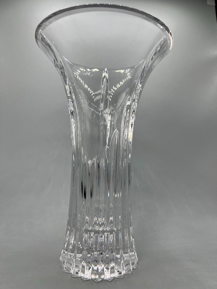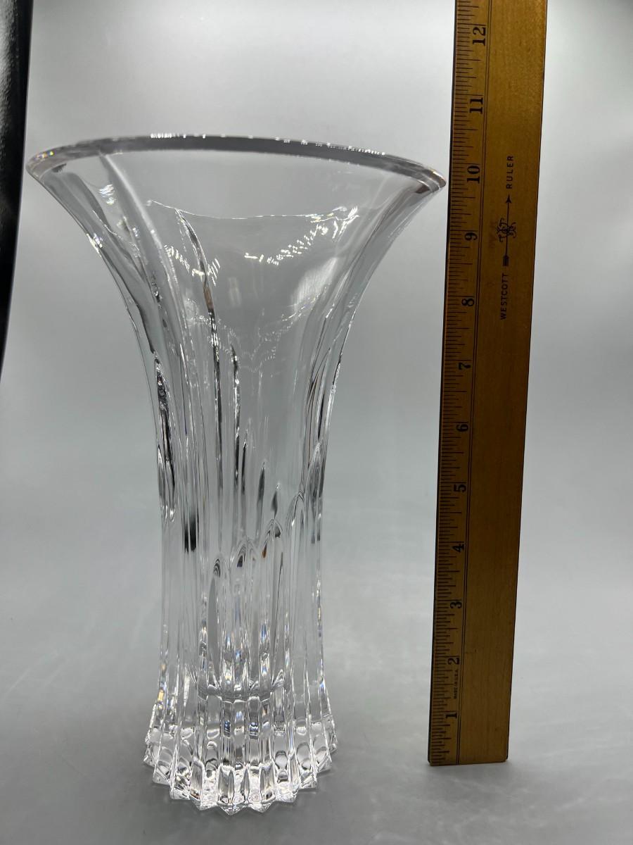 Thick Heavy Glass Modern Ribbed Fluted Design. About 10" size.