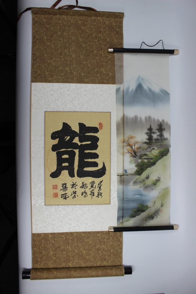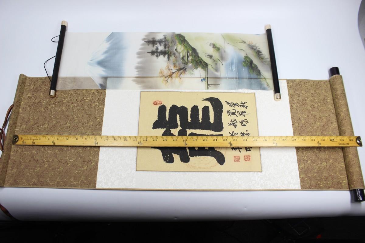 Chinese Oriental Scroll Wall Decor Hand Painted Misty Landscape