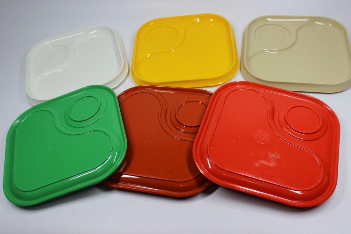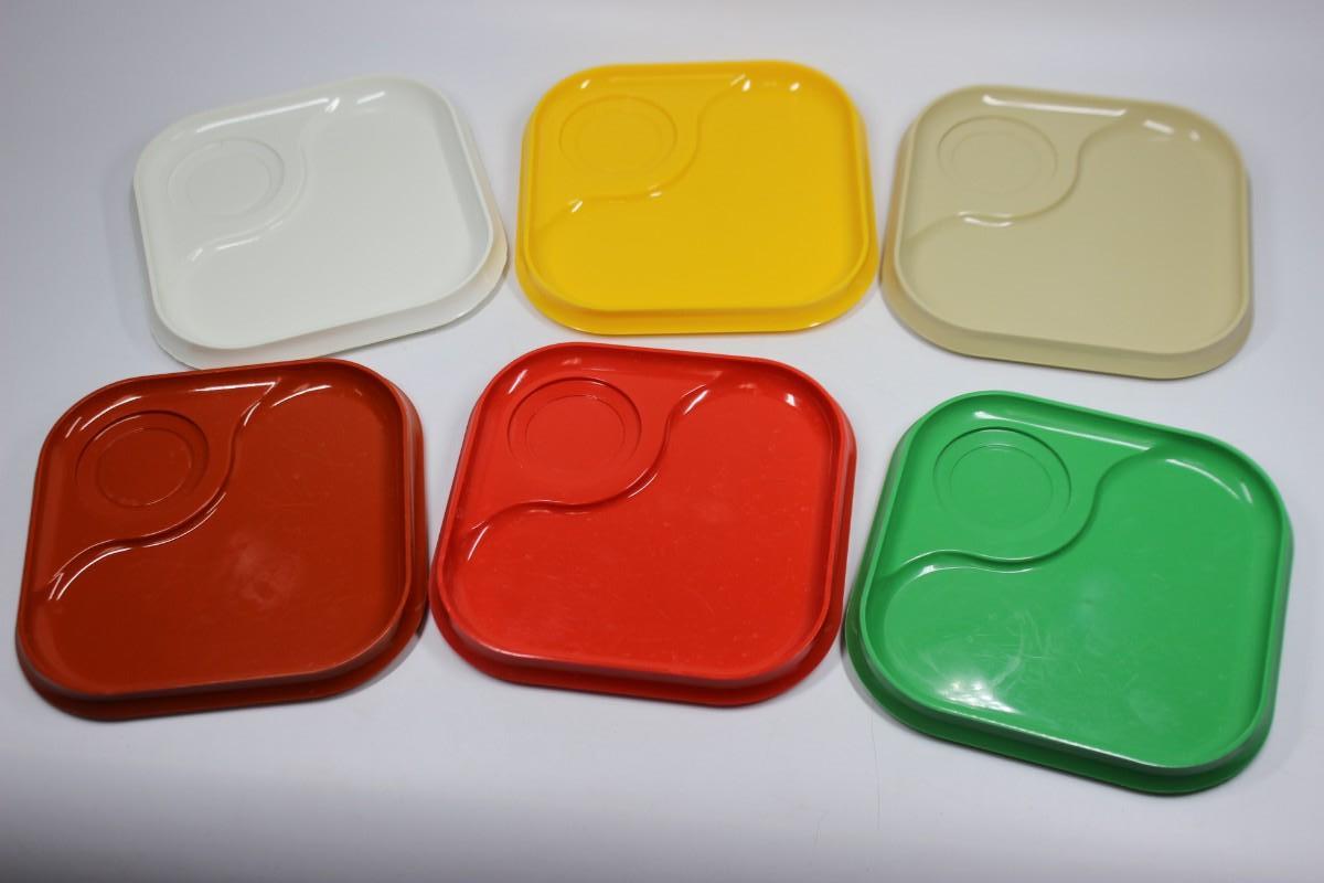 Set of 6 Vintage 80's Ingrid of Chicago Multicolored Stacking Snack Plastic Plates