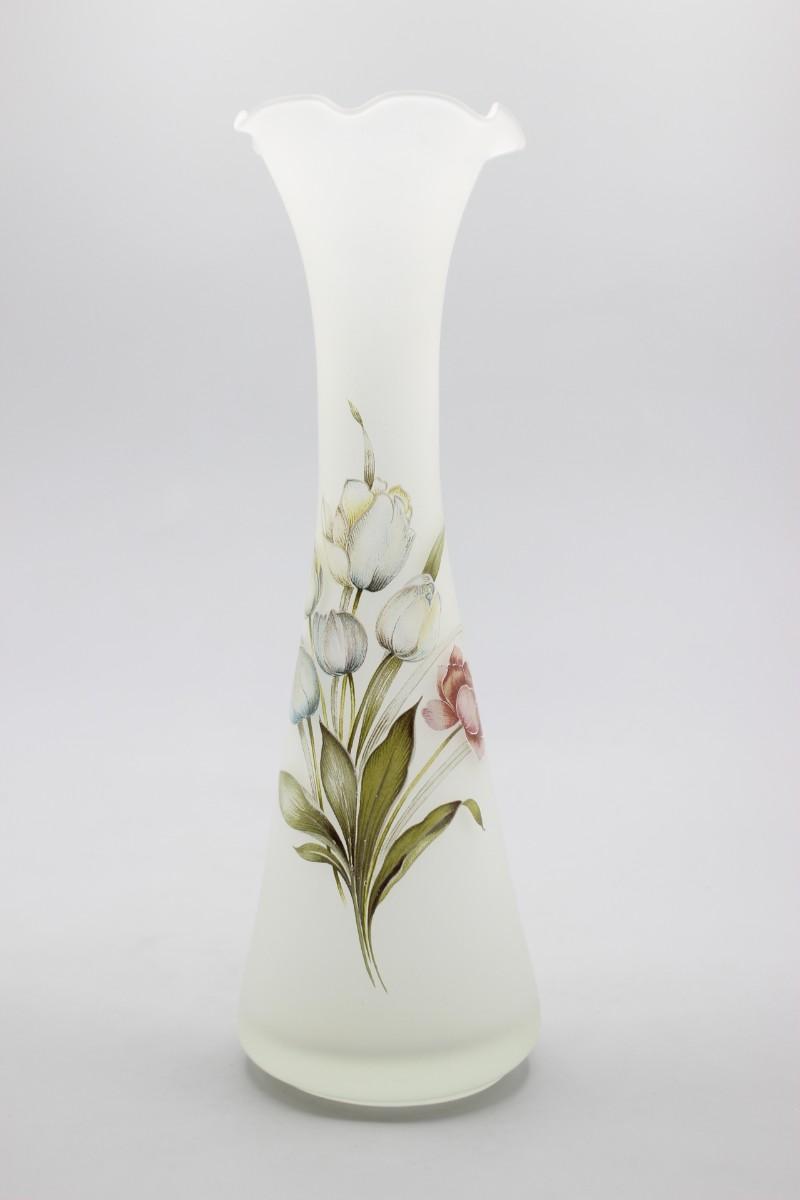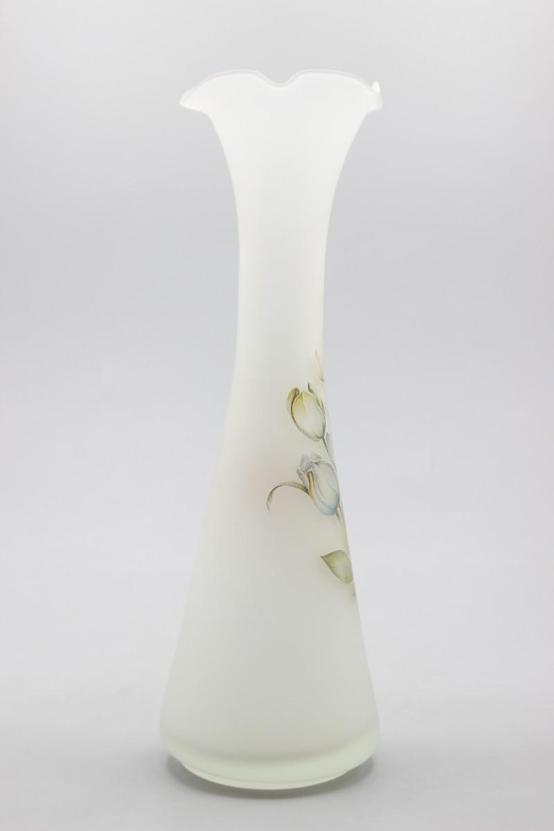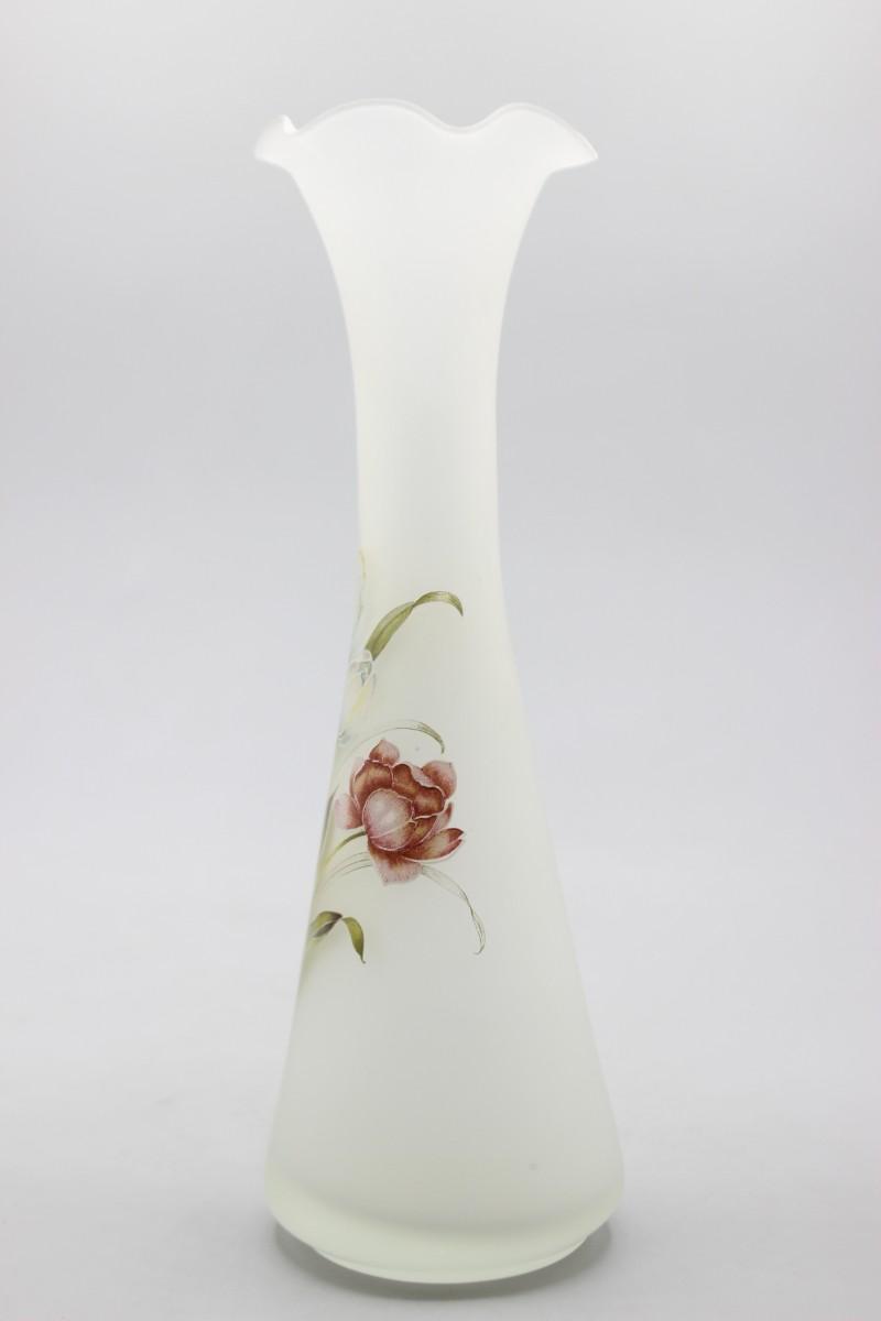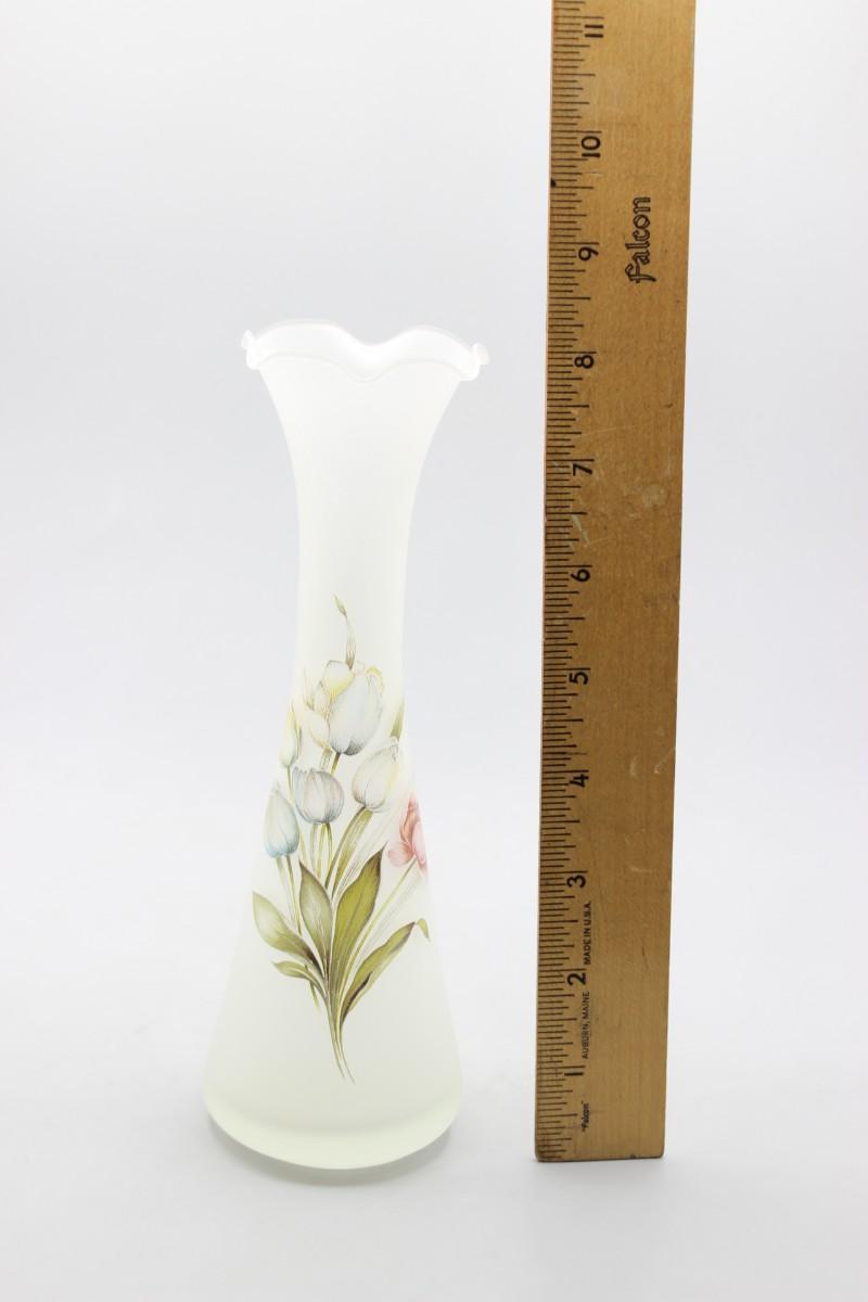 Vintage Vase Viking Frosted Glass Art Mid Century Bud Vase hand painted flowers