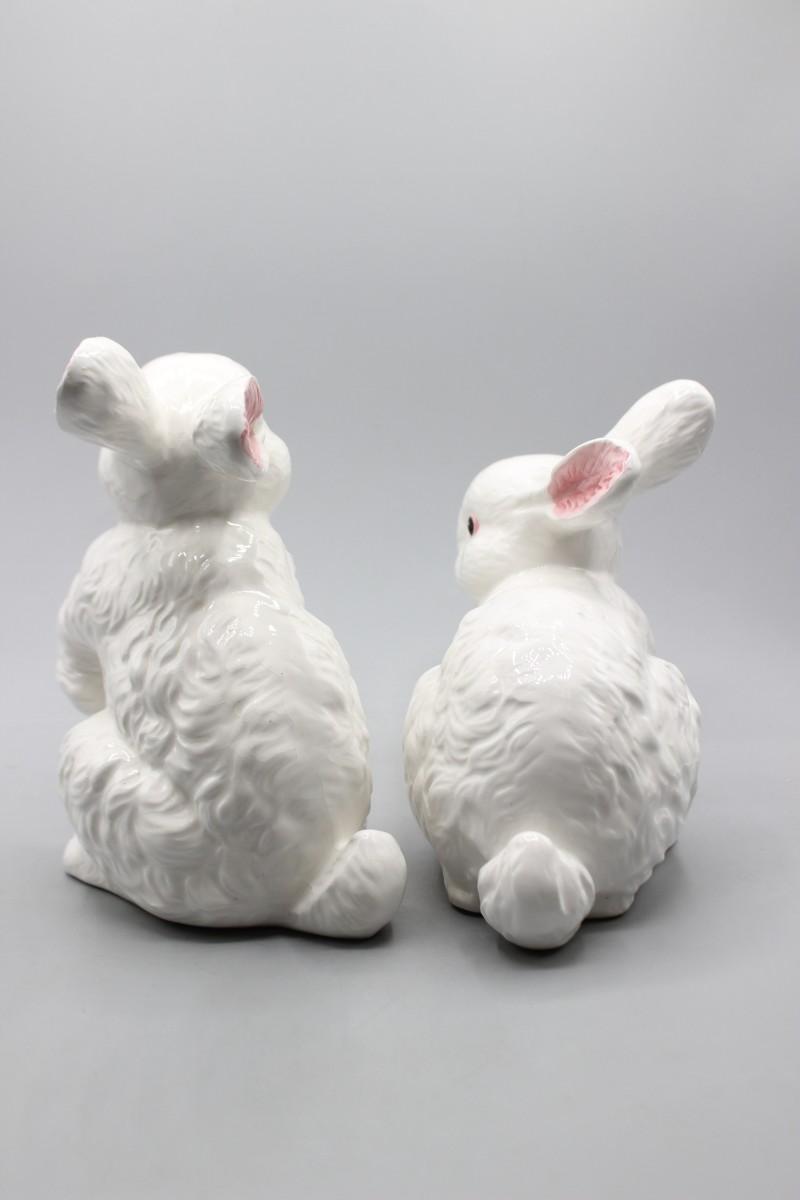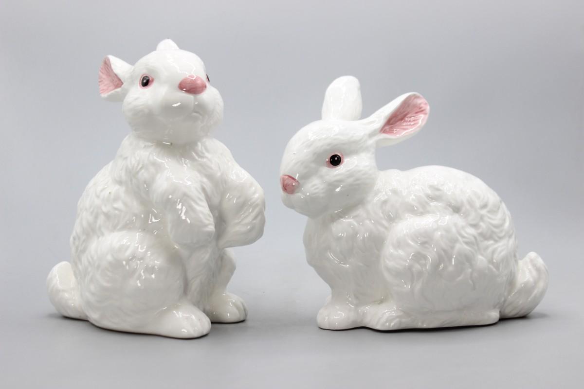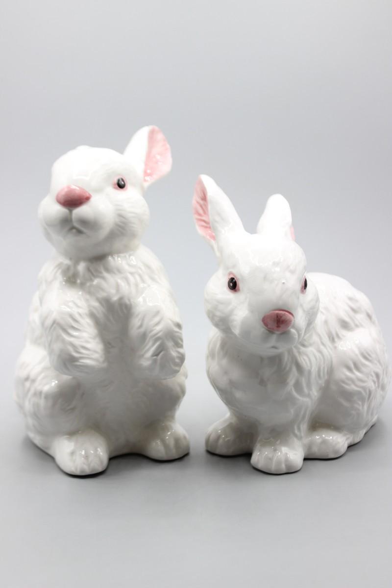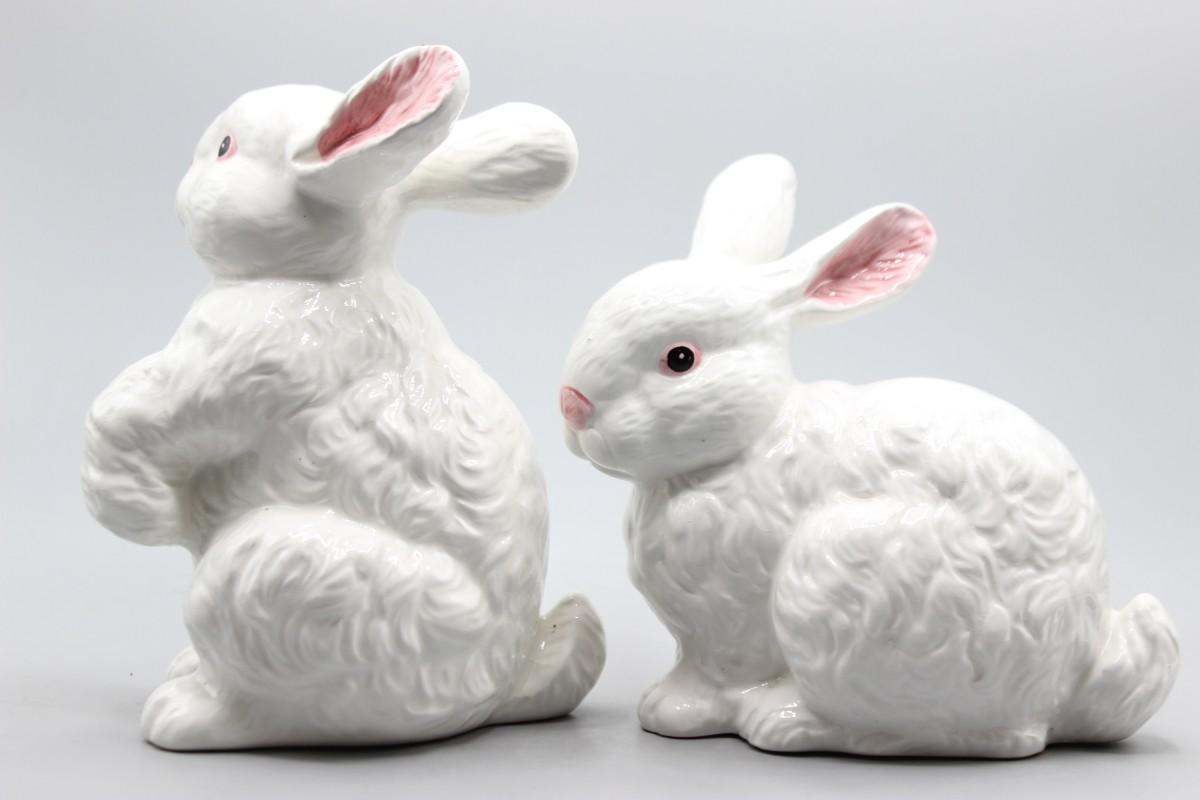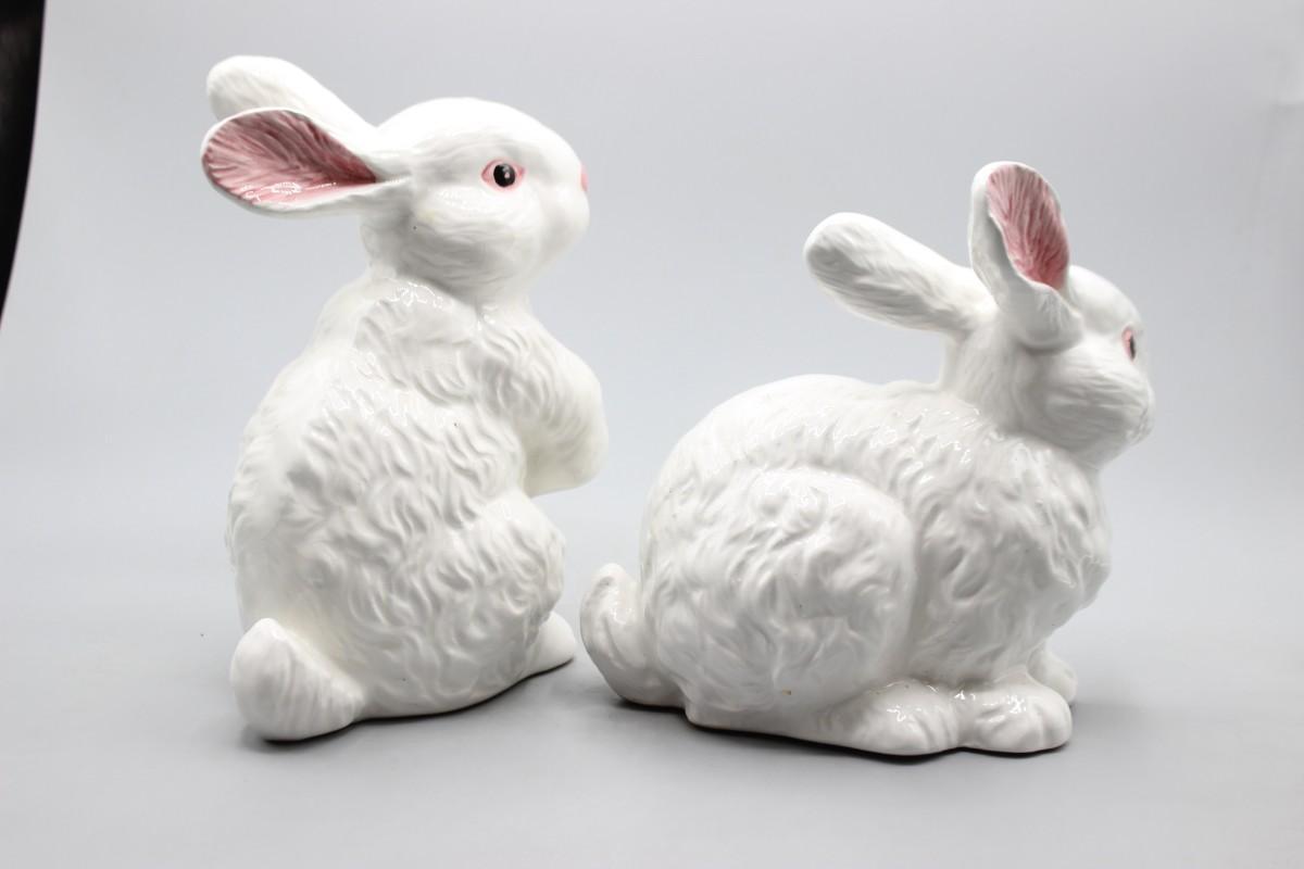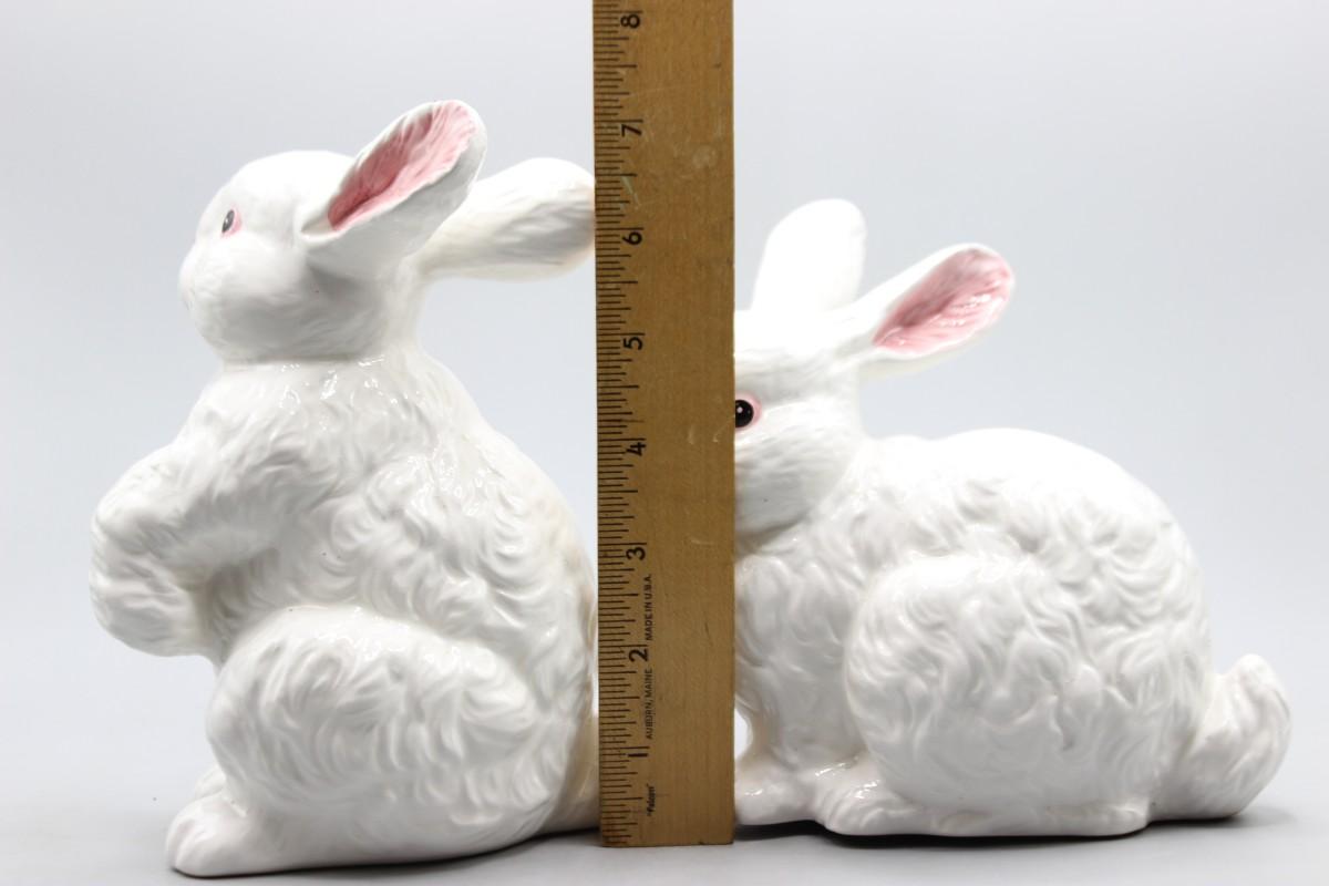 Pair of Ceramic White Bunny Home Decor Holiday Figurines