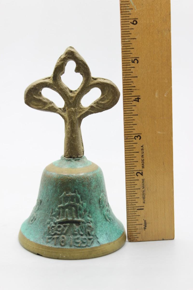Vintage Aged Brass Oxidized Patina Loud Service Hand Bell