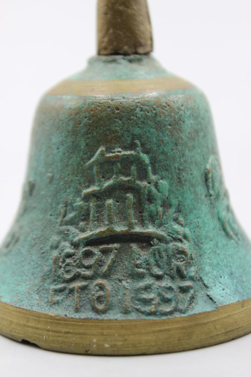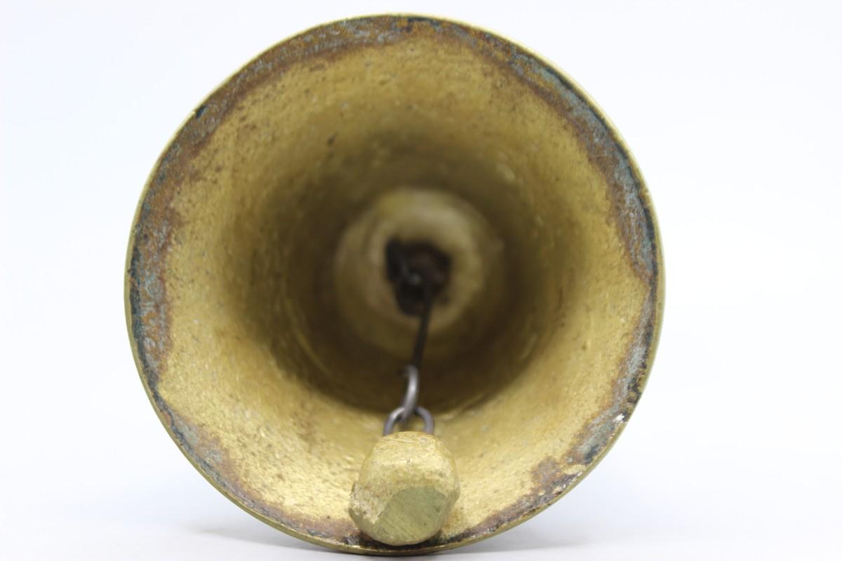 There is noticeable oxidization to the brass bell, but there is no damage and in good condition. The bell rings loudly and works perfect.