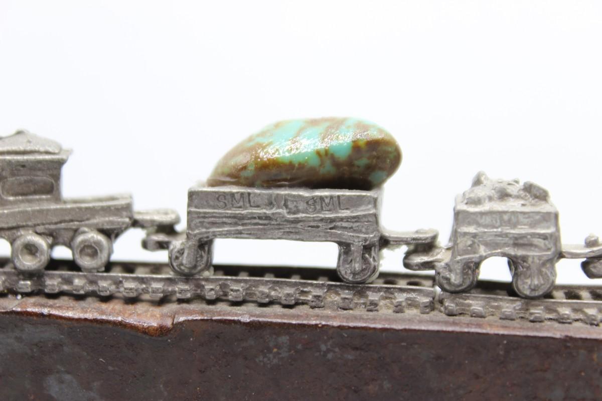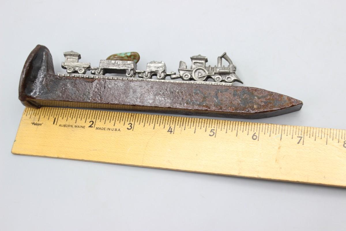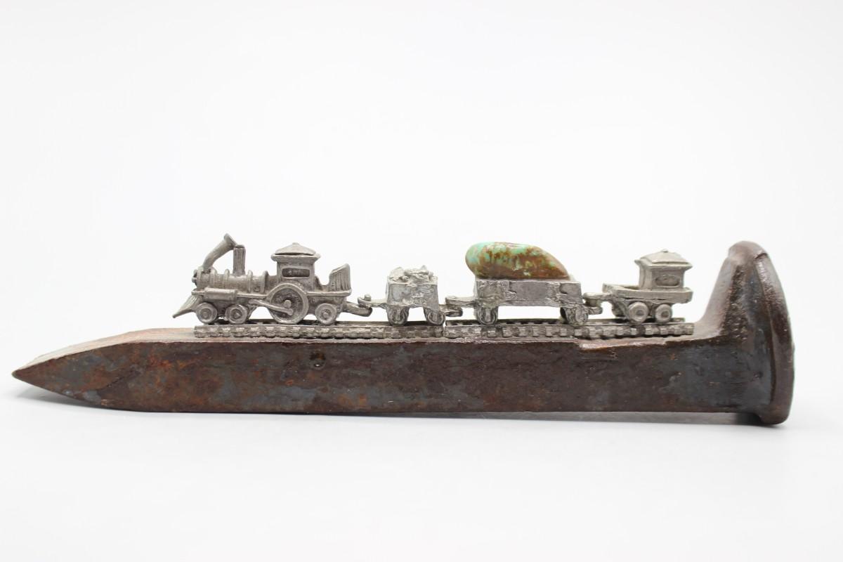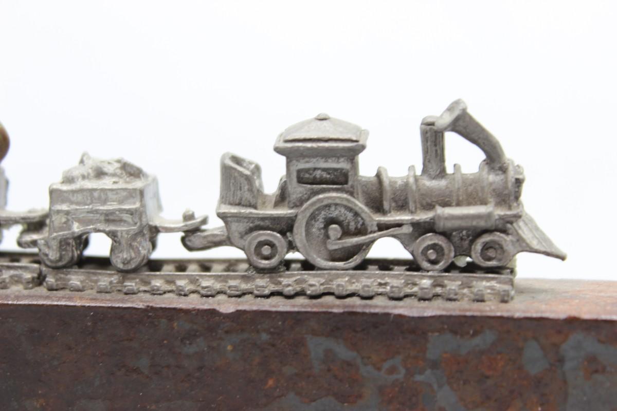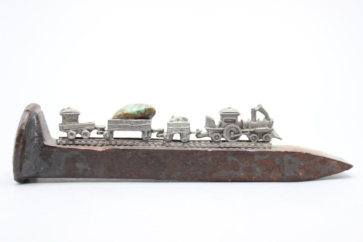 Vintage Miniature Pewter Train Carrying Mineral on Heavy Railroad Spike