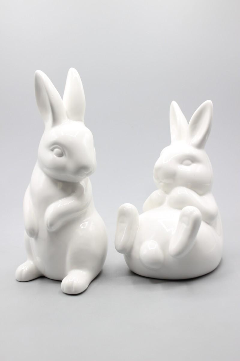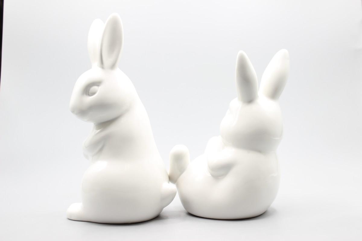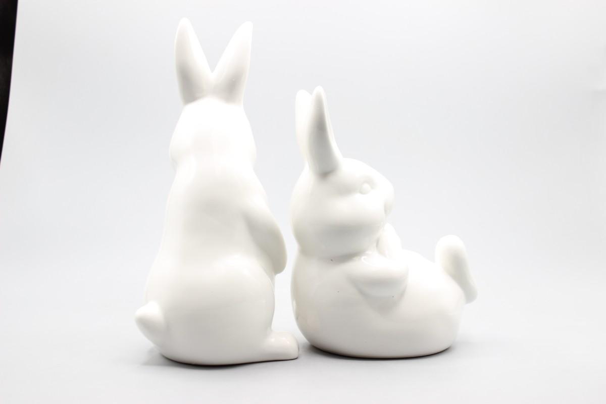 Pair of White Ceramic Cute Posed Bunny Figurines