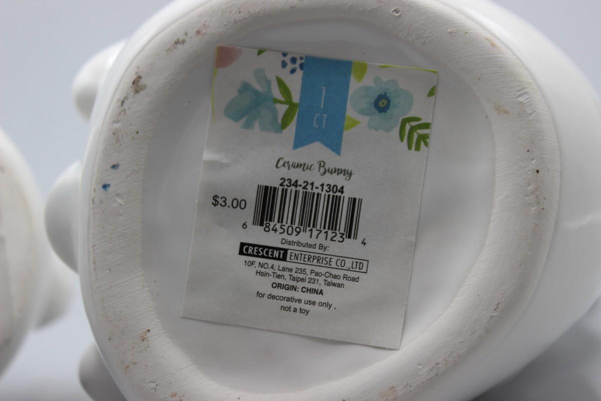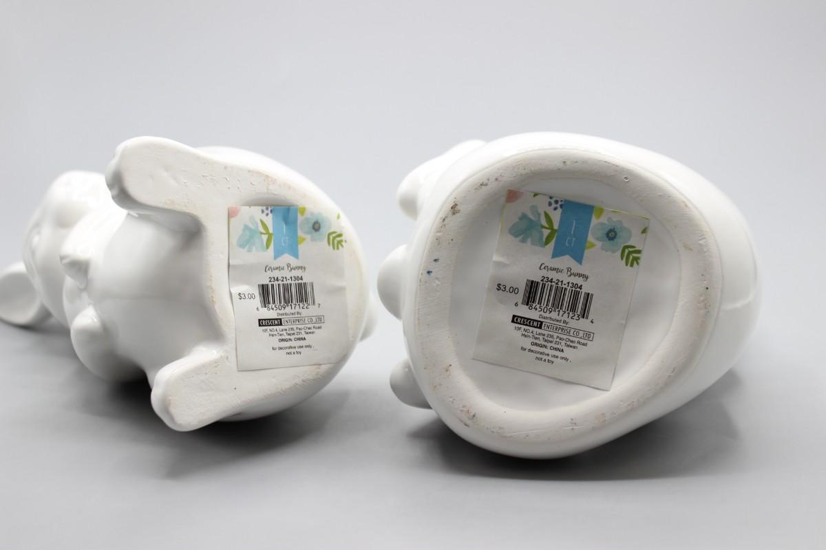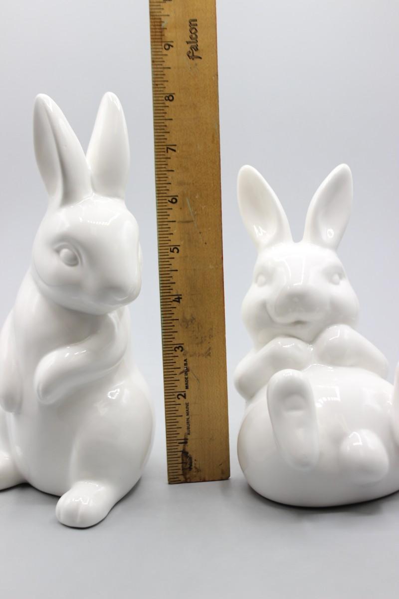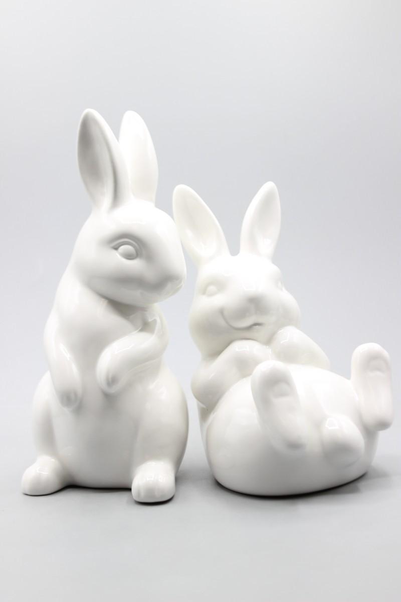 Pair of White Ceramic Cute Posed Bunny Figurines