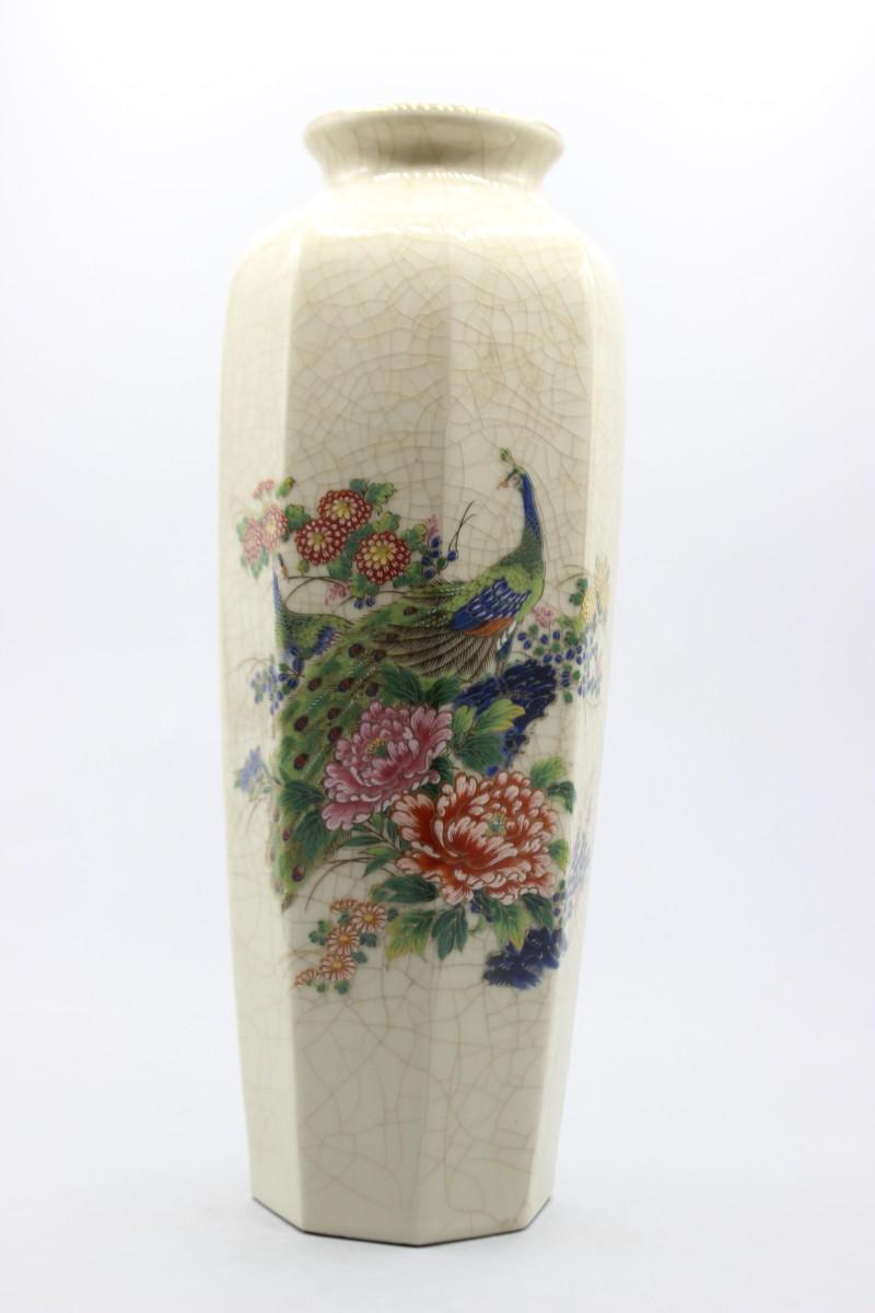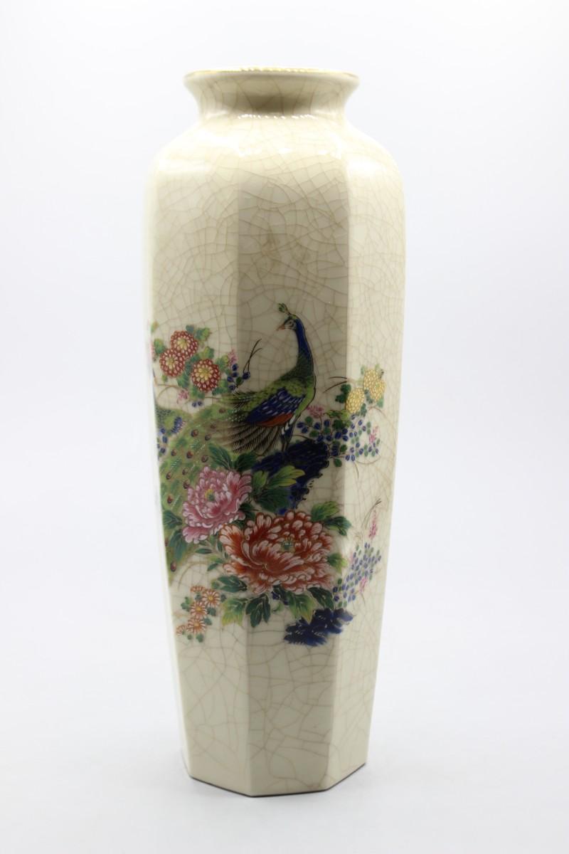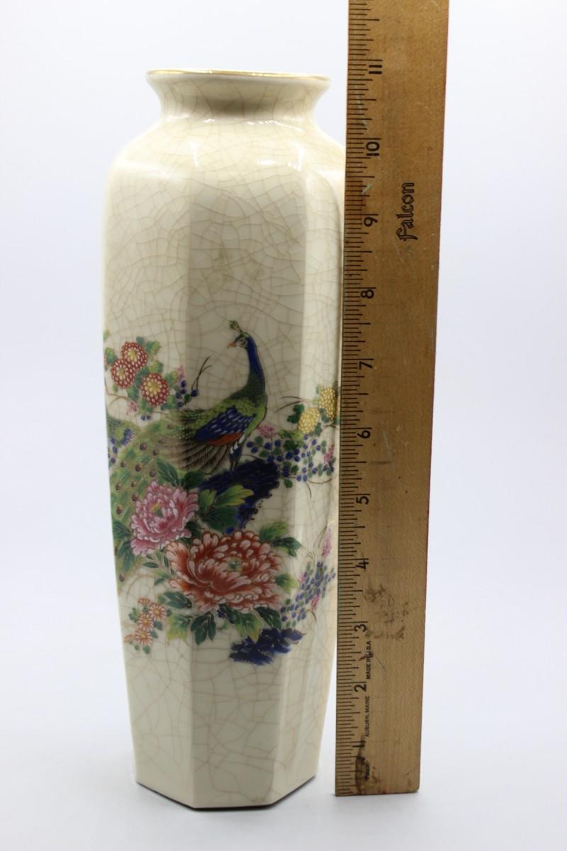 Vintage Ceramic Peacock Flower OMC Japan Mid Century Flower Vase