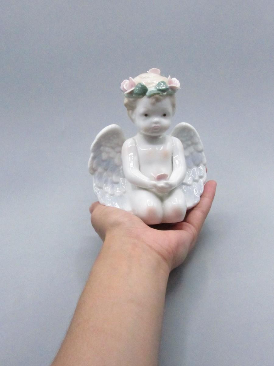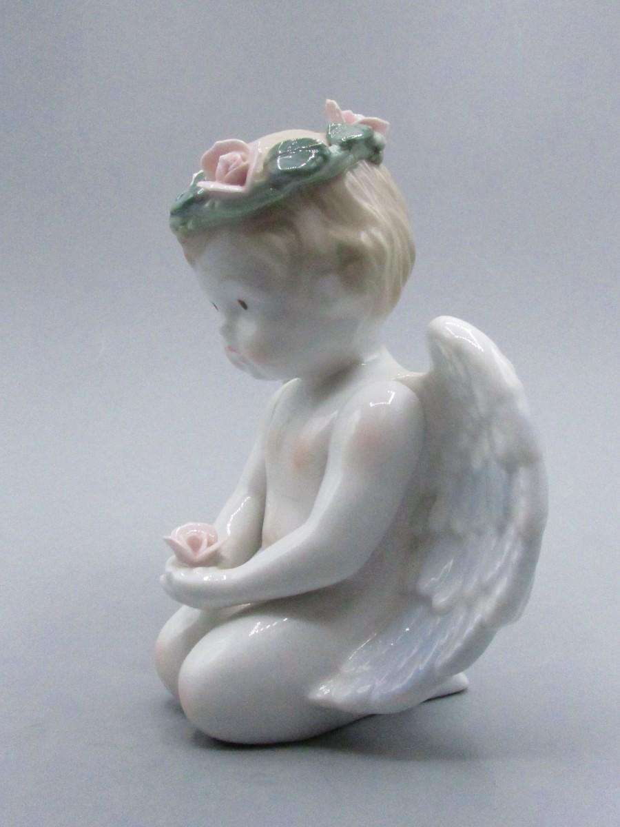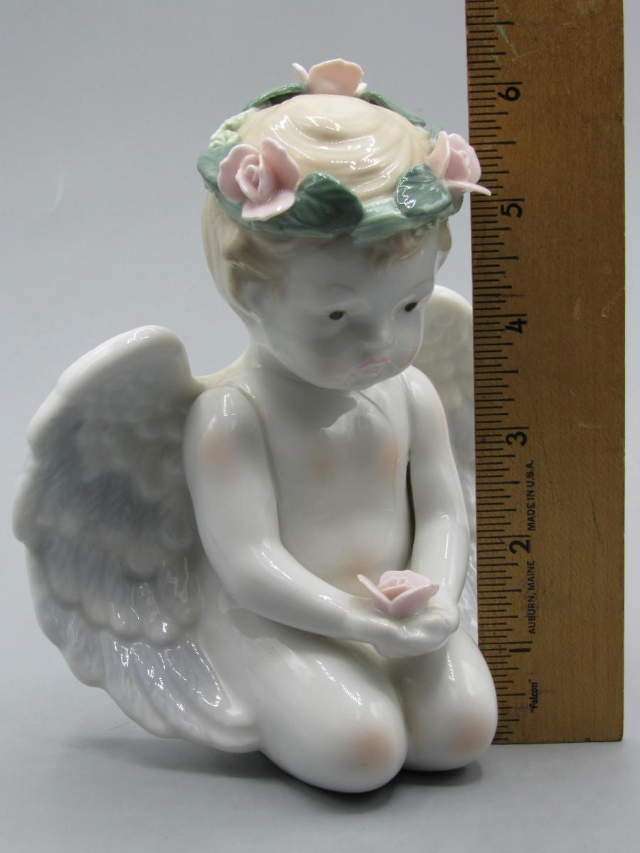 Retro Ceramic Kneeling Cherub Angel Flower Figurine