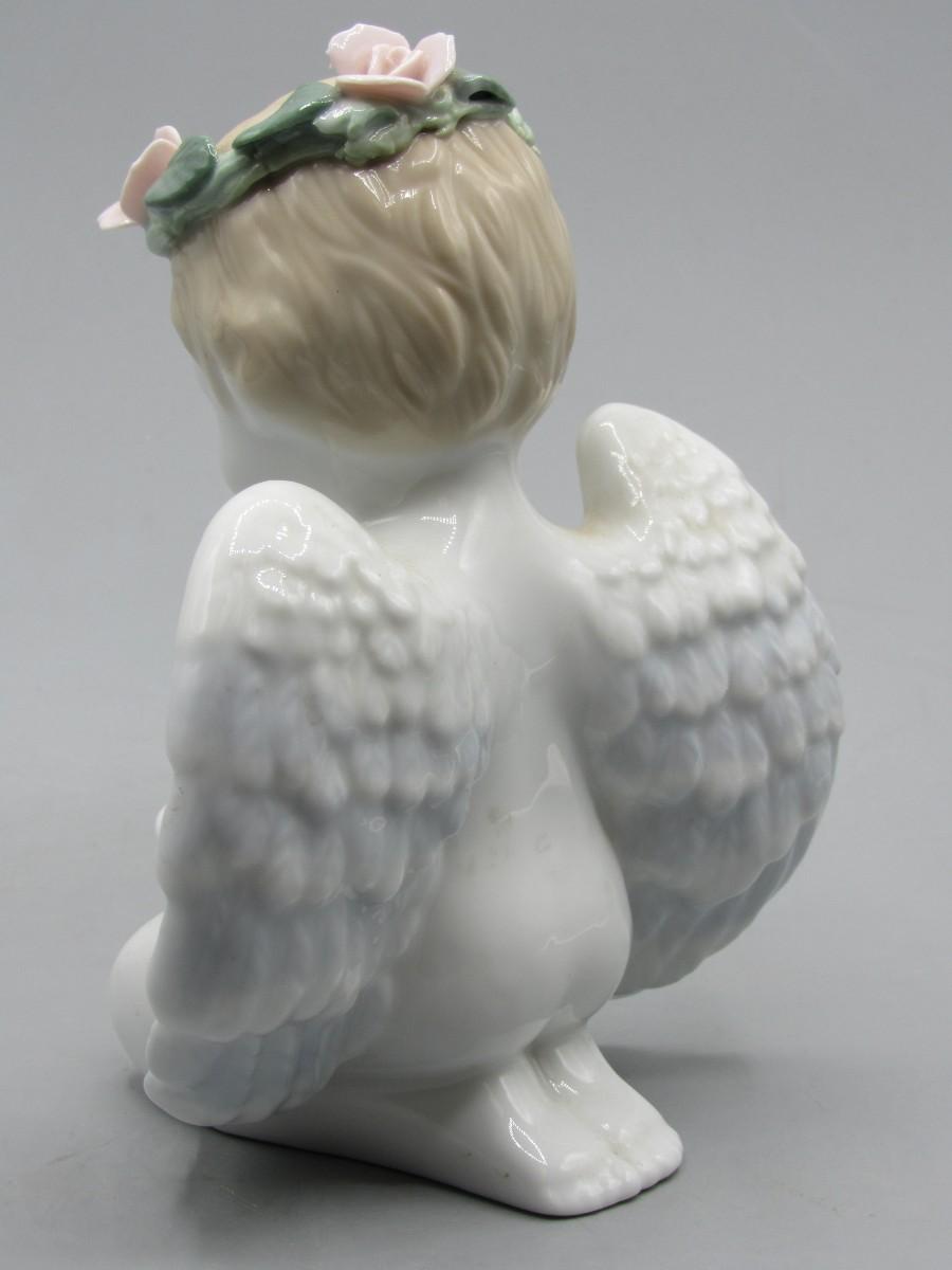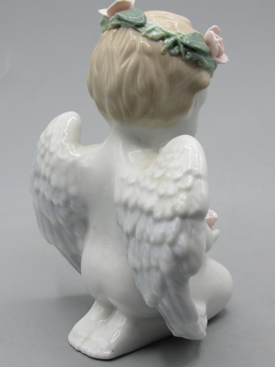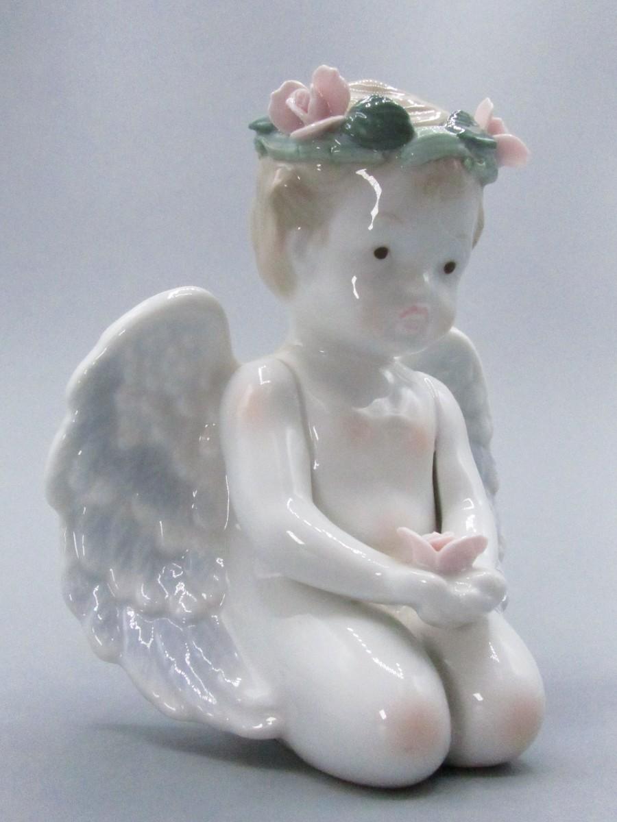 Retro Ceramic Kneeling Cherub Angel Flower Figurine
