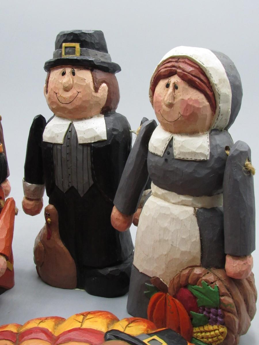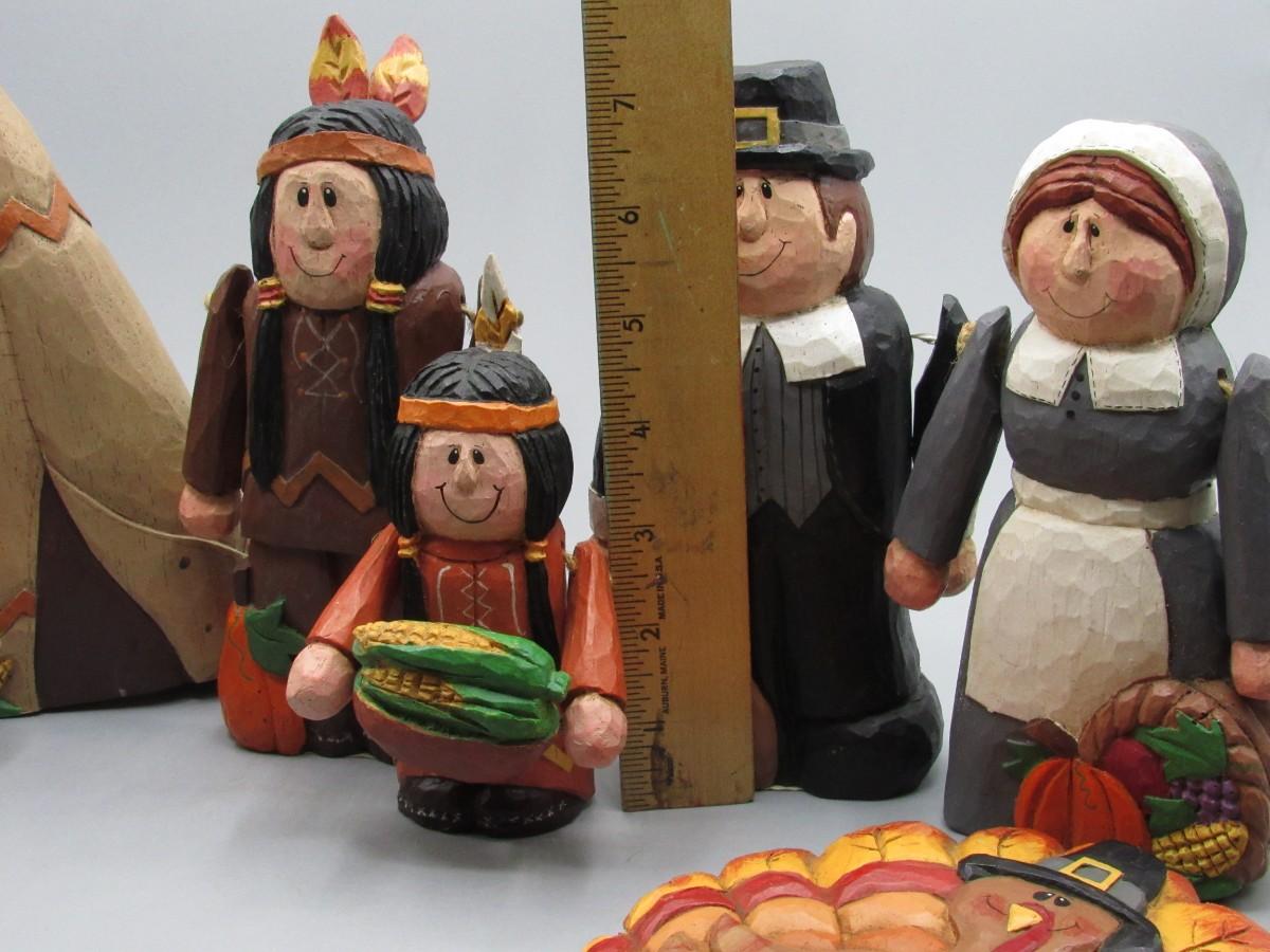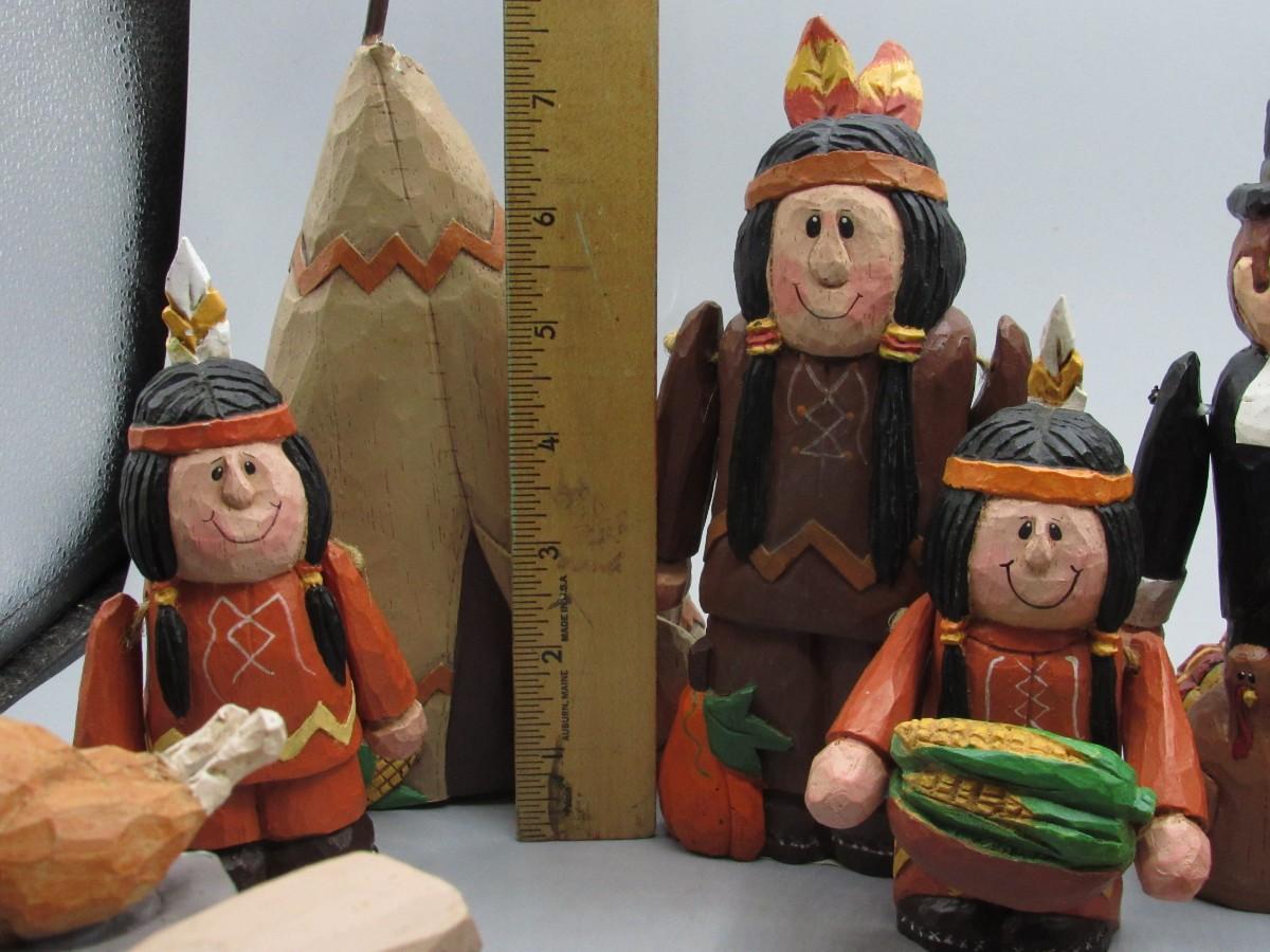 Lot of Thanksgiving Pilgrims & Native American Wooden Figurines Holiday Decor