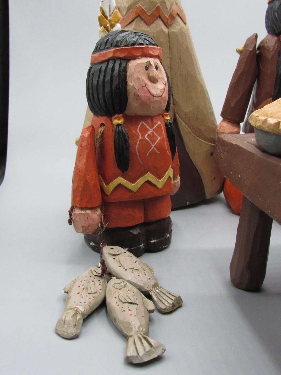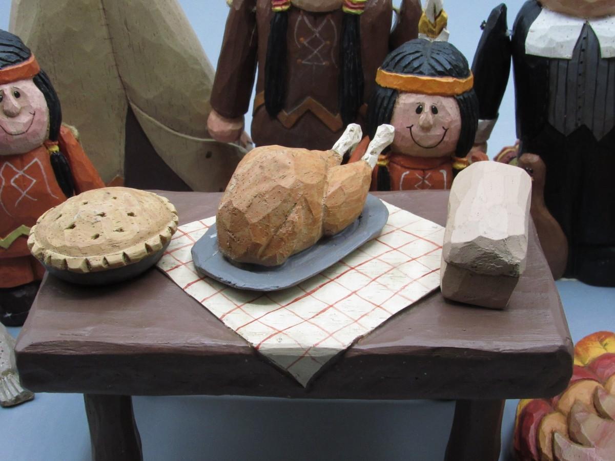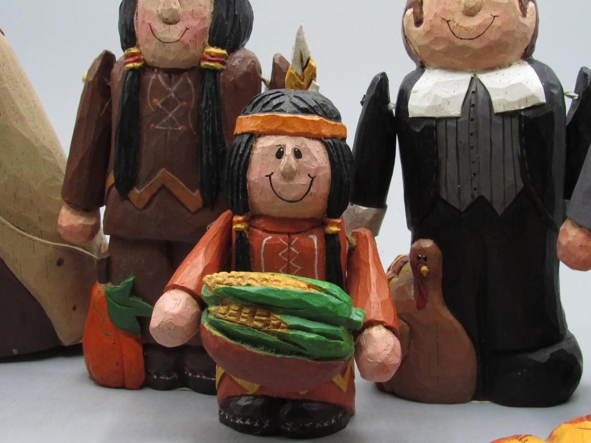 Lot of Thanksgiving Pilgrims & Native American Wooden Figurines Holiday Decor