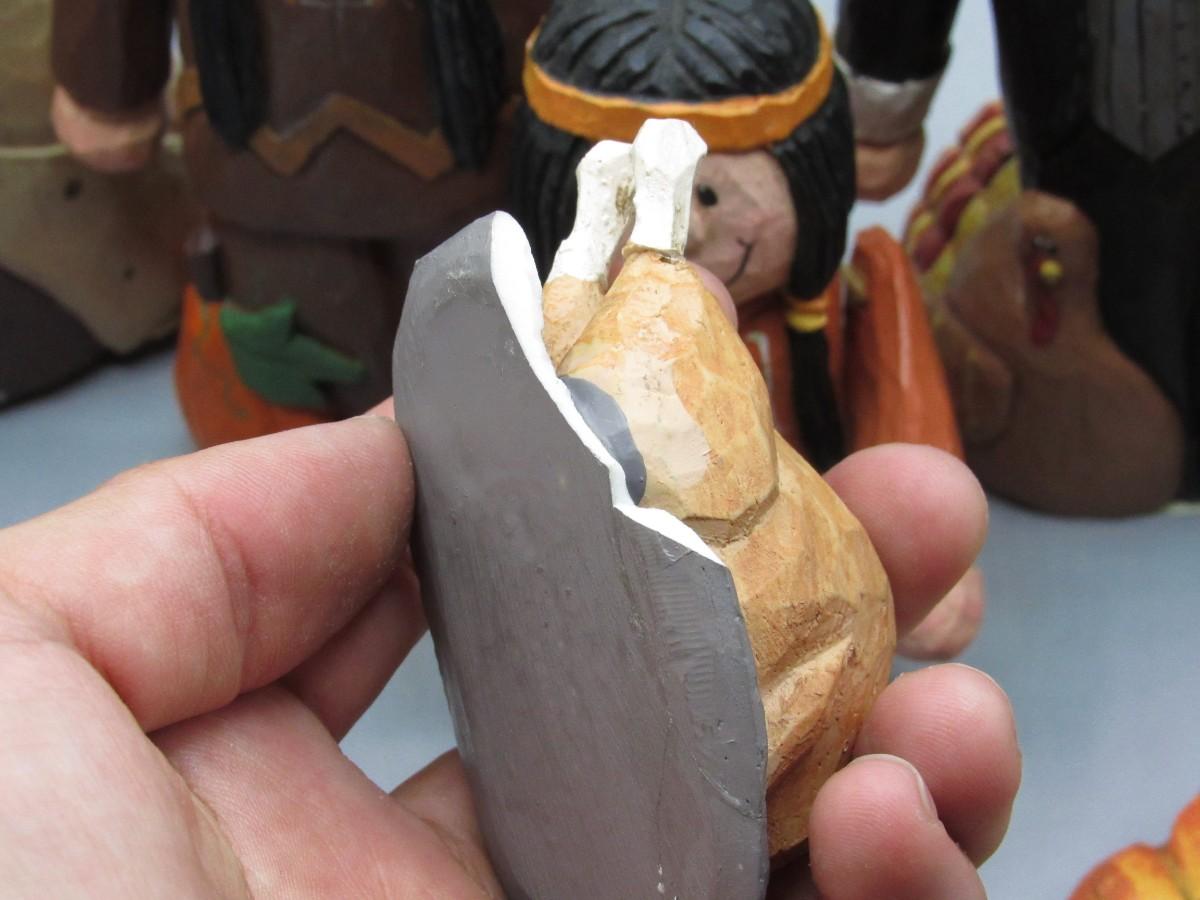 There is a chip to the turkey piece and the teepee tent, but there is no other significant damage and in good displayable condition.