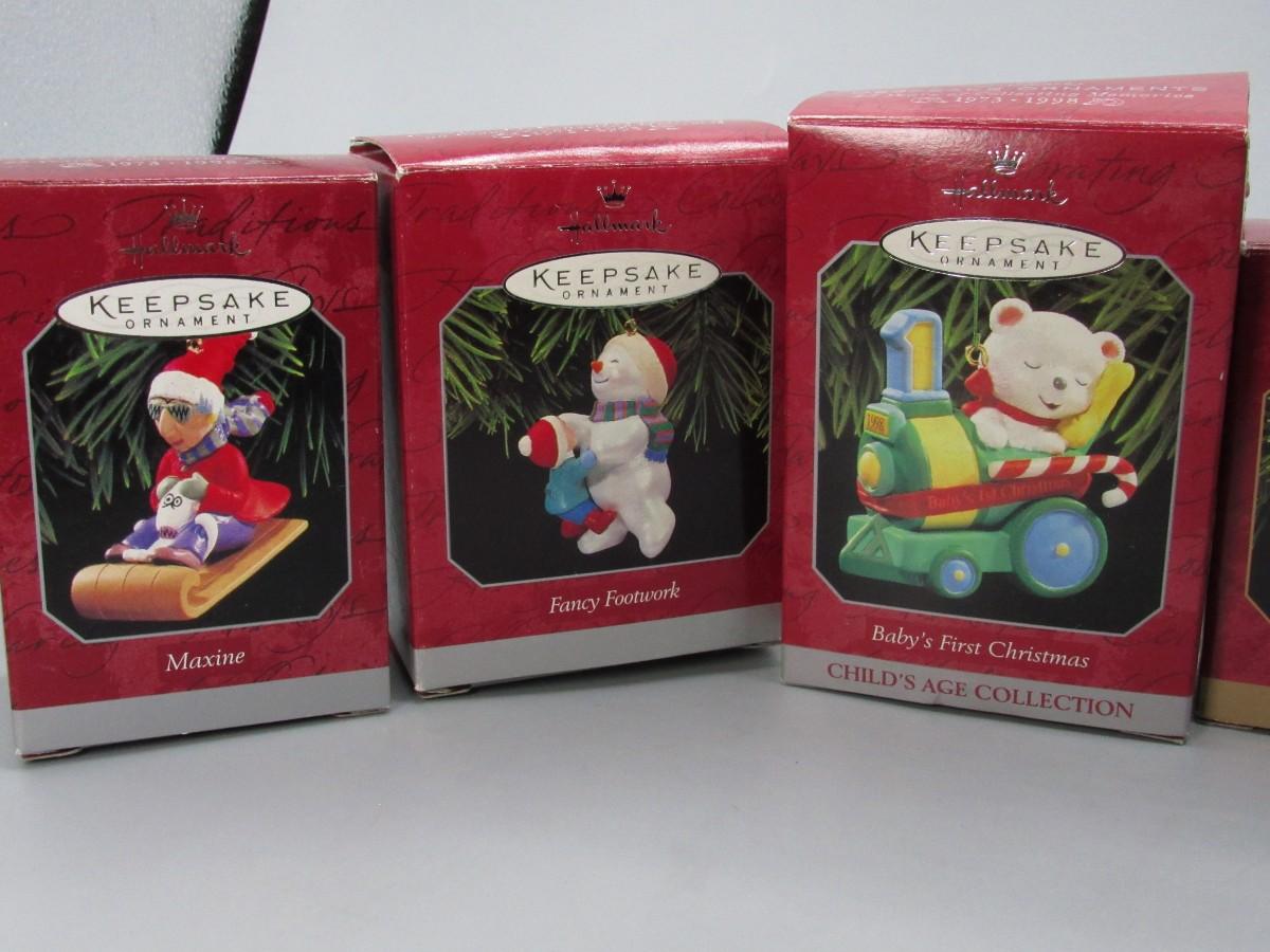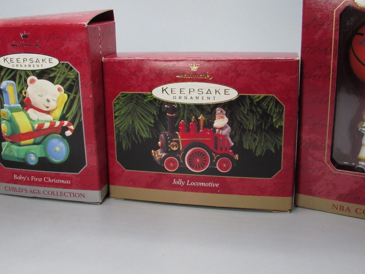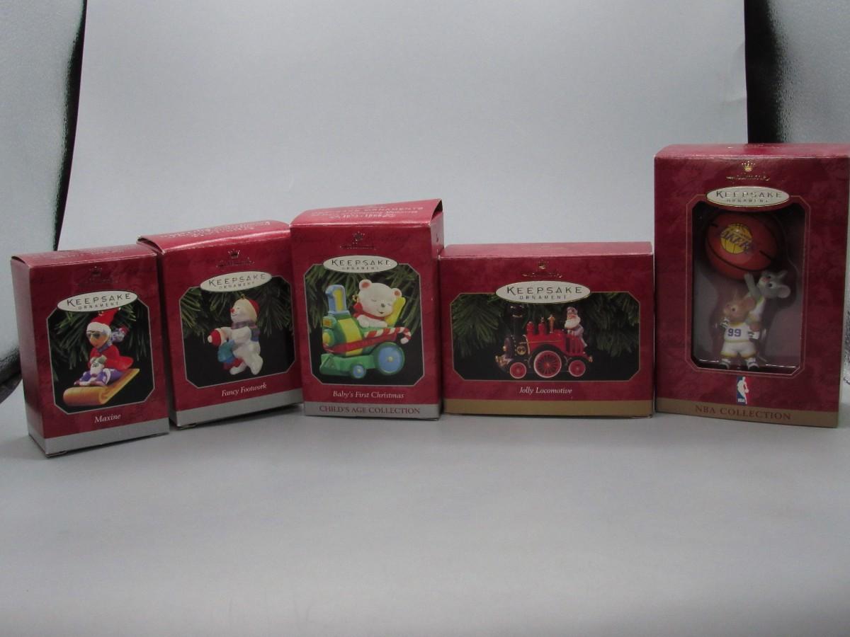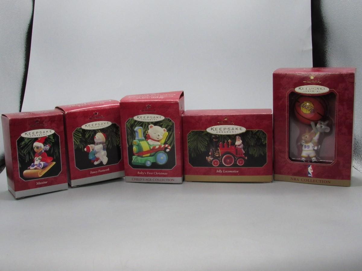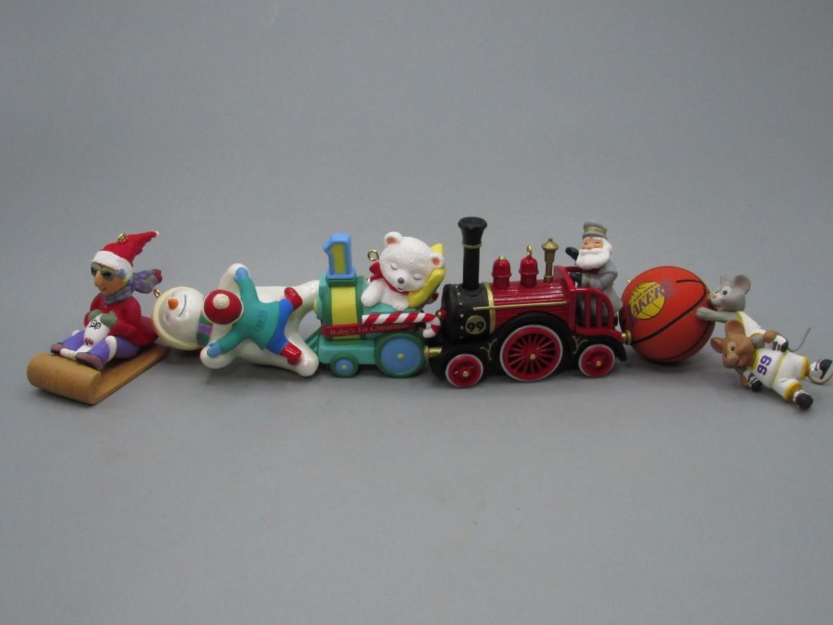 Lot of Small Miniature Keepsake Ornaments First Christmas, Los Angeles Lakers, Snowmen, Train, & More