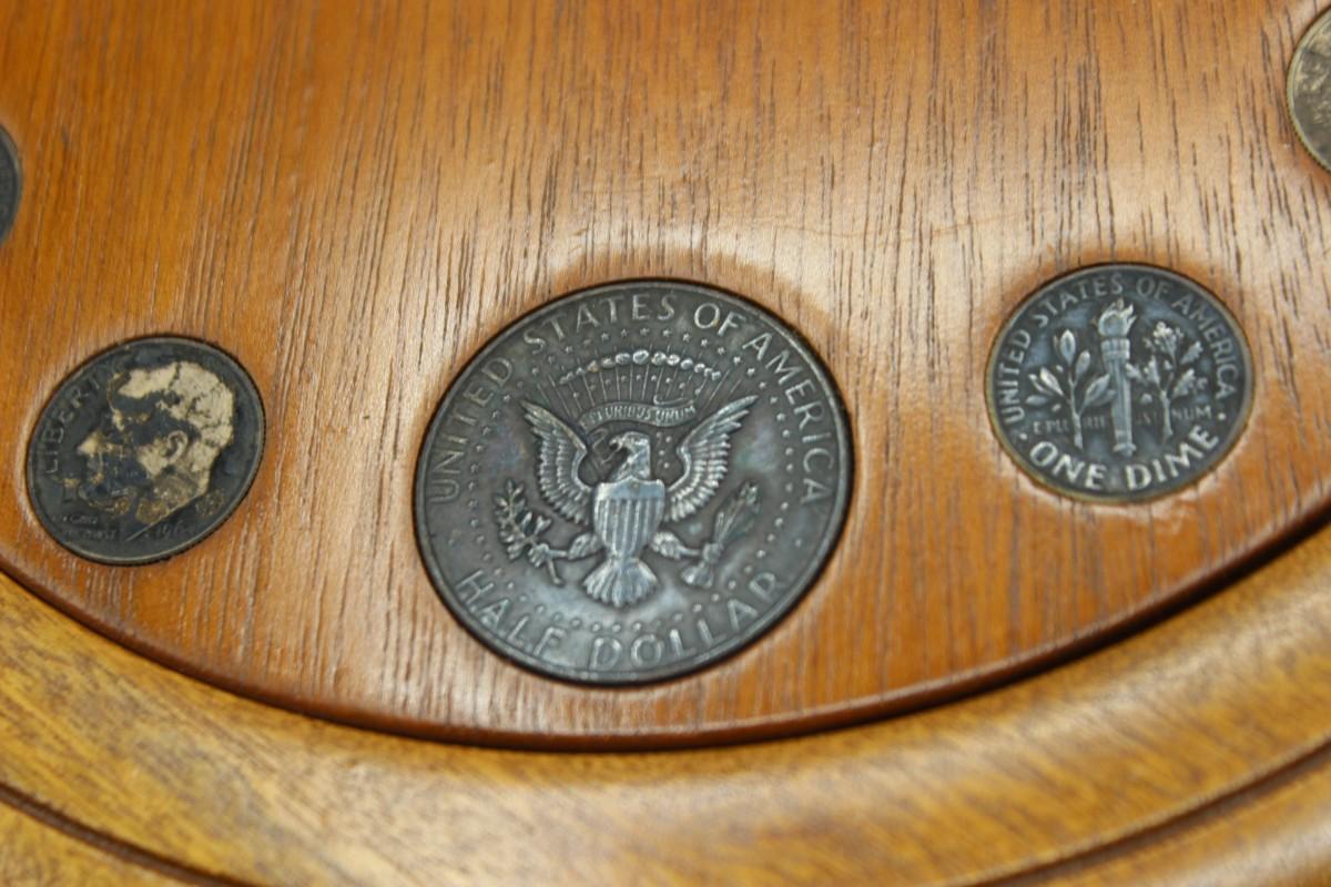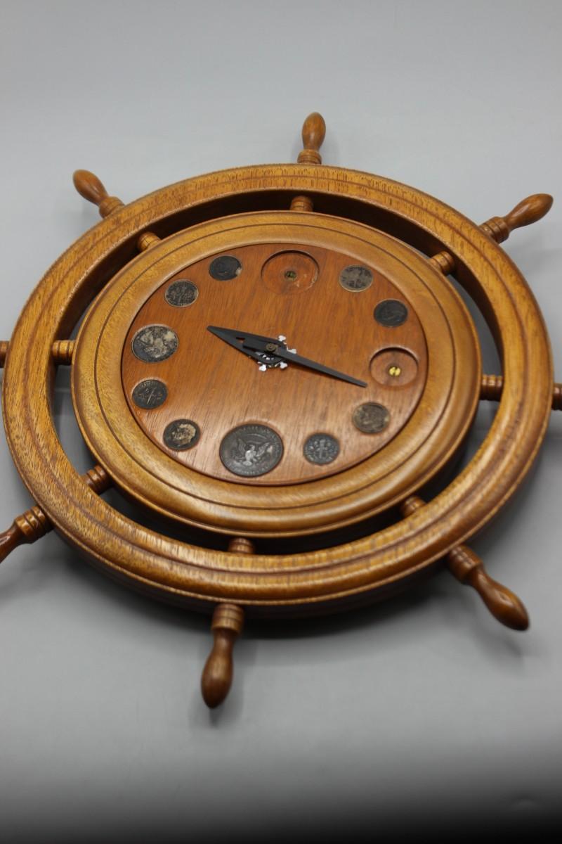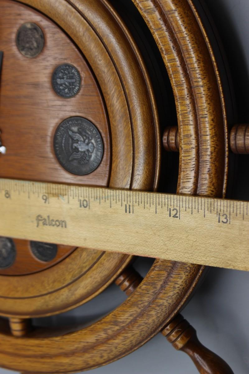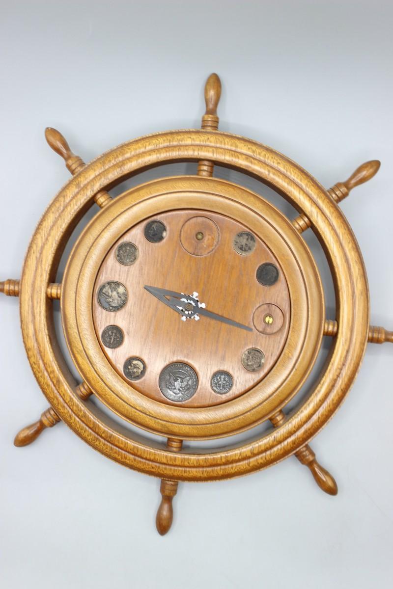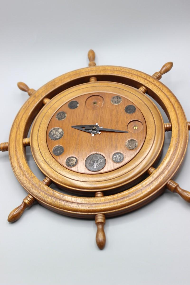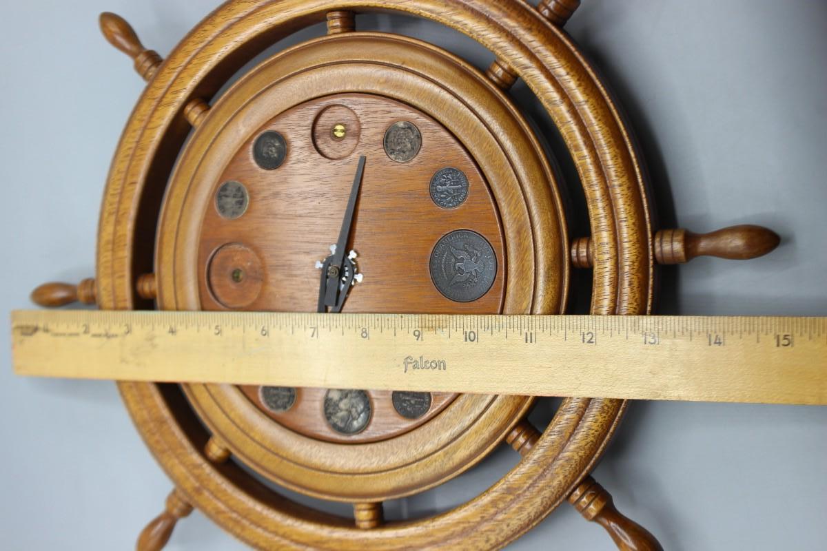 Retro Nautical Ship Wheel Inlaid Coins Wall Hanging Clock
