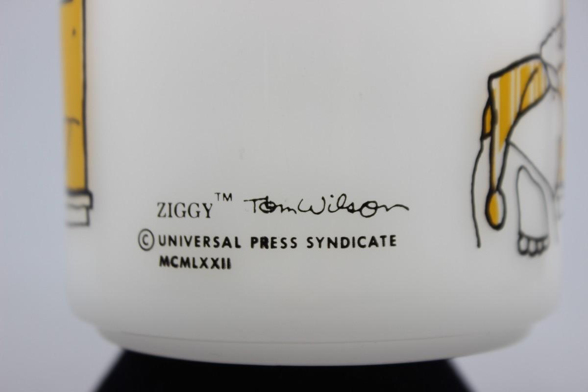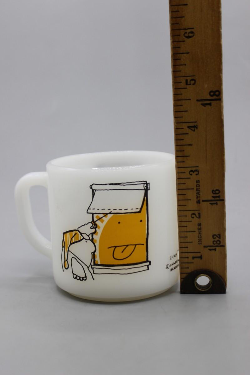 Vintage 1974 Ziggy Federal Milk Glass Sunrise Cartoon Morning Coffee Mug