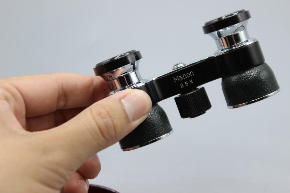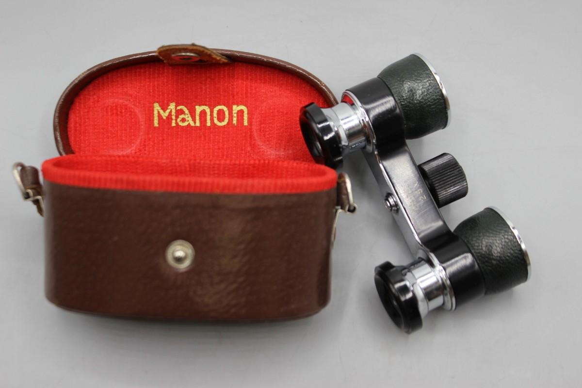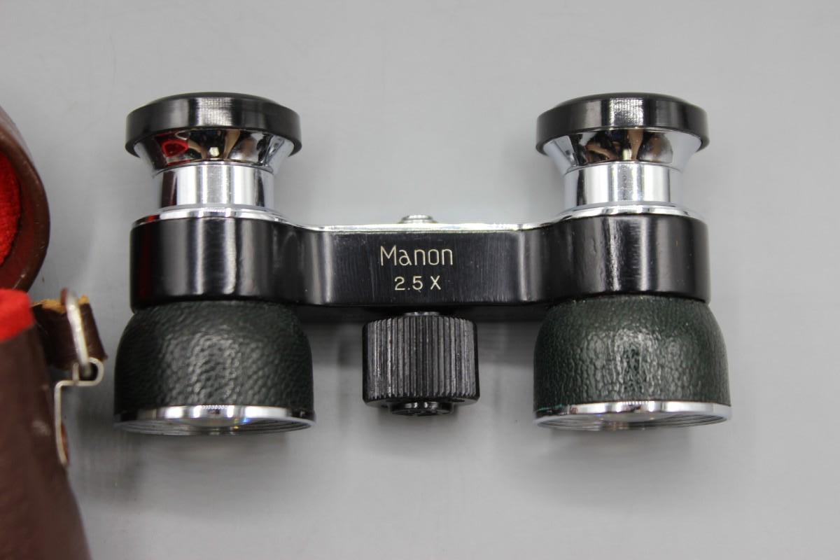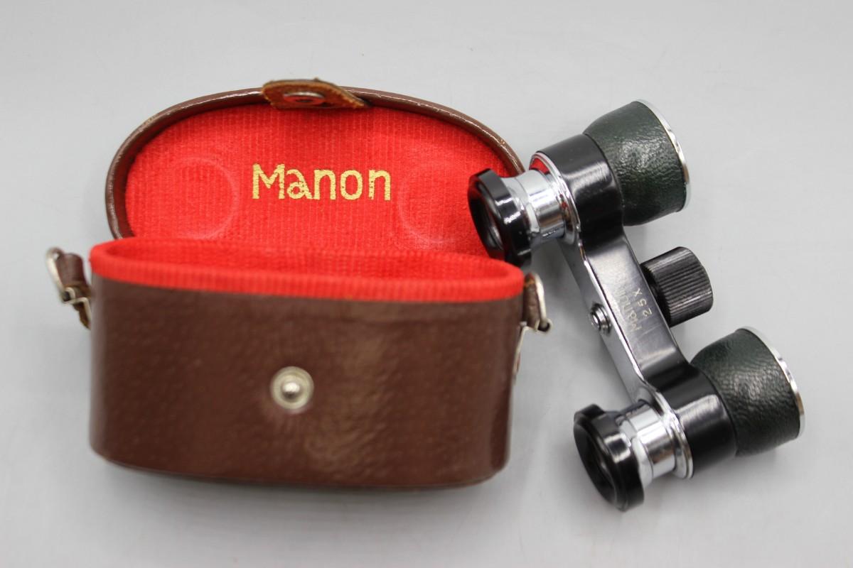 Small Vintage Manon 2.5x Binoculars with Leather Felt Lined Case
