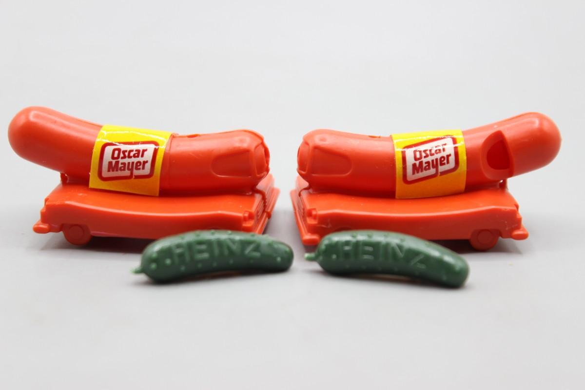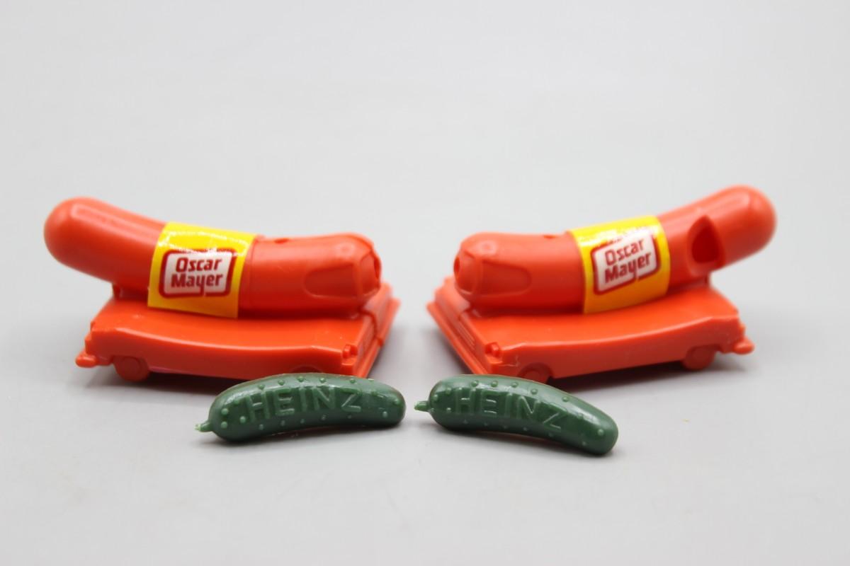 Retro Oscar Mayer Plastic Novelty Whistle & Heinz Plastic Pickle Pin