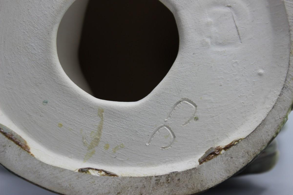 There is crazing all over the figurine, but there is no damage and in good condition. Artist initials on the bottom.