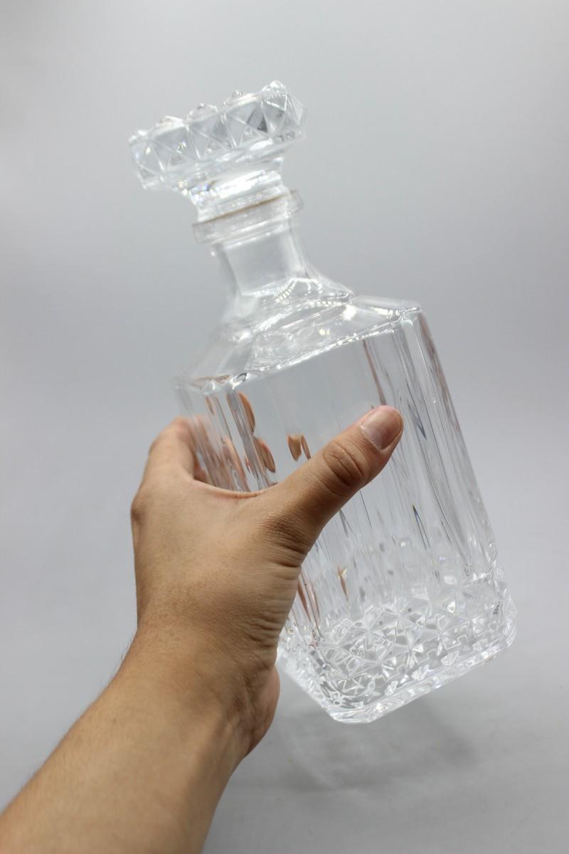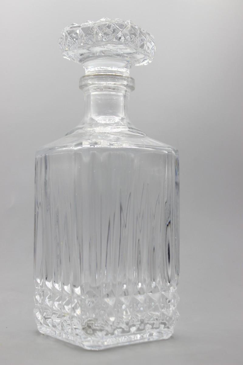 Crystal Glass Art Deco Minimalist Cubed Diamond Pattern Barware Decanter