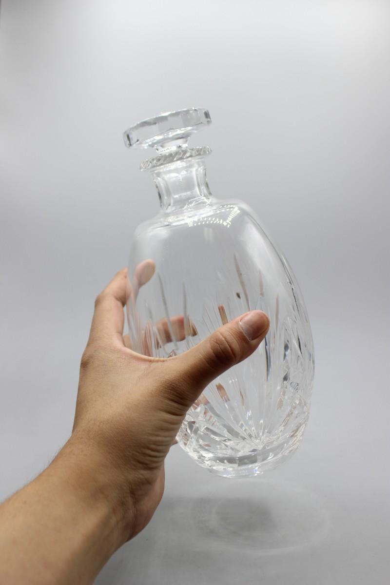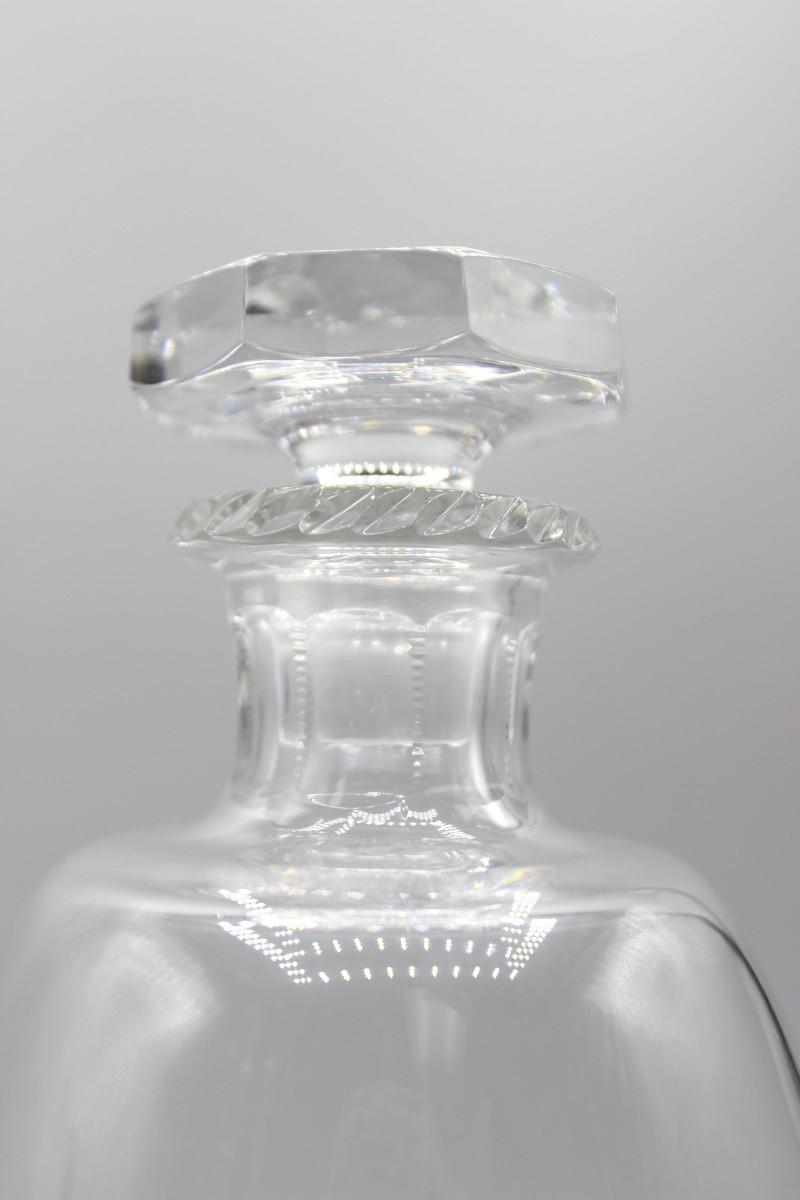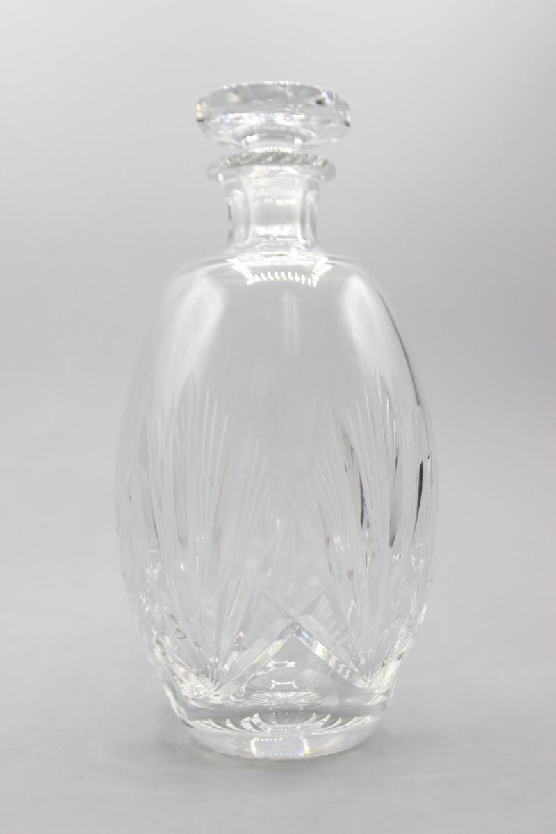 Etched Art Deco Leafs Round Oval Vintage Glass Liquor Decanter