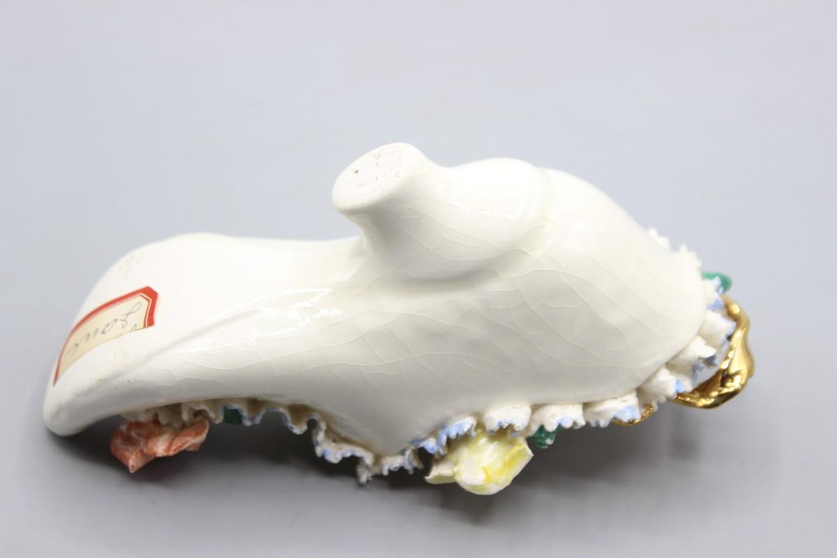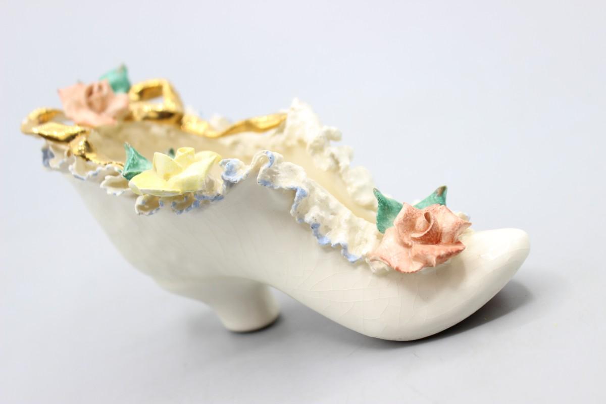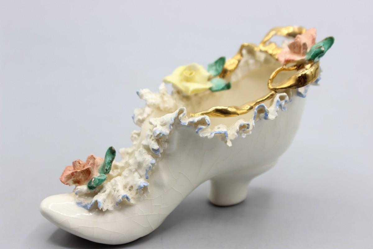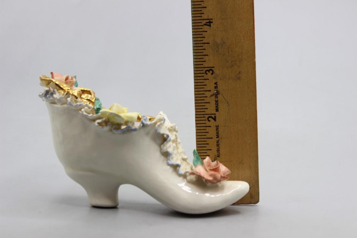 VIntage Porcelain Art Victorian Ruffled Rose Heeled Shoe Figurine