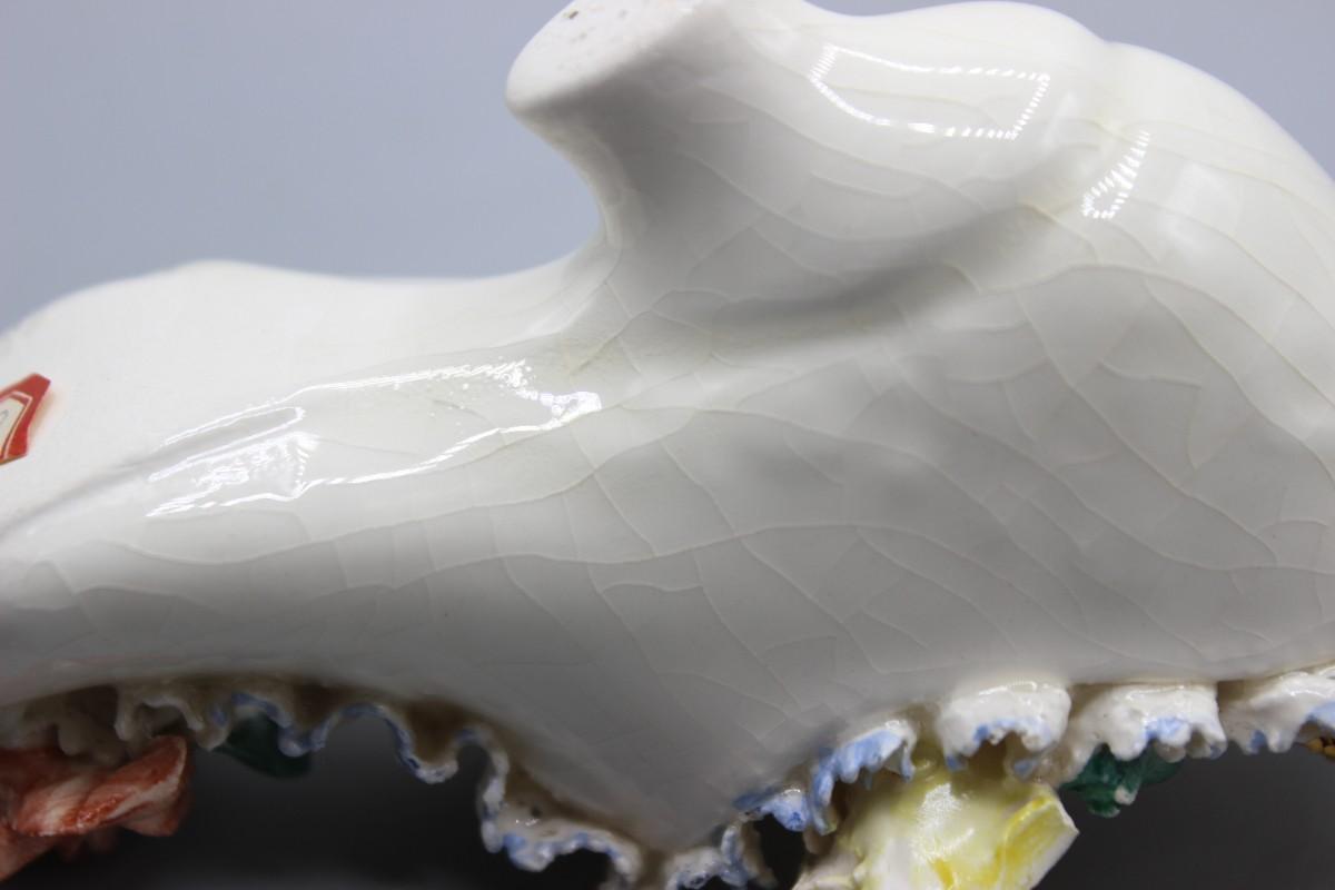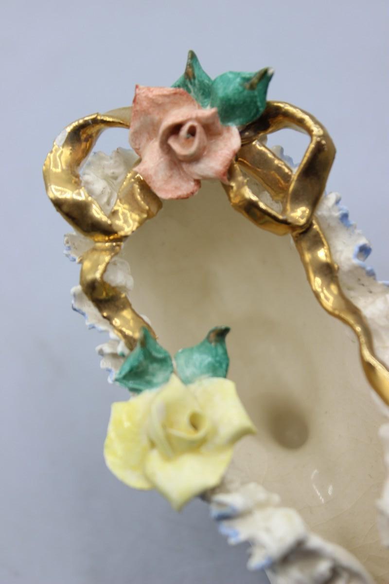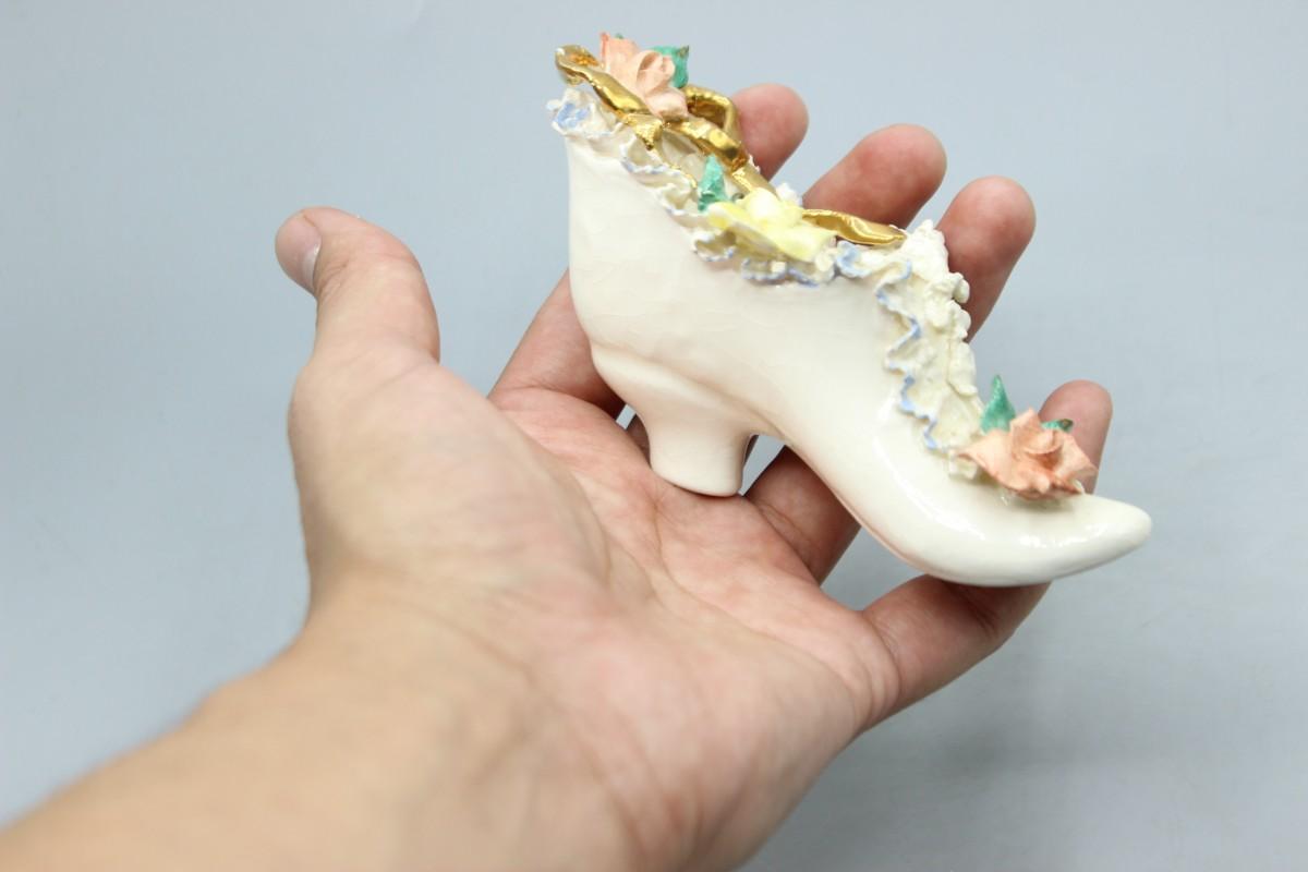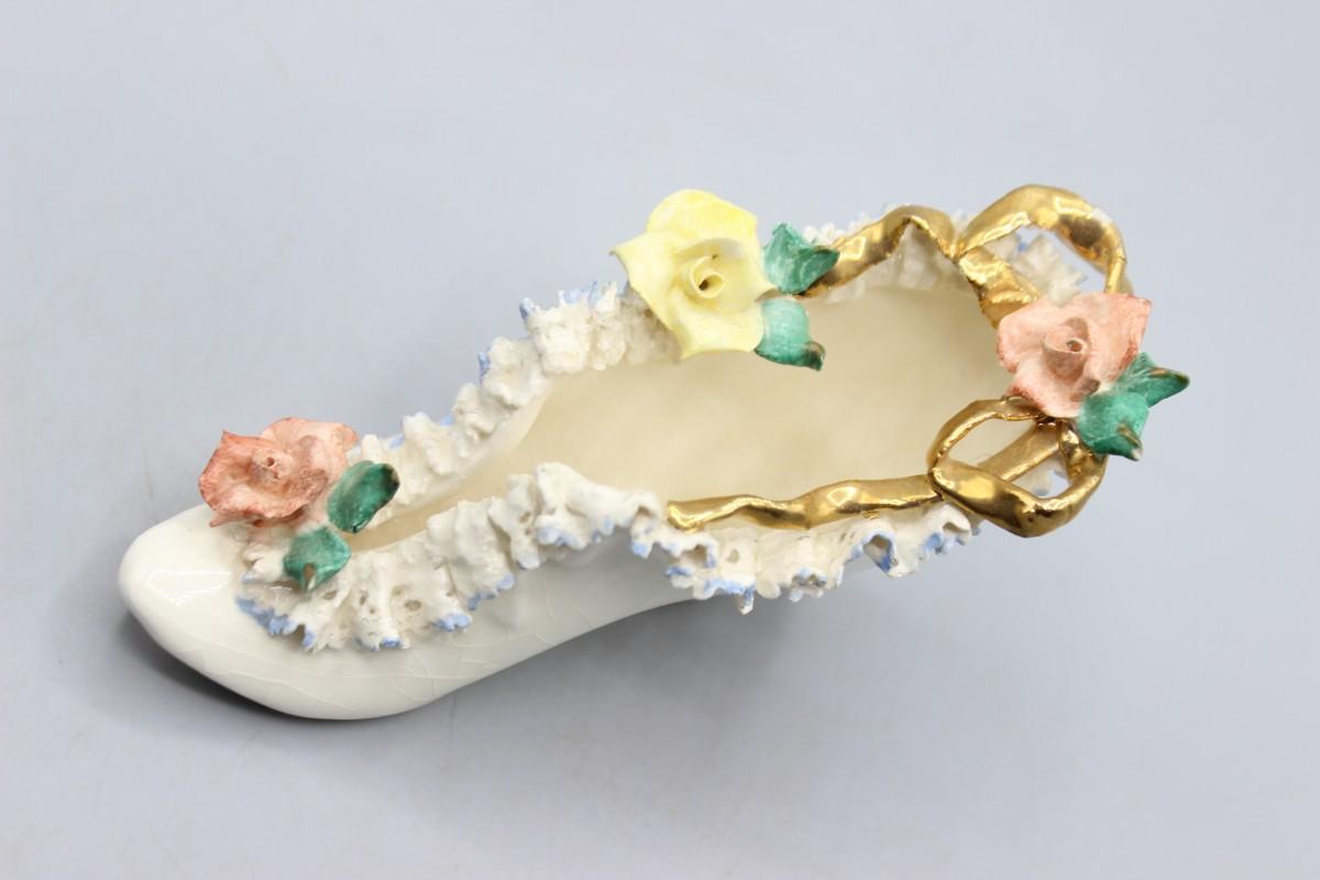 VIntage Porcelain Art Victorian Ruffled Rose Heeled Shoe Figurine