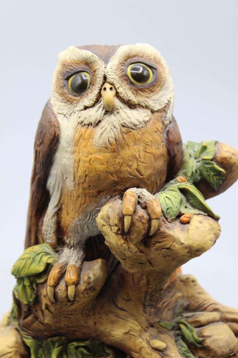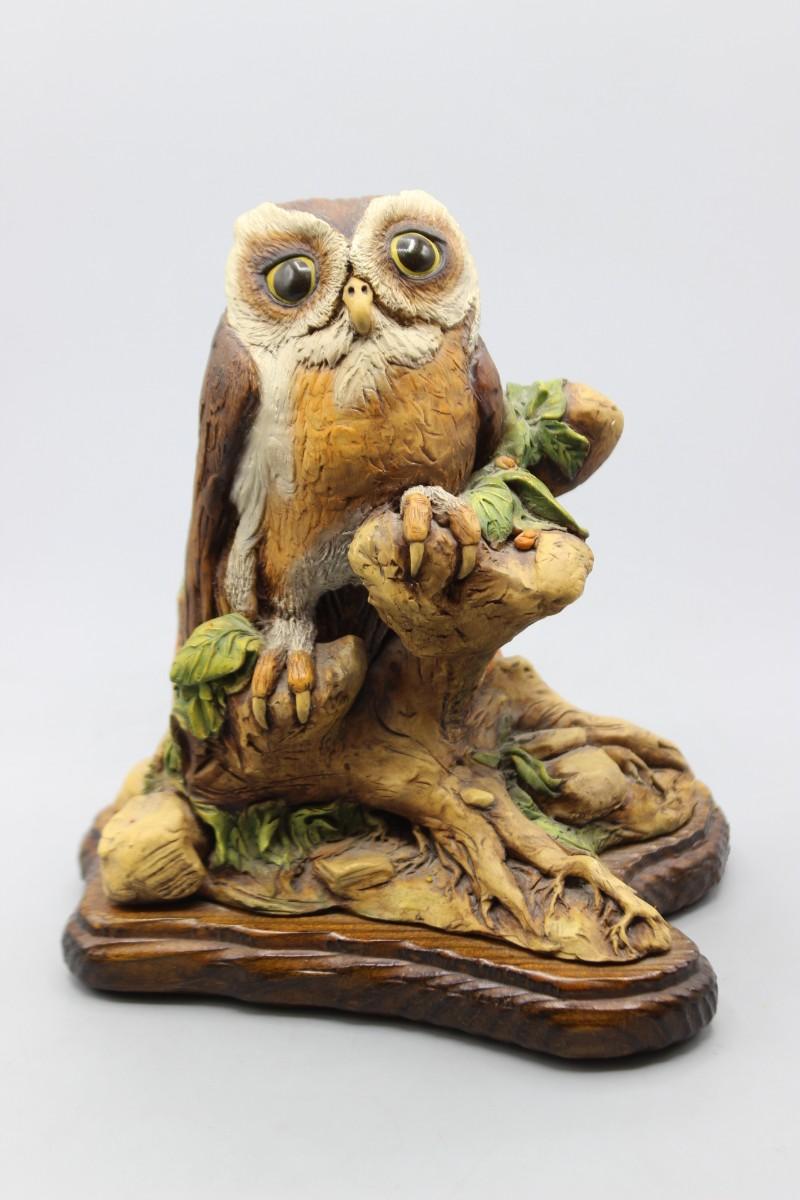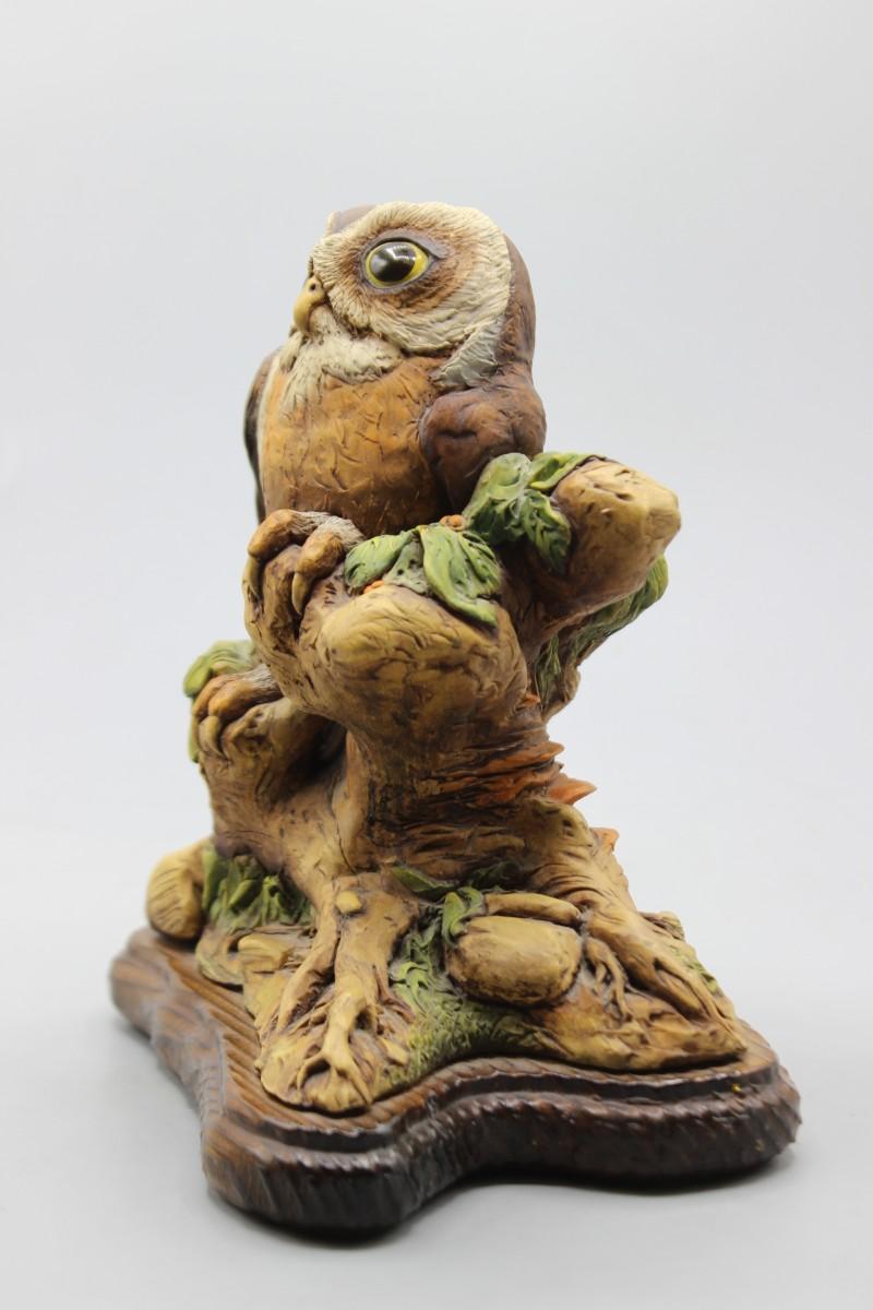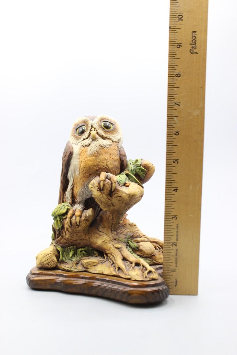 Vintage Small Wild Owl Perched On Branch Figural Art Decor