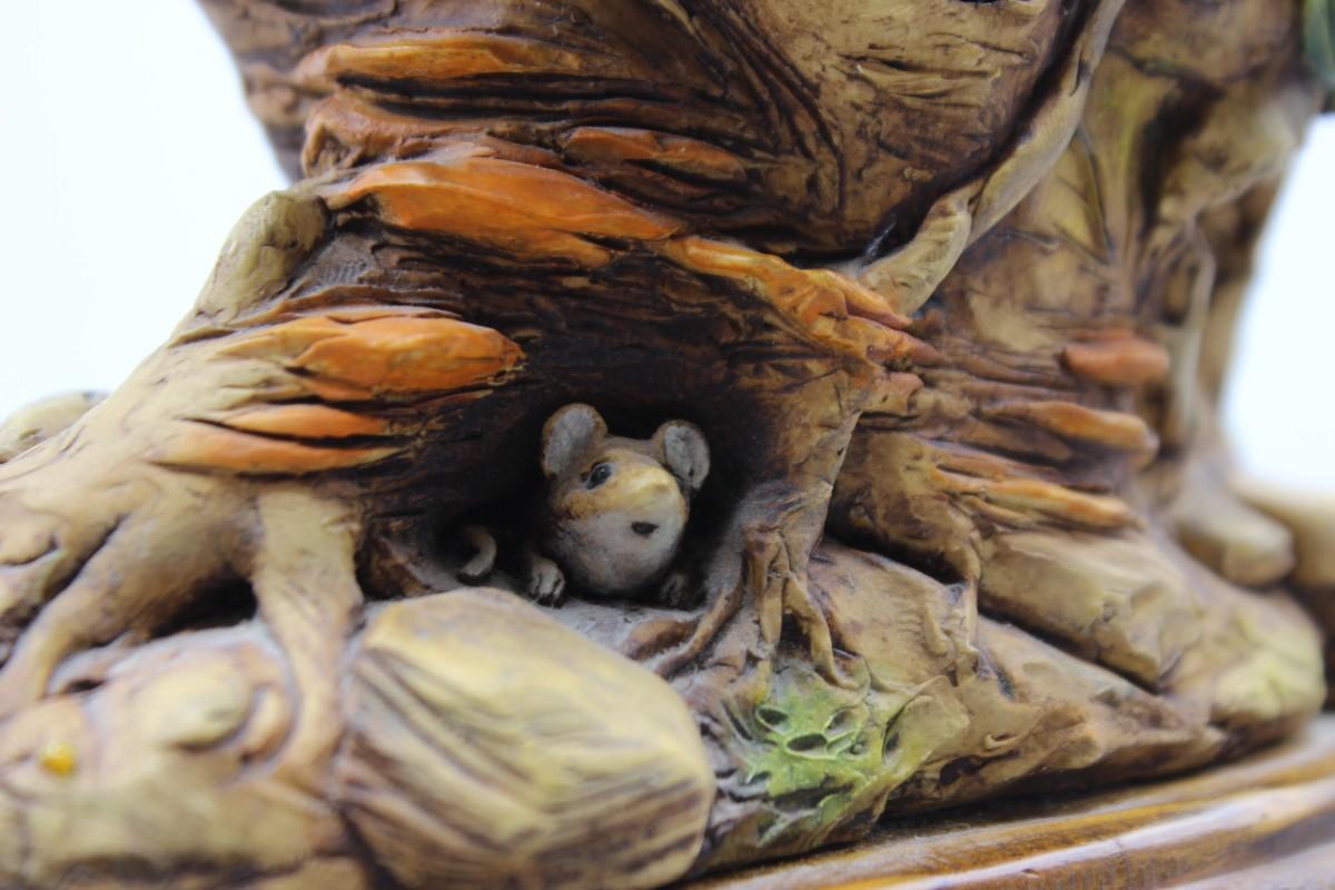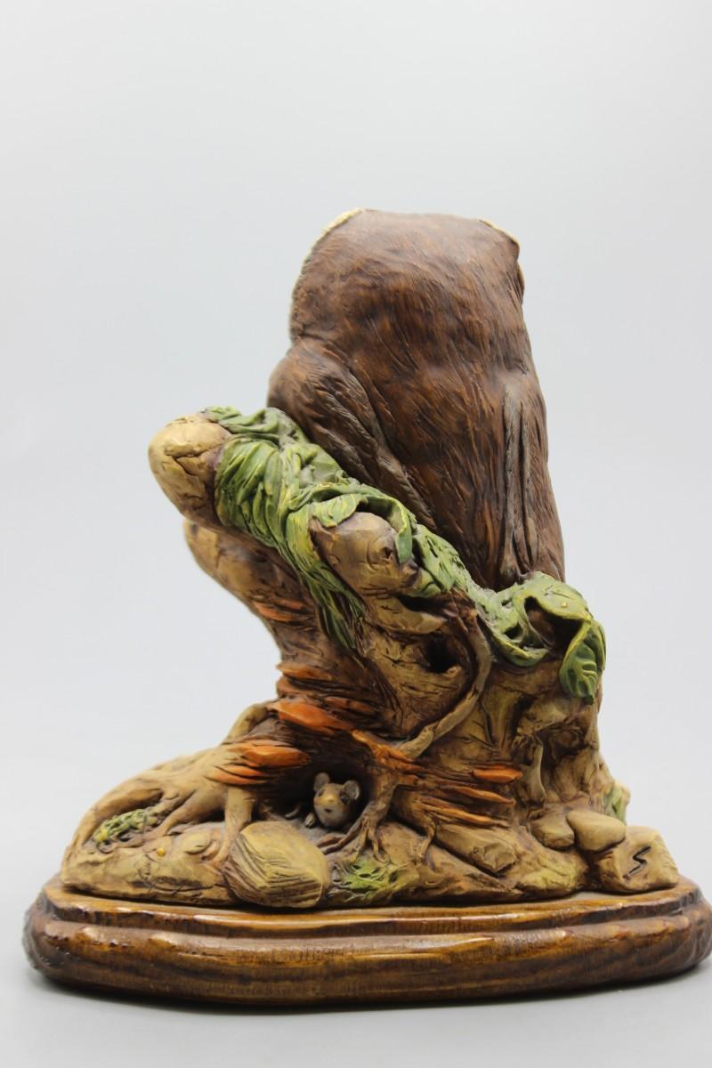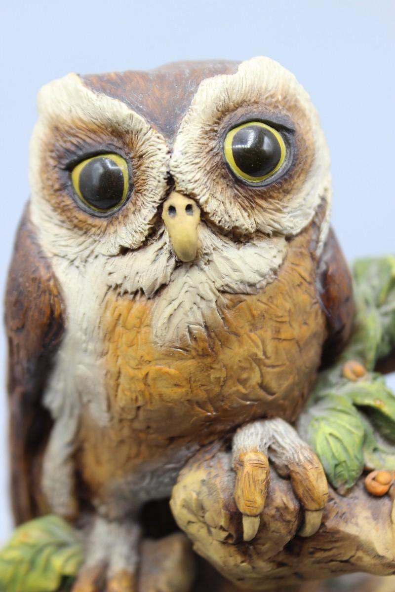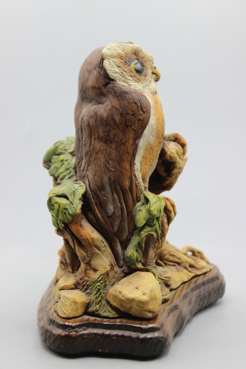 Vintage Small Wild Owl Perched On Branch Figural Art Decor