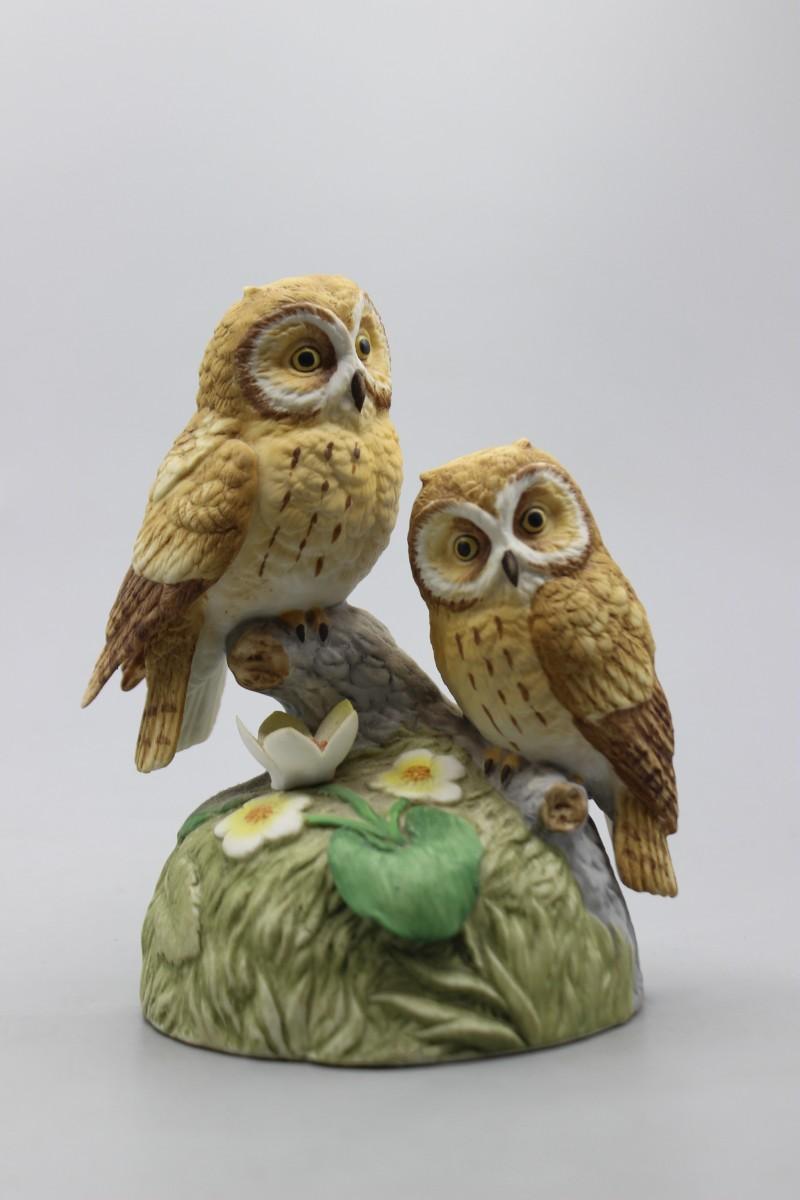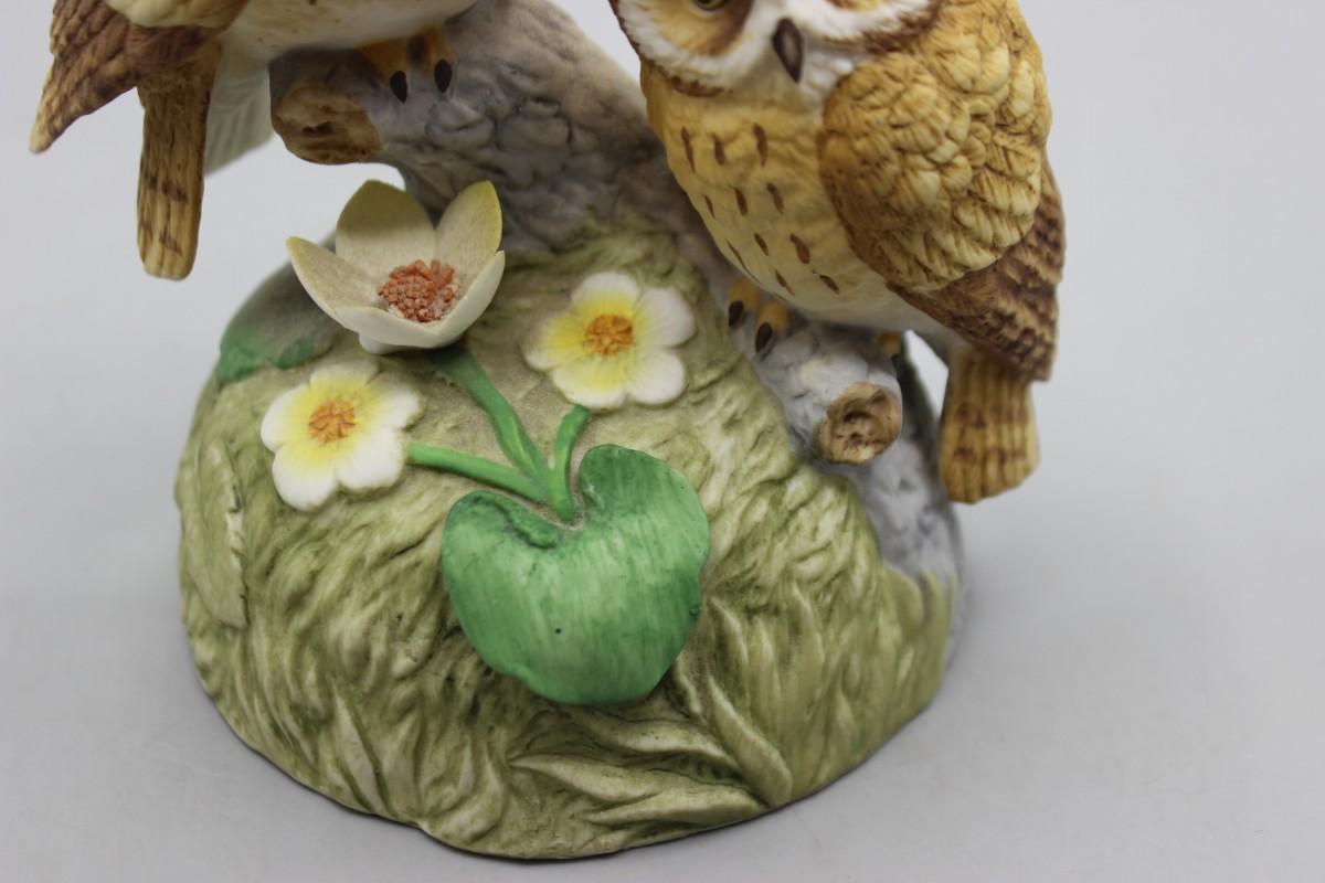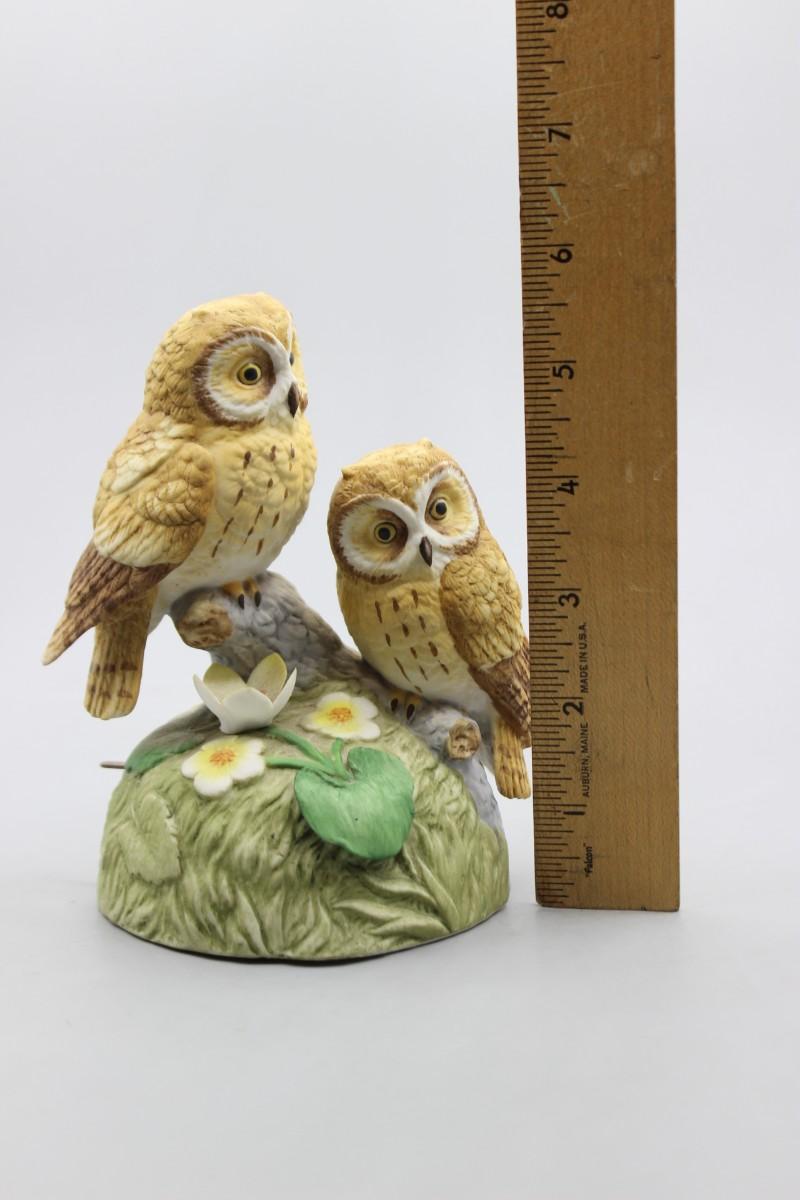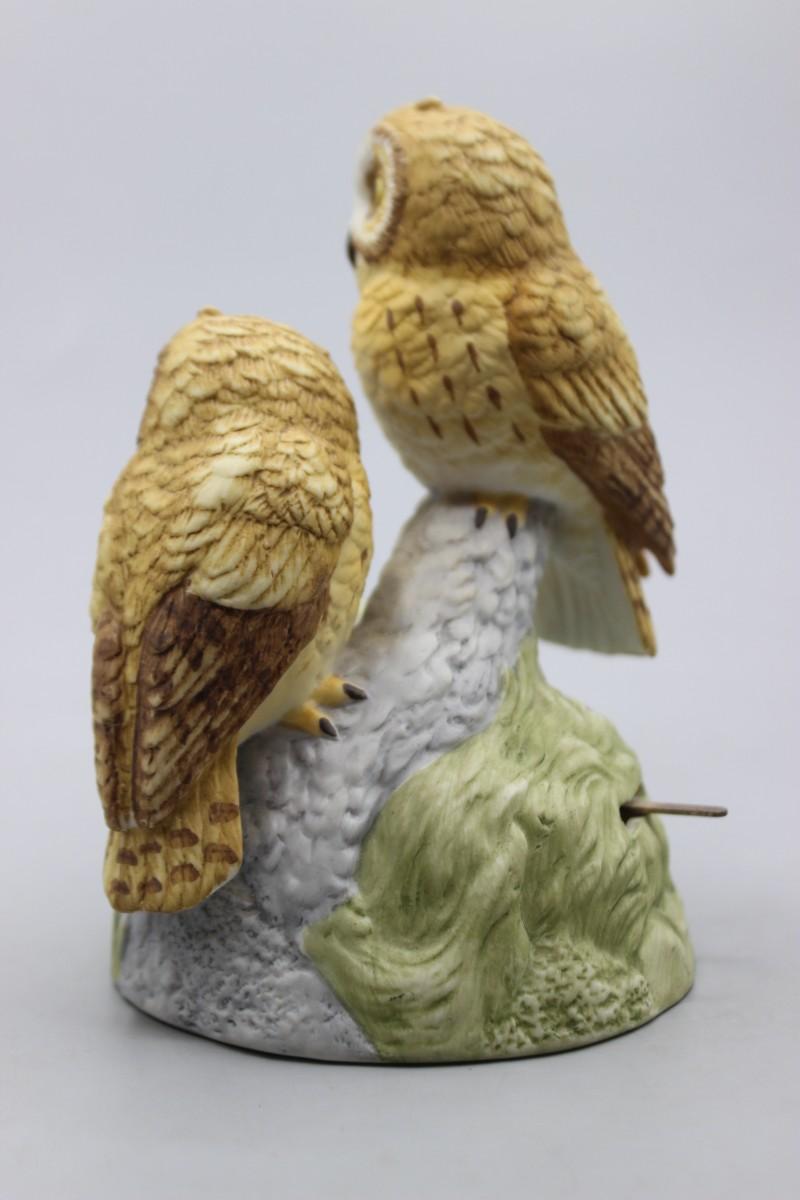 Gift World of Gorham Made in Japan Wild Owl Pair Ceramic Music Box