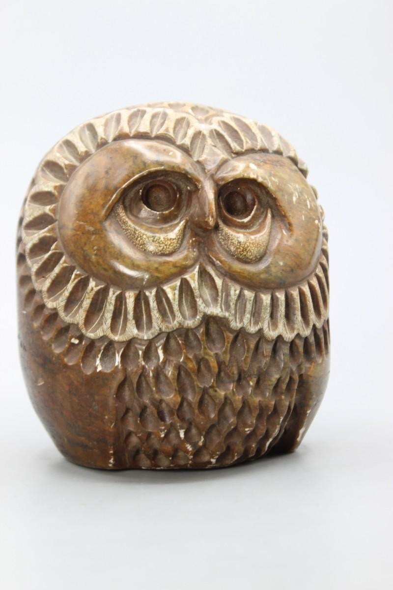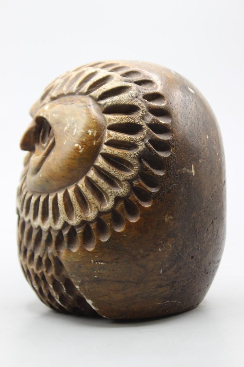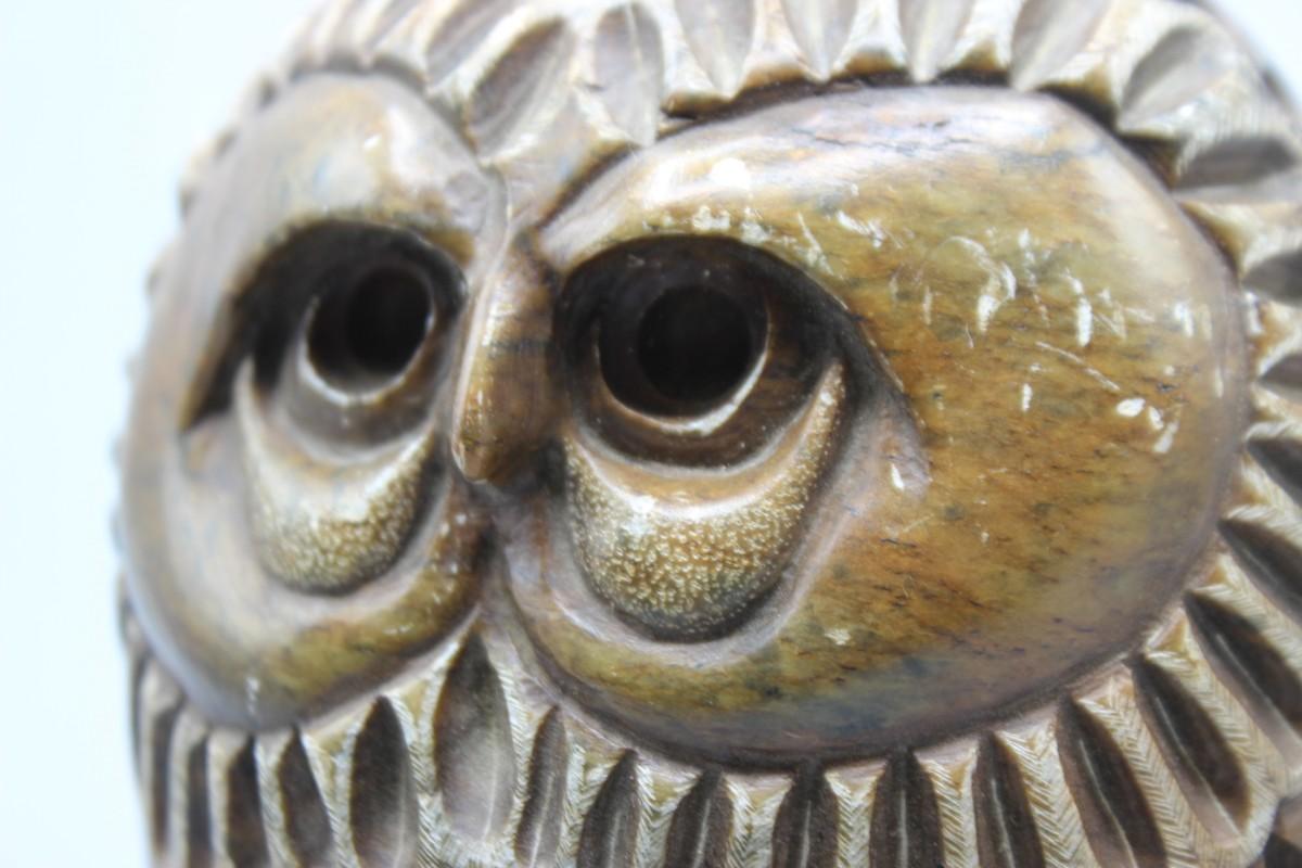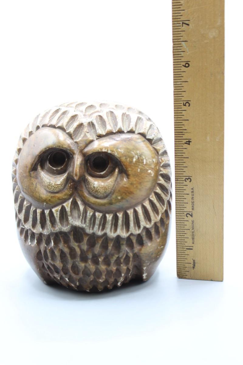 Vintage Rustic Heavy Carved Etched Artist Stone Modern Owl Sculpture Figurine
