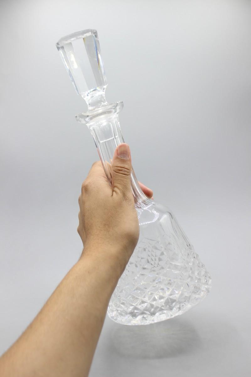 Vintage Crystal Glass Diamond Pattern Liquor Decanter Barware