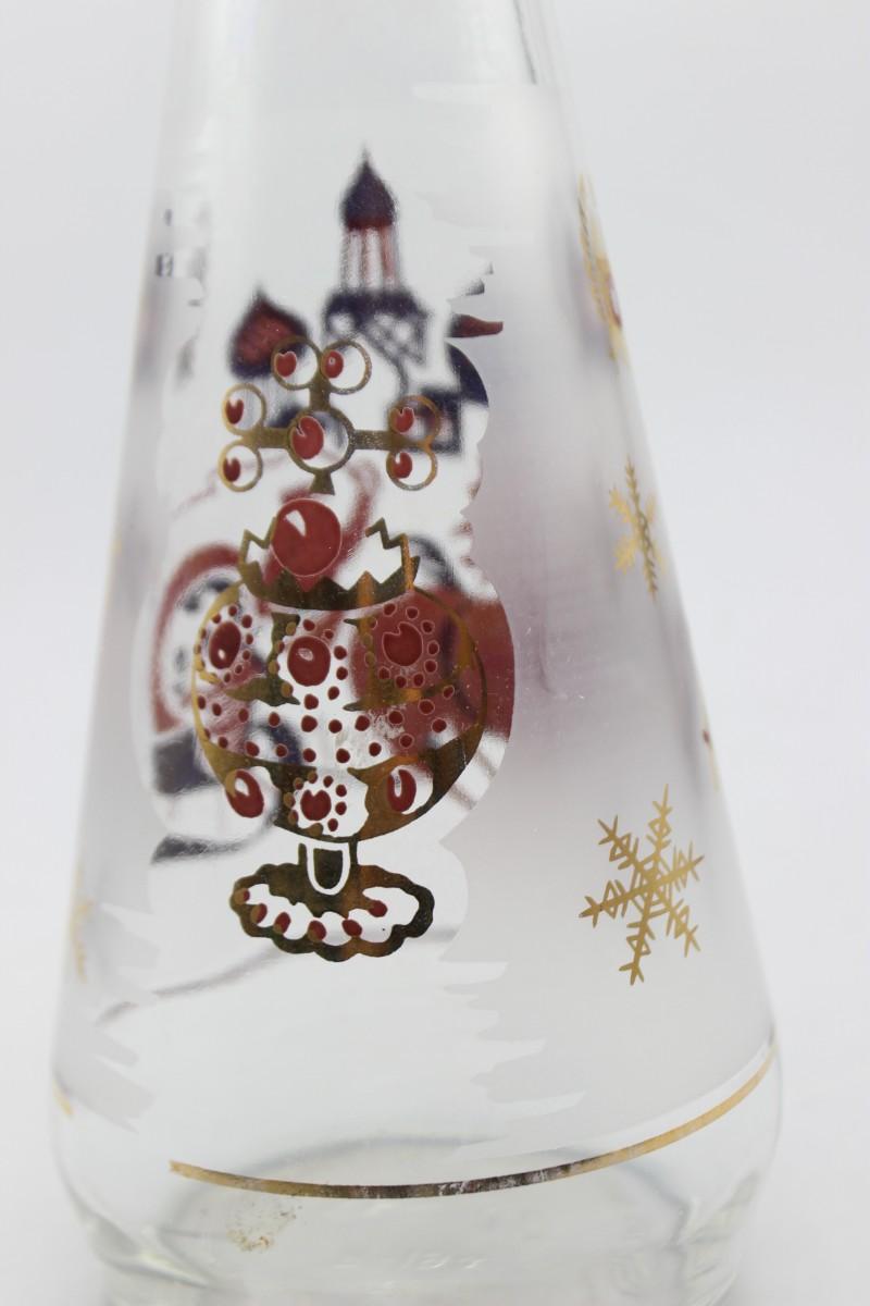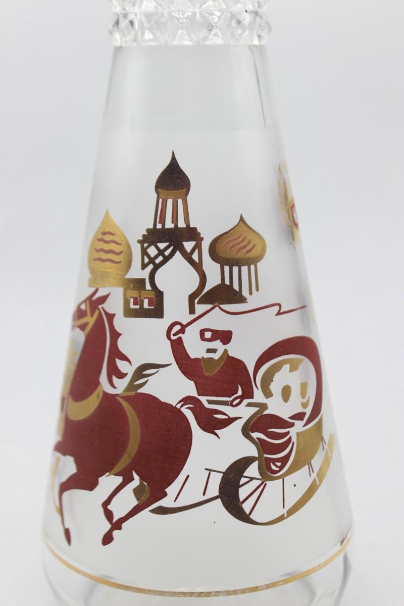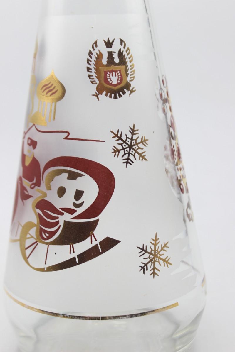 Vintage Mid Century Russian Vodka Bottle Winter Christmas Themed Barware Decanter