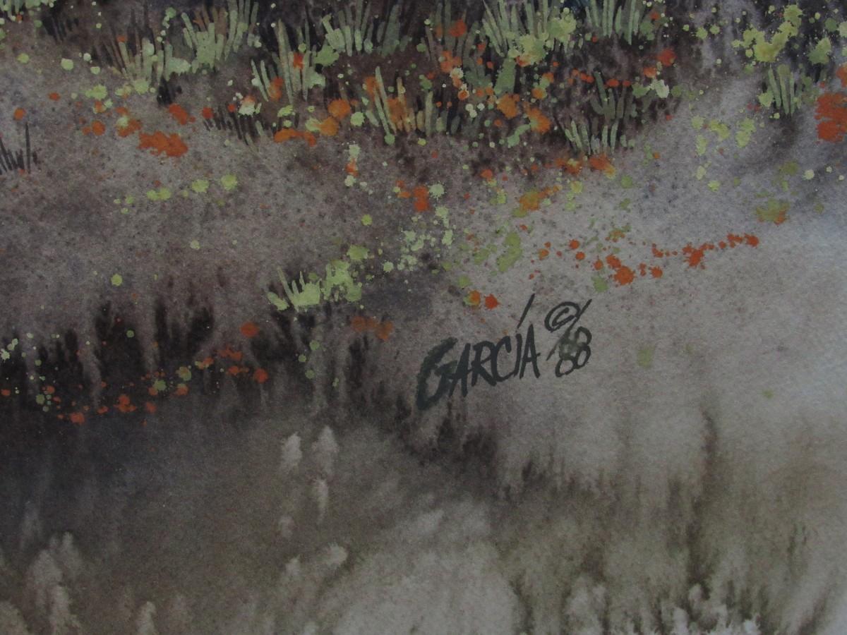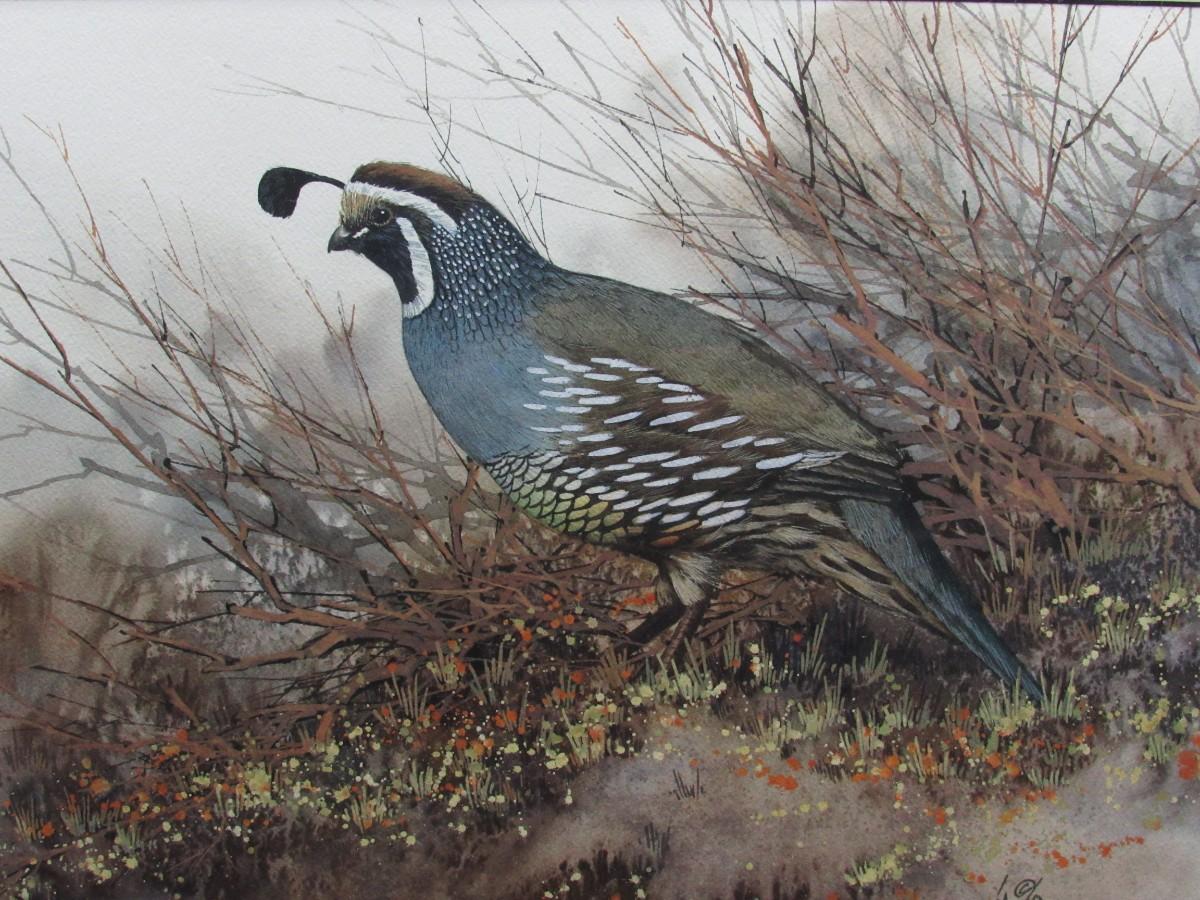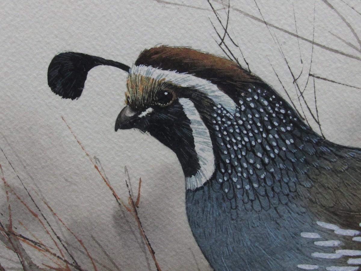Vintage Framed Wild Quail Watercolor Nature Art Print by Artist Garcia