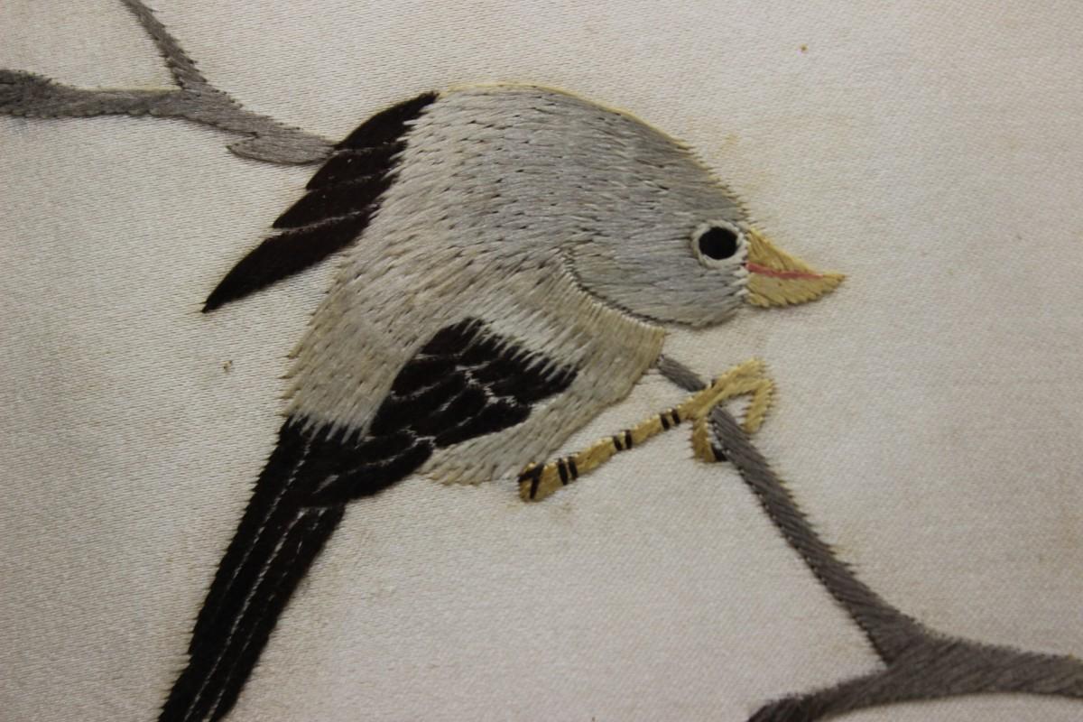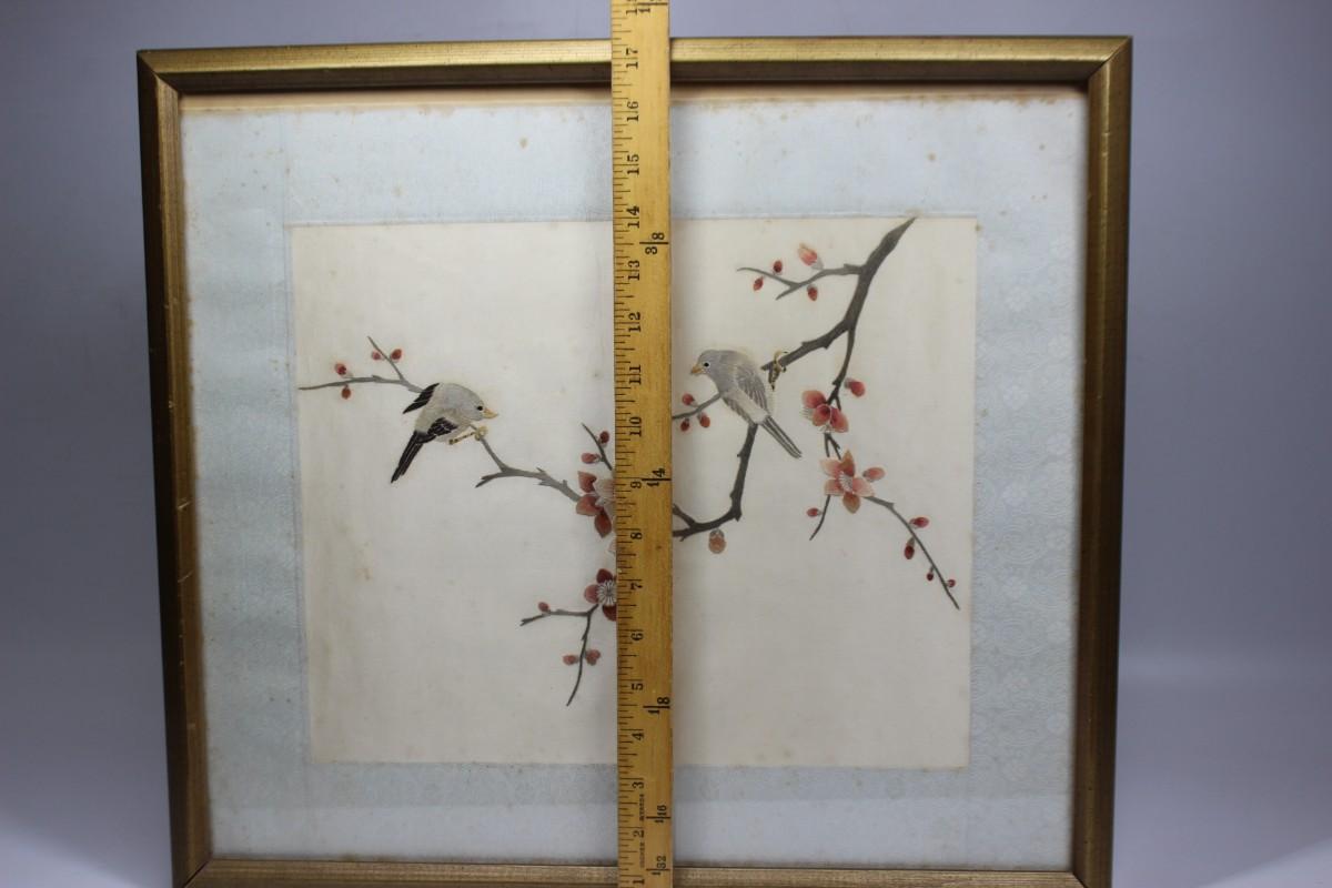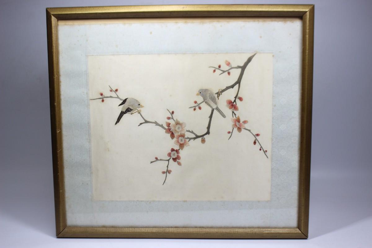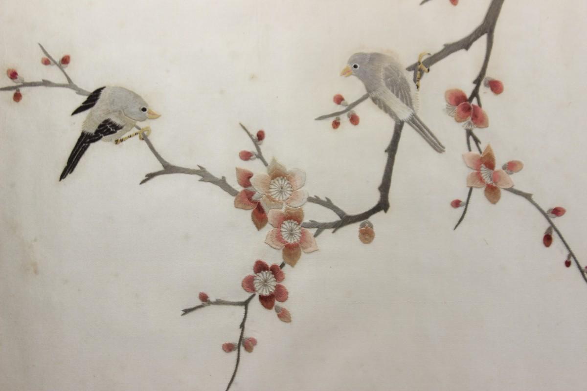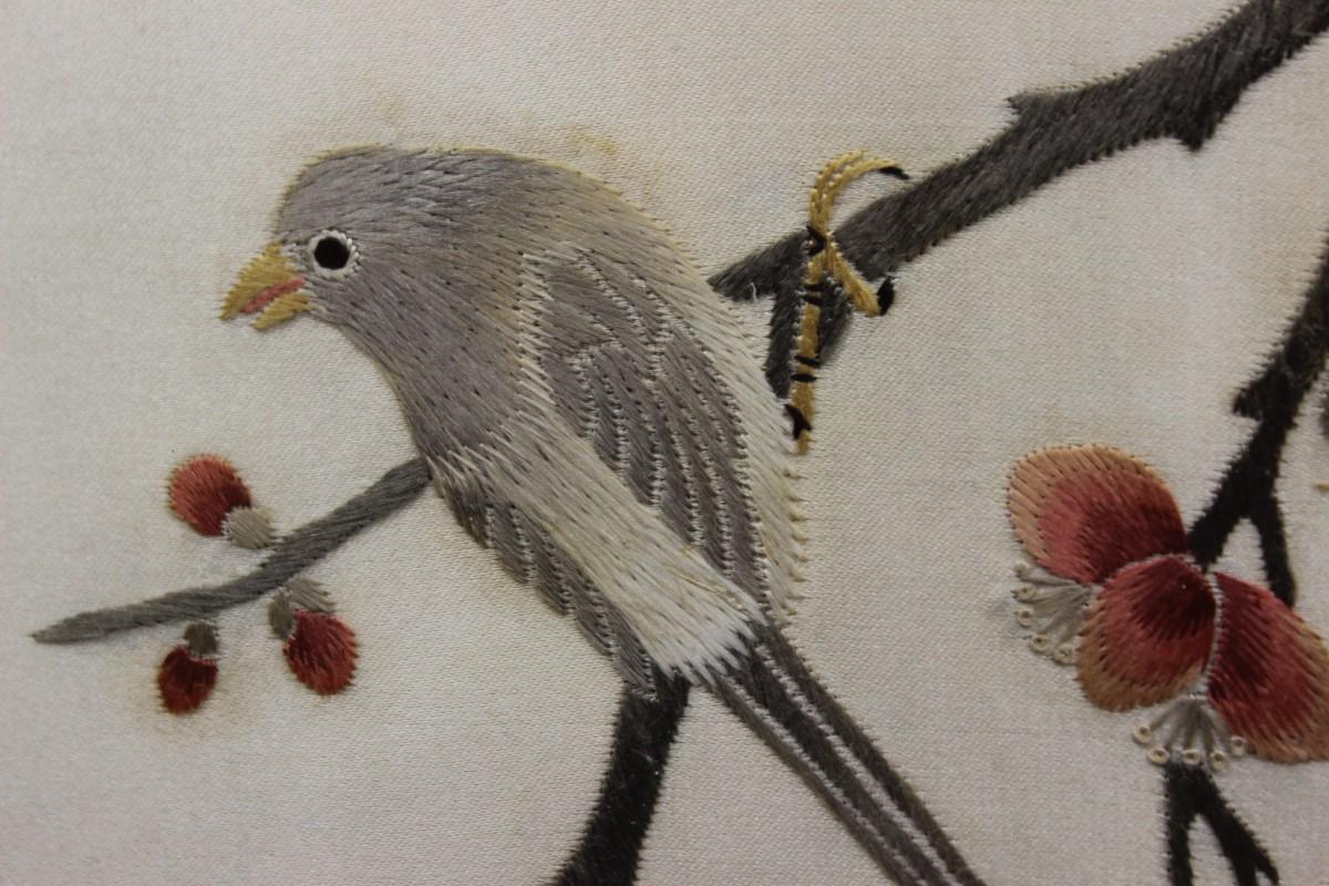 Vintage Sewn Stitched Crafted Material Art Oriental Design Cherry Blossom Birds
