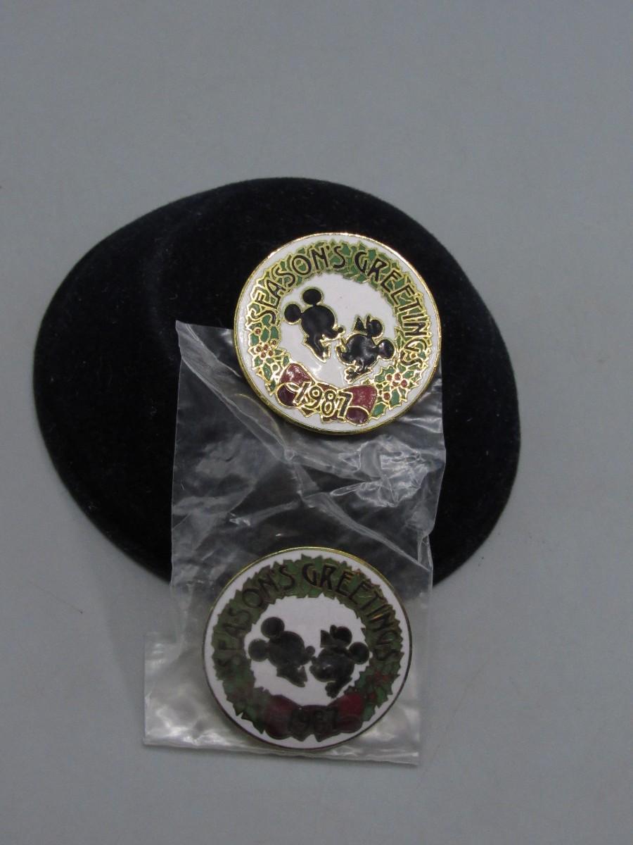 Pair of Disney Seasons Greetings 1987 Mickey & Minnie Mouse Buttons