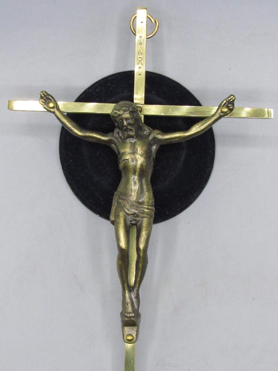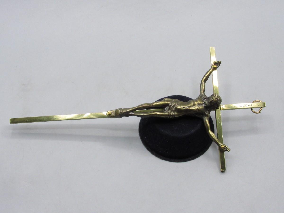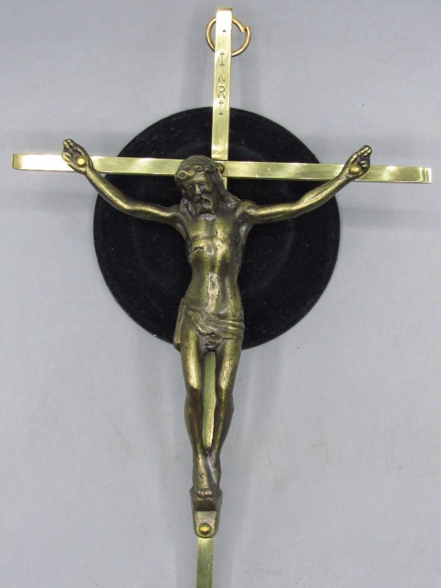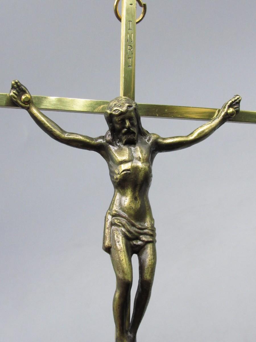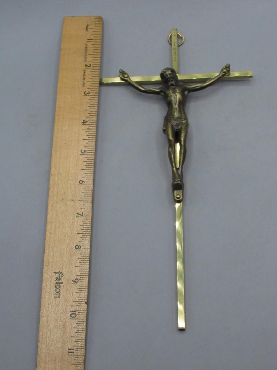 Vintage Gothic Brass Metal Jesus Hanging on Cross Hanging Religious Artifact Decor