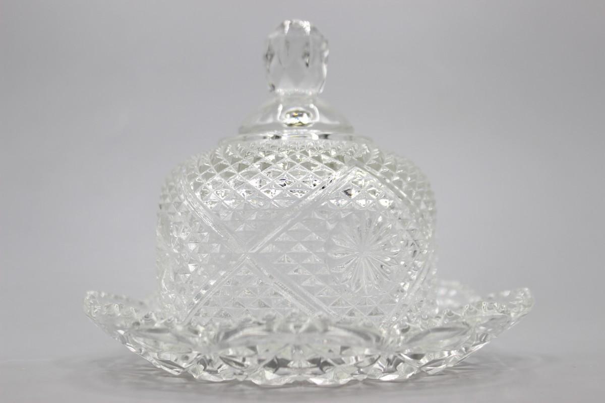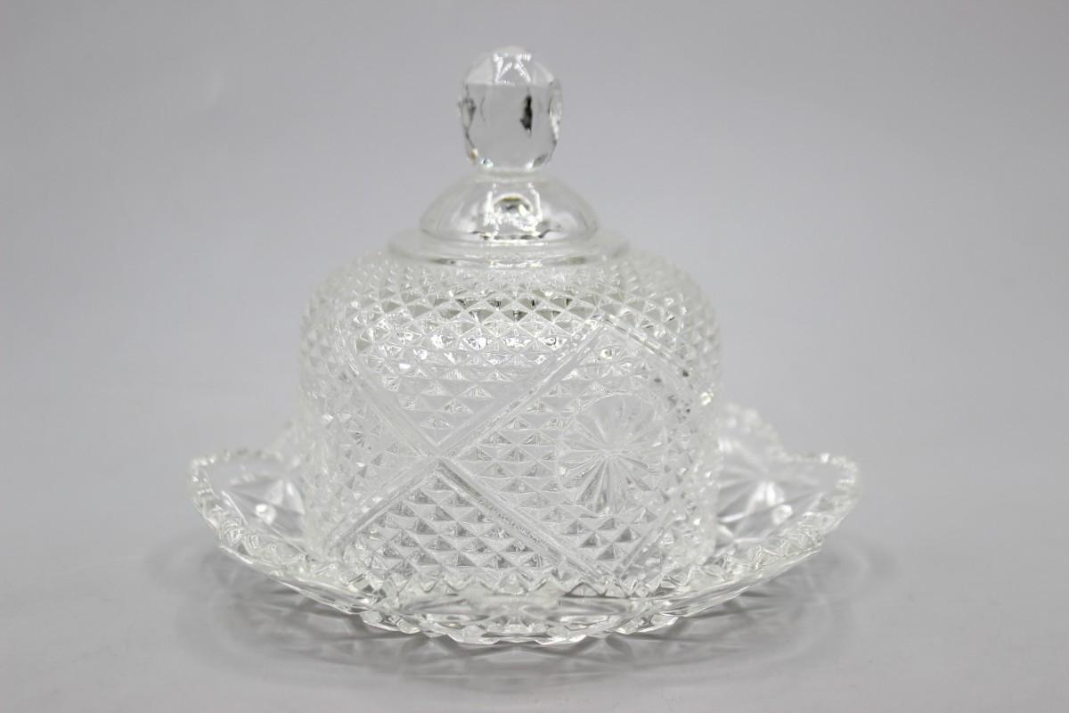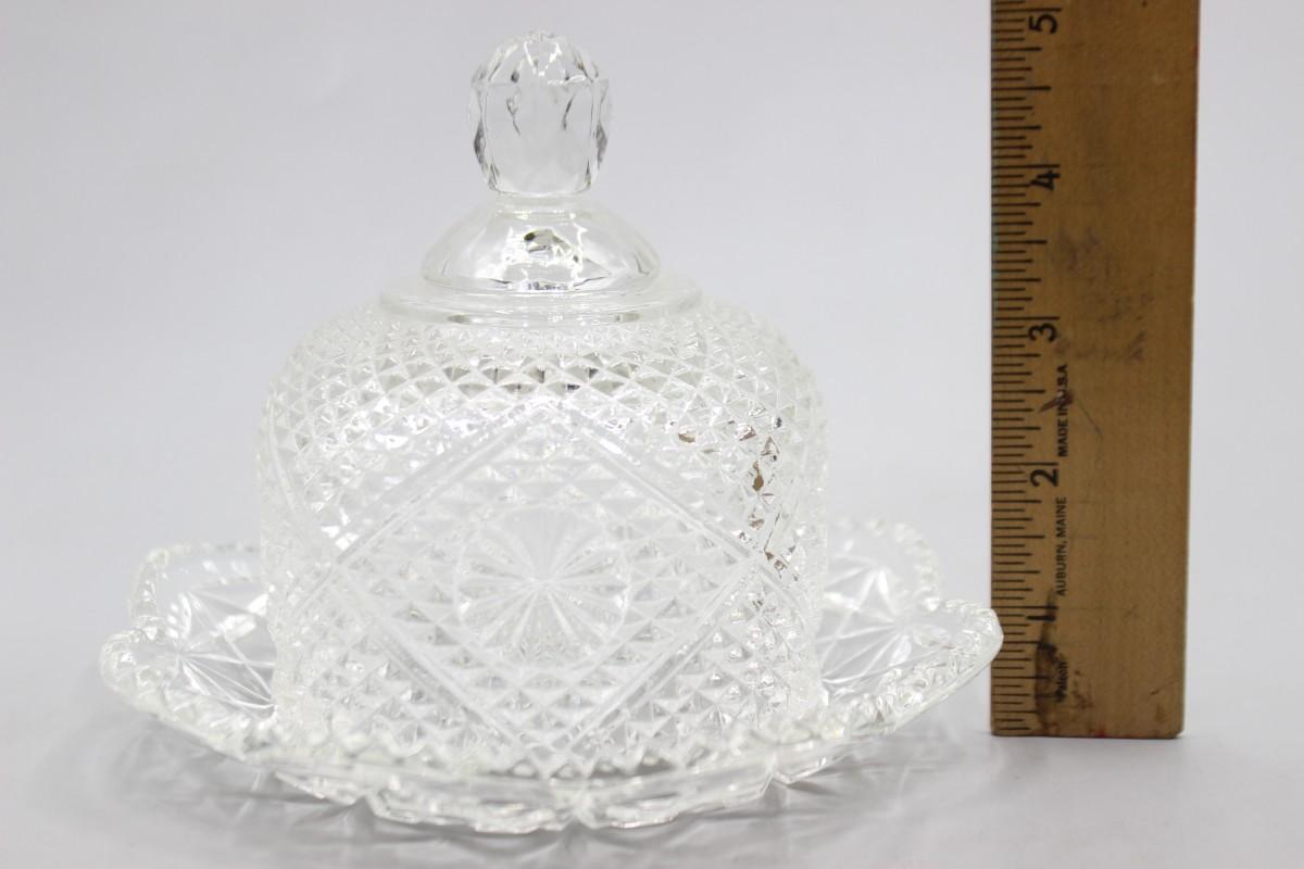 Vintage Avon Crystal Glass Diamond Pattern Serving Display Dish with Lid