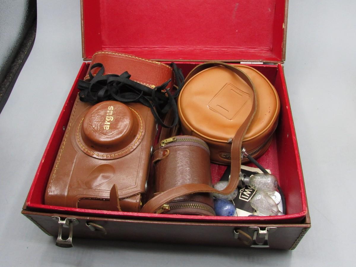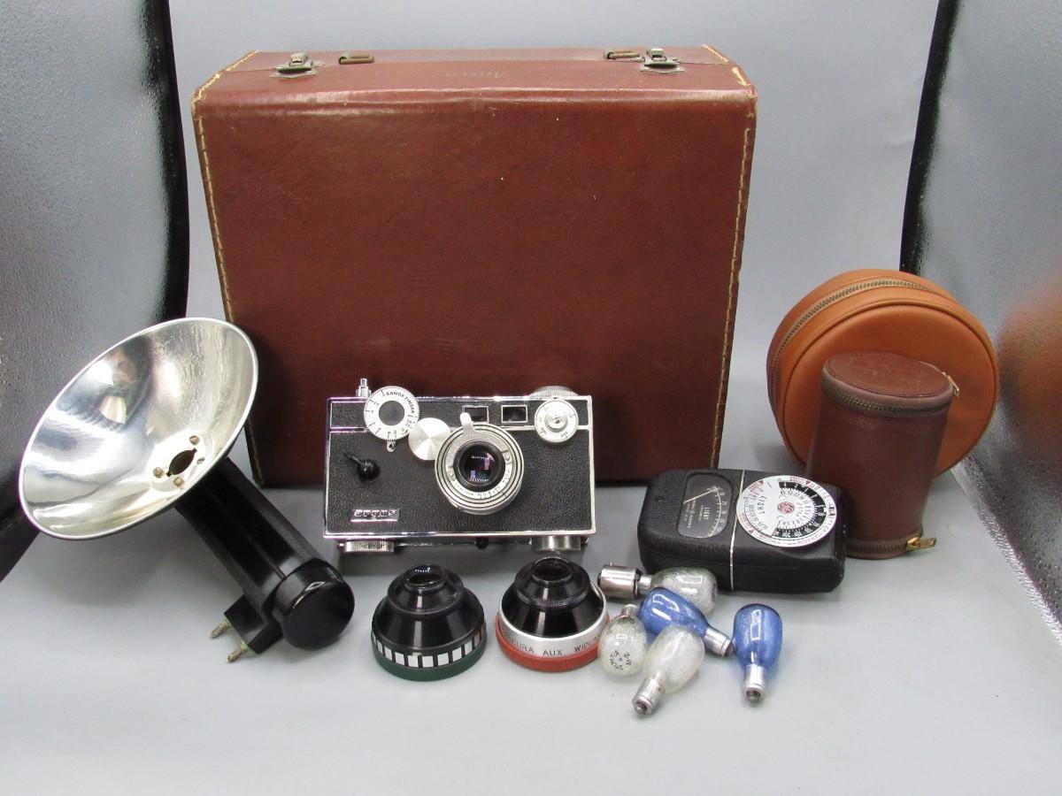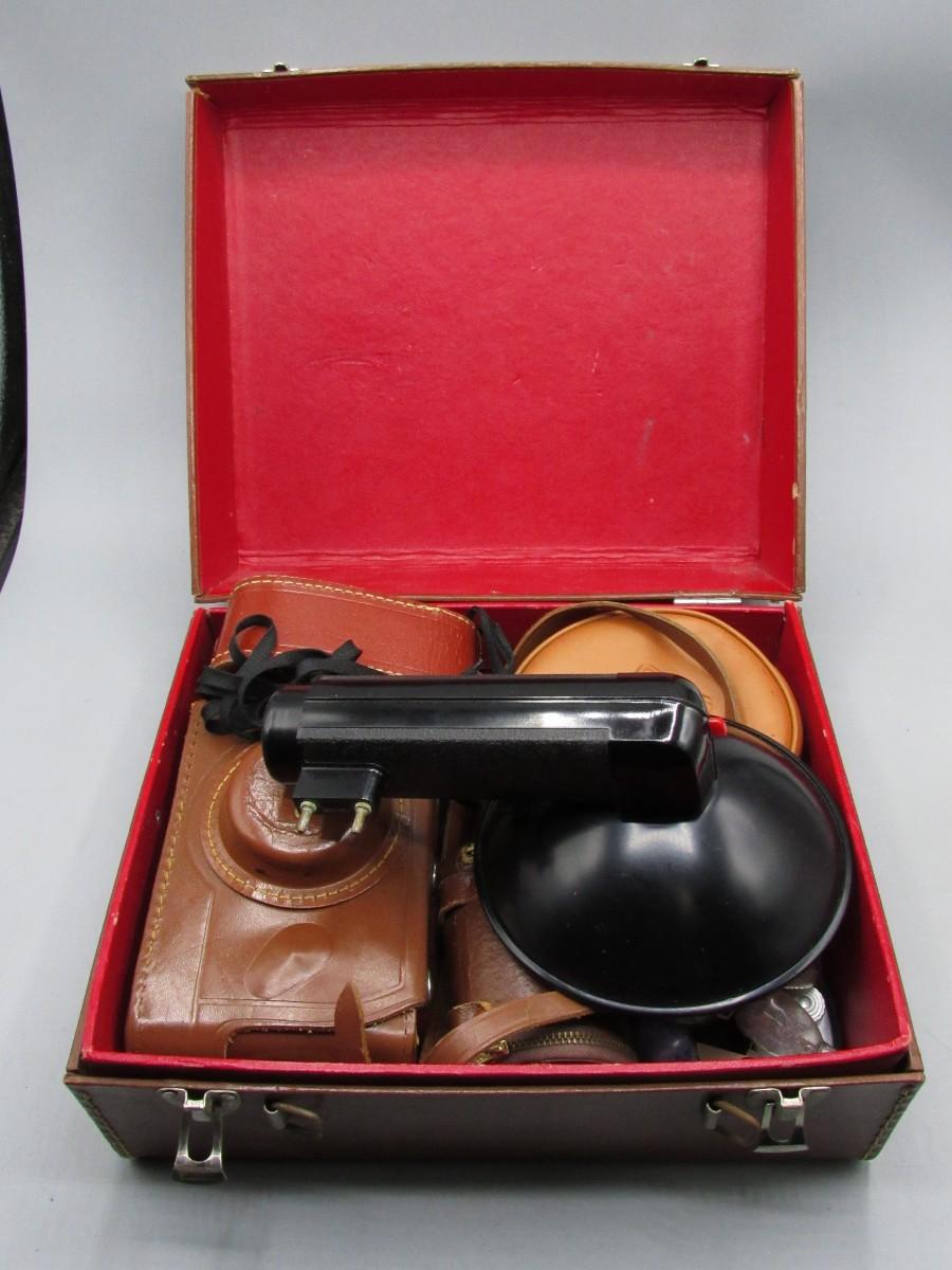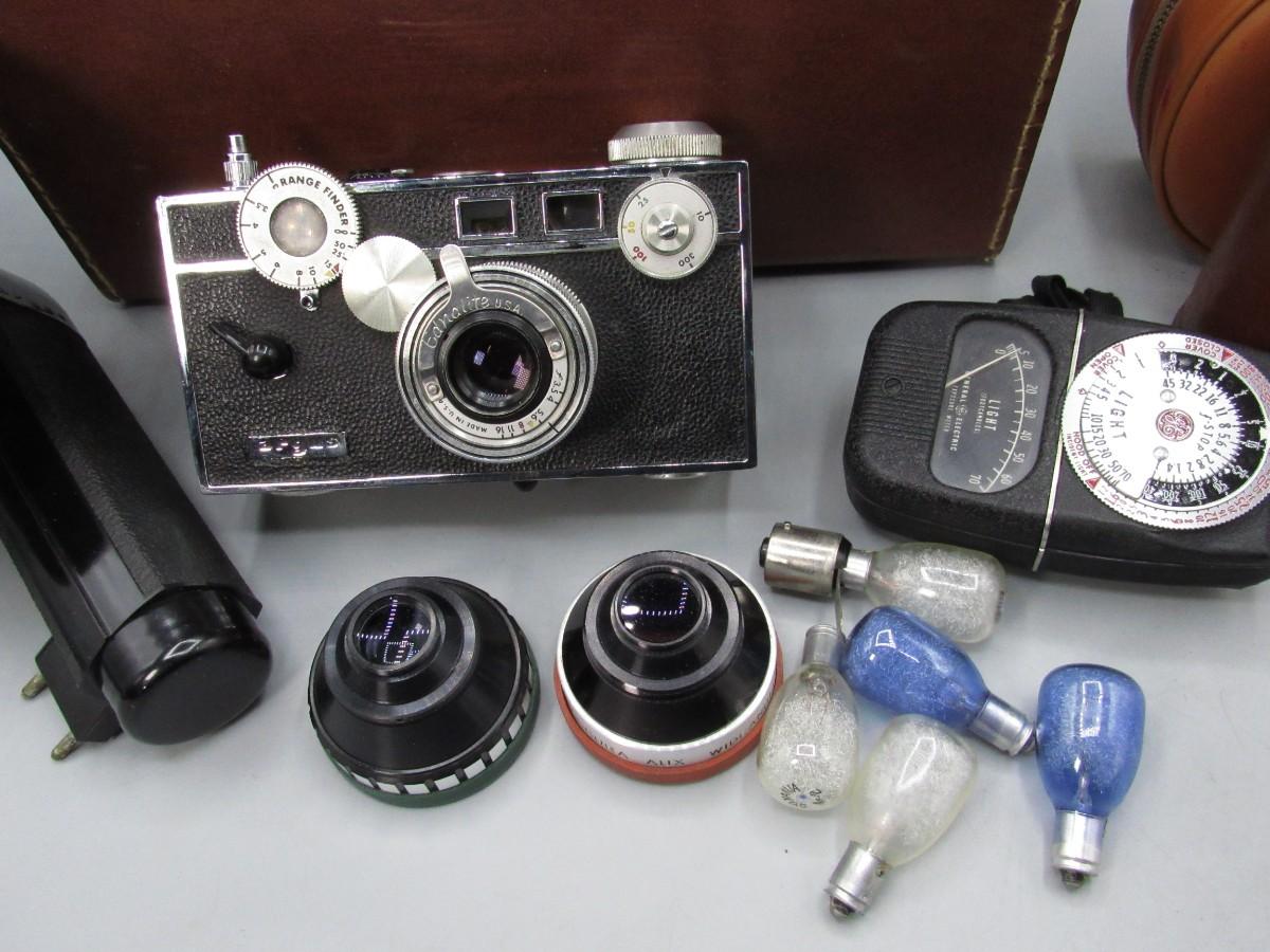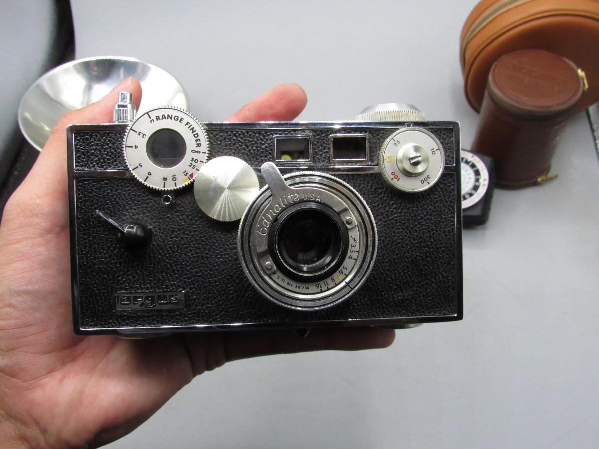 Vintage Camera Lot Argus C3 Film Camera with Accessories Lenses, Flash Attachment, Bulbs & More