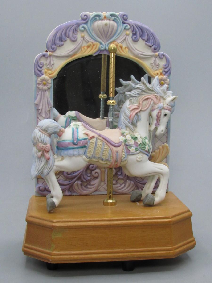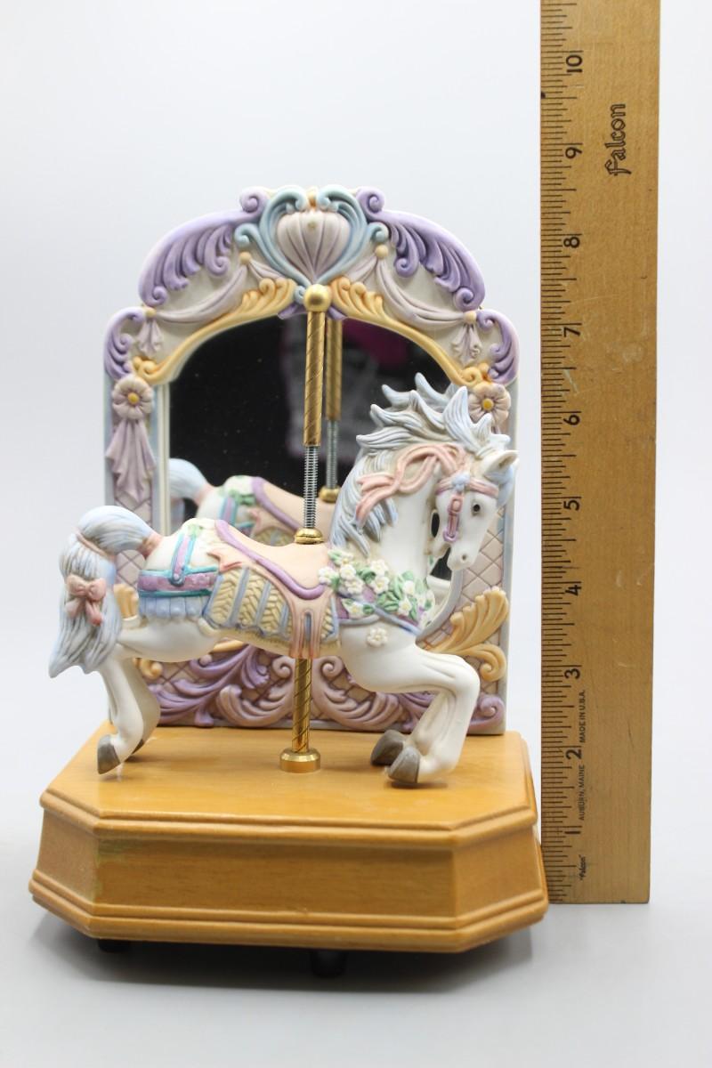 Retro Mid Century Soft Color Carousel Horse Music Box Figurine