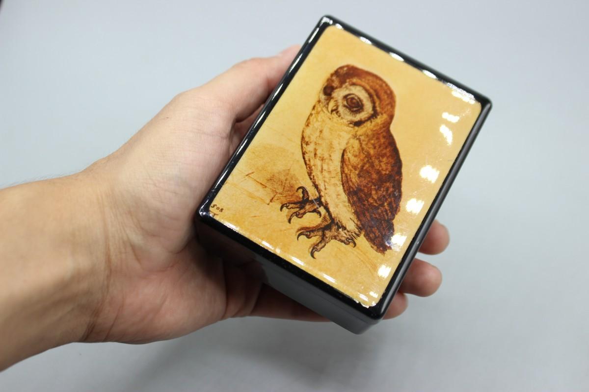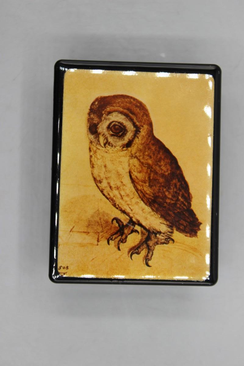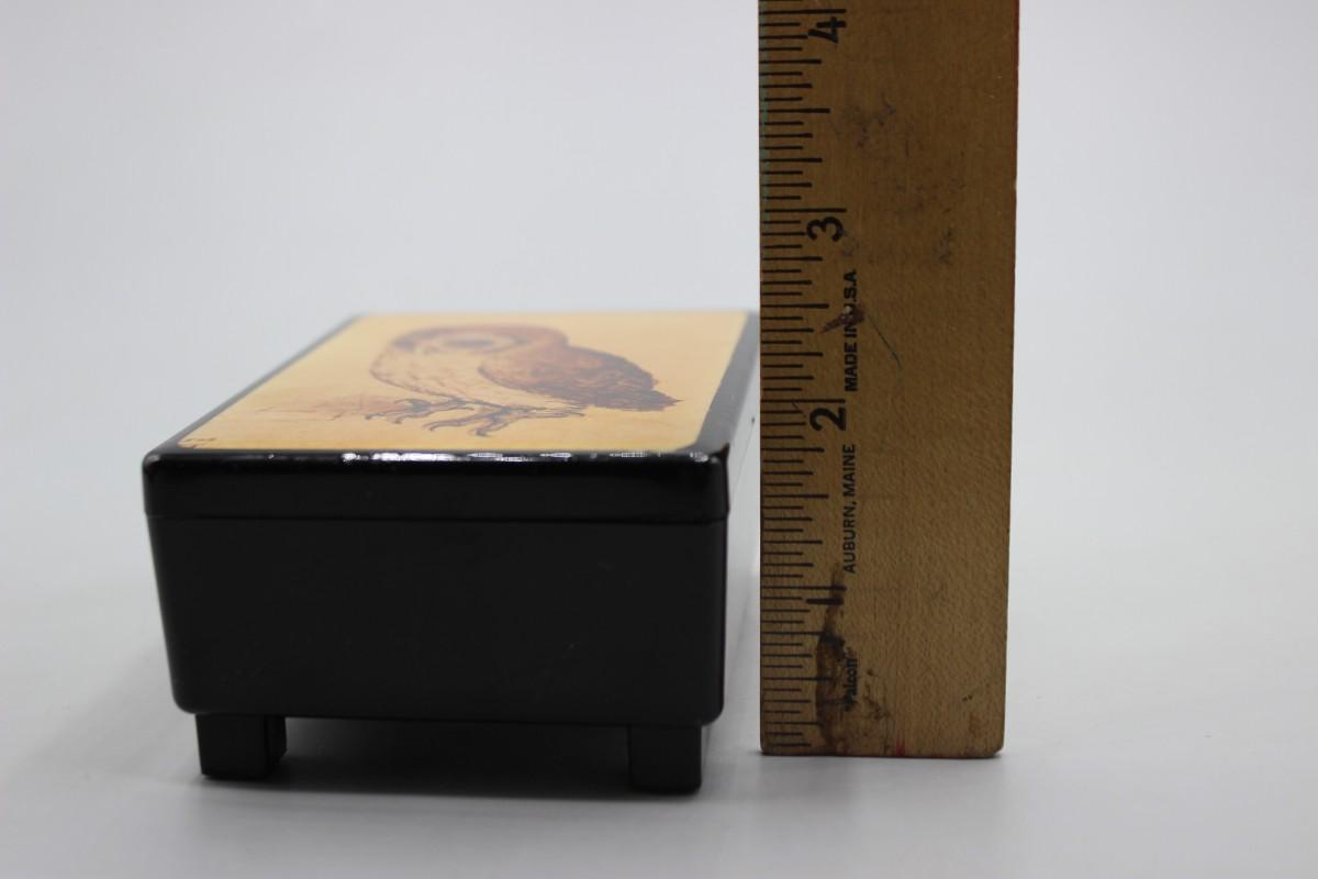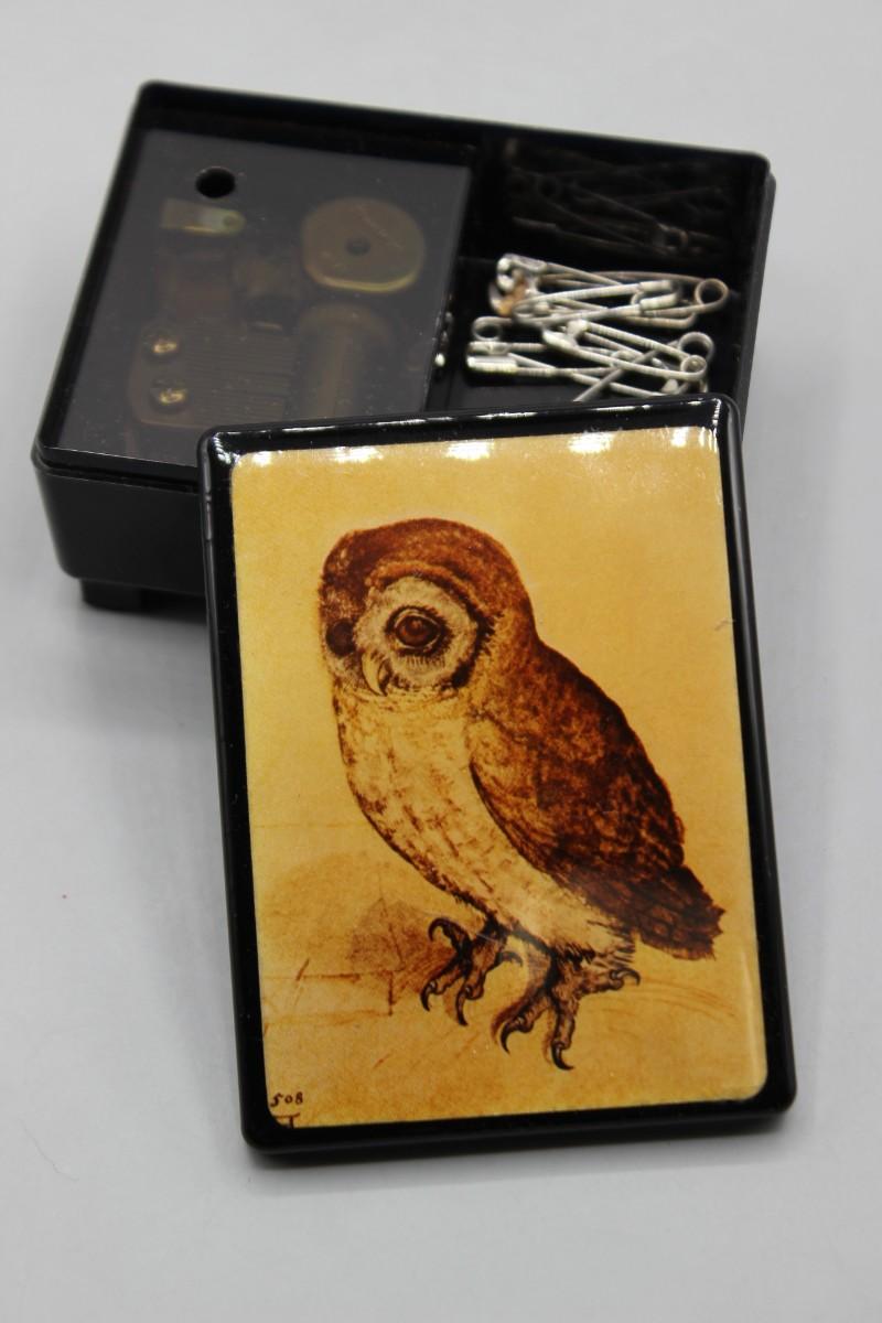 Retro Owl Art Portrait Windup Music Box Trinket Plastic Jewelry Box