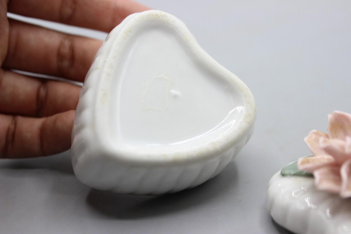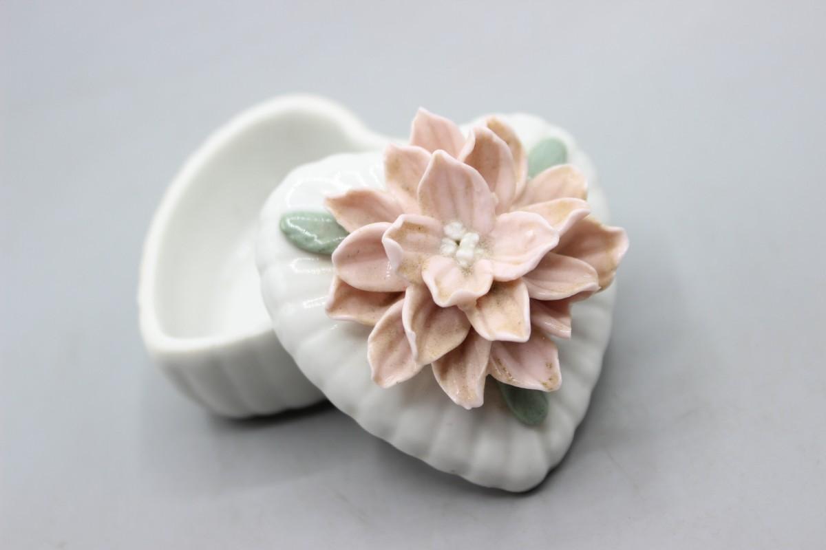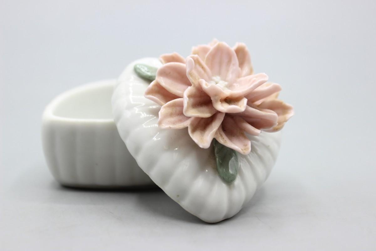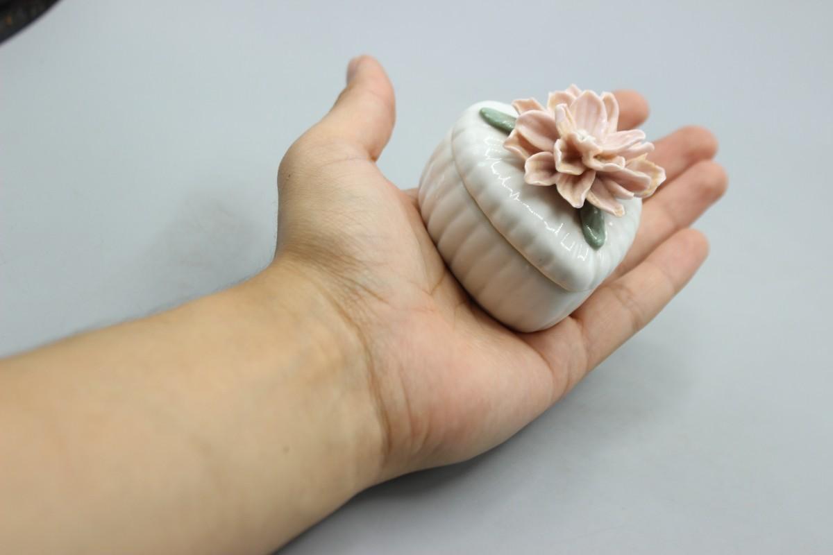 Vintage Ceramic Art Lotus Trinket Snuff Box