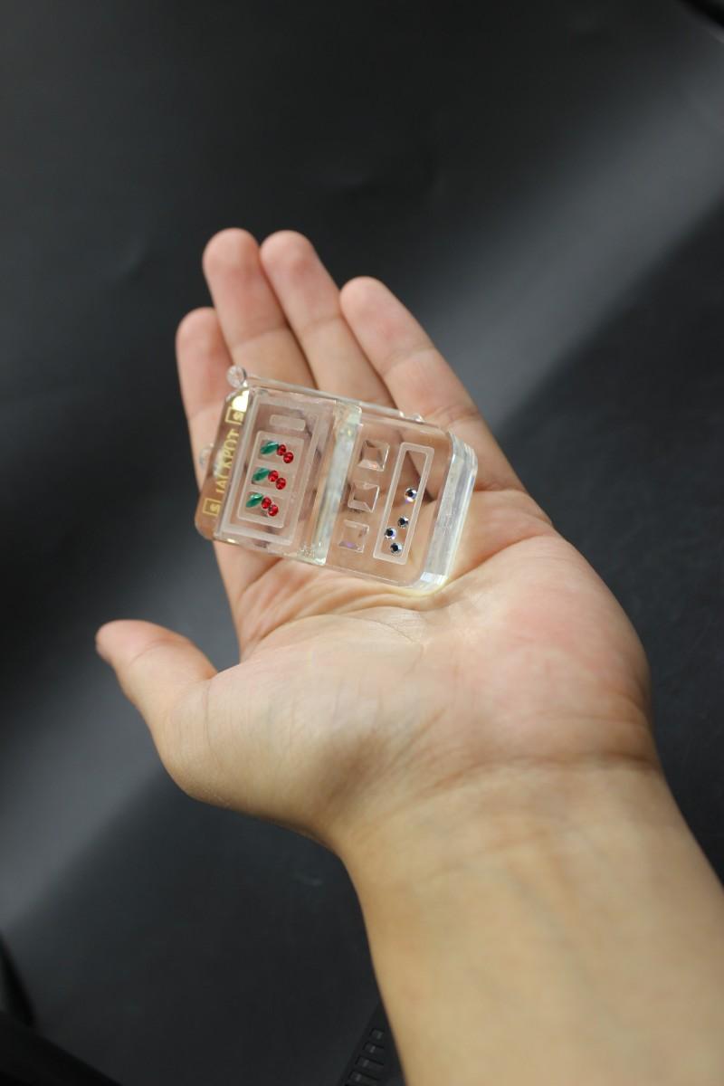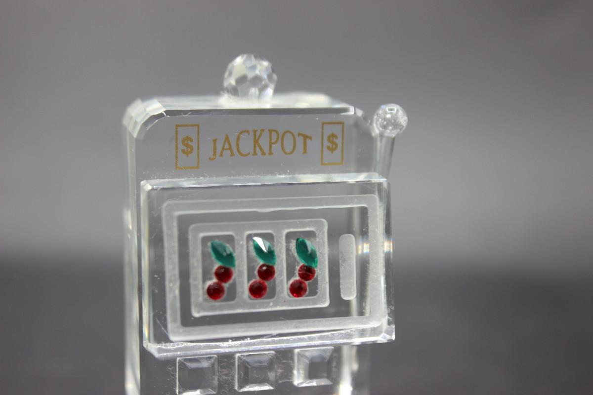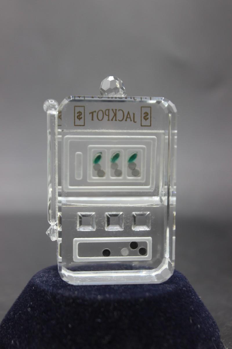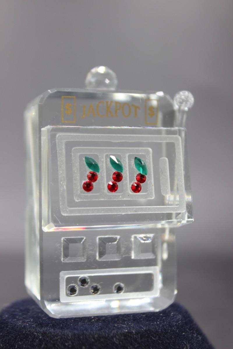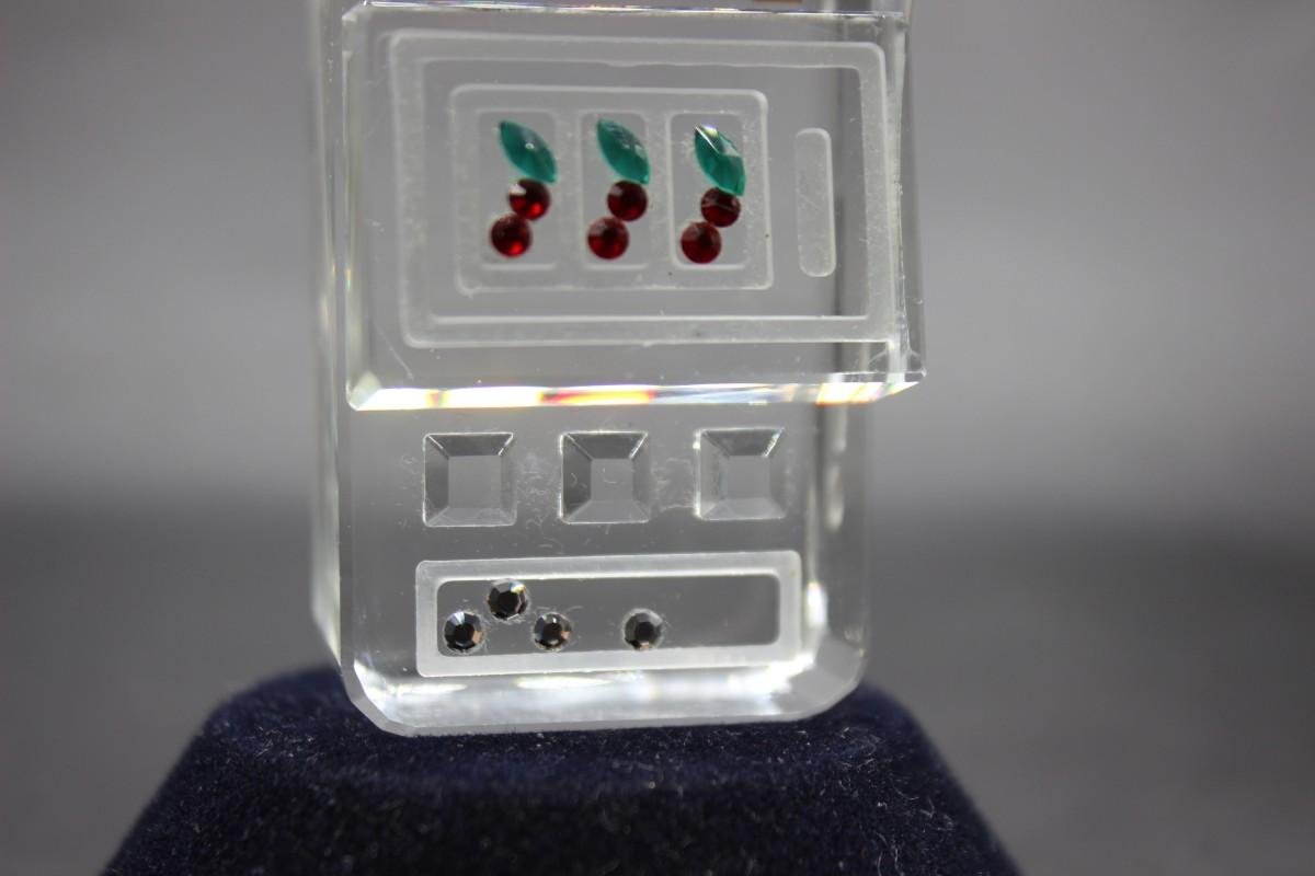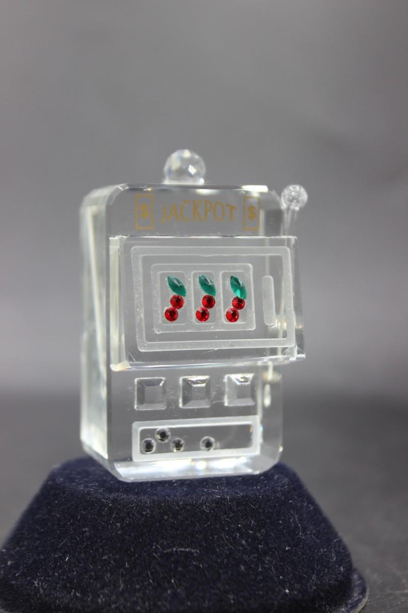 Retro Crystal Art Glass Jackpot Cherry Slot Machine Miniature Figurine