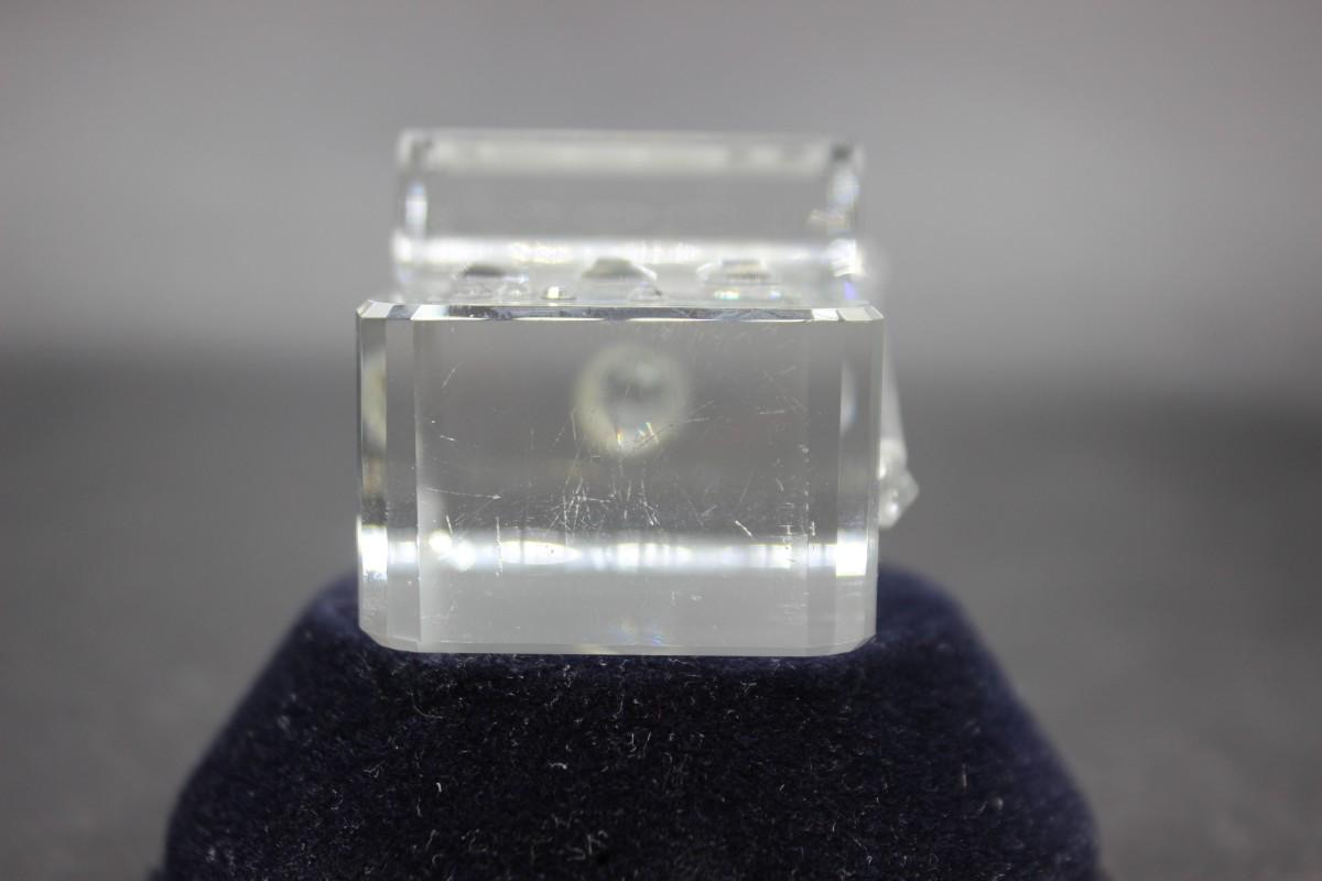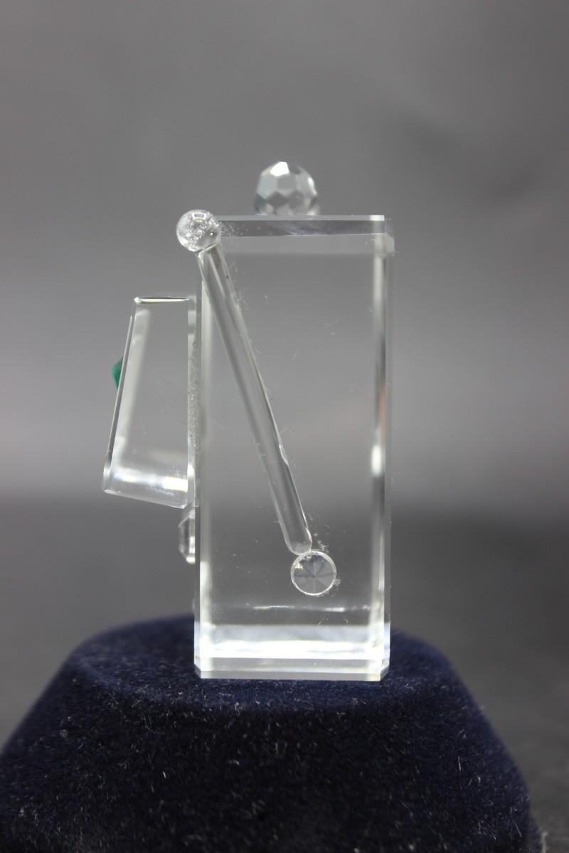 There is no damage to the glass figurine and is in good condition. Check pictures for sizing! Around 2.5 inches tall.