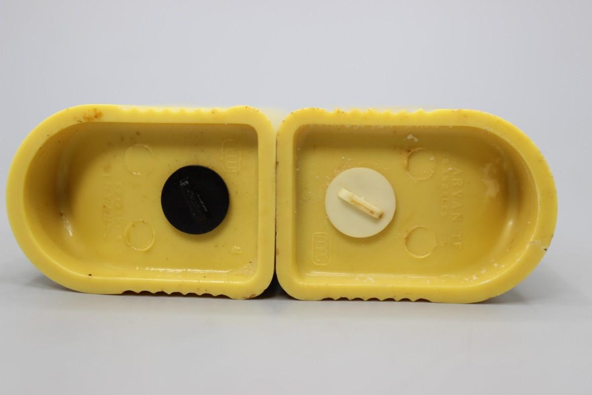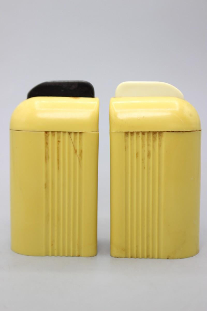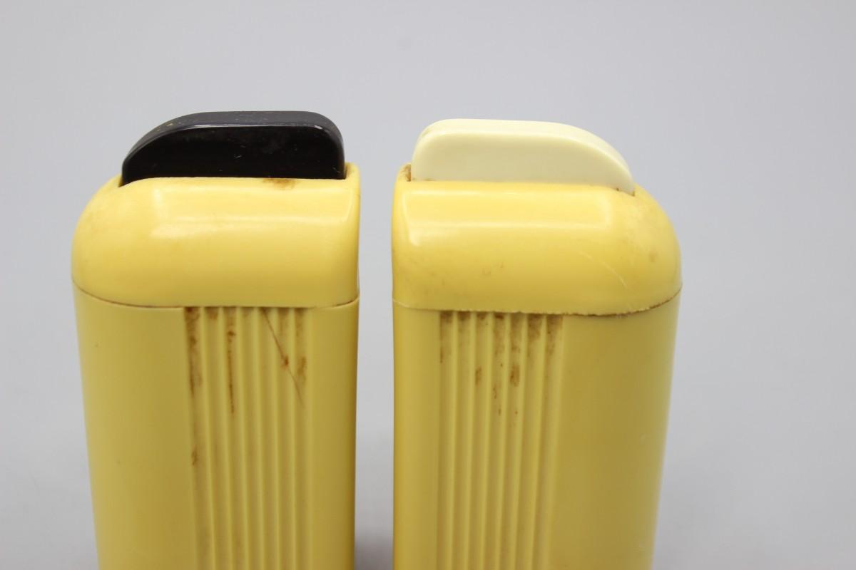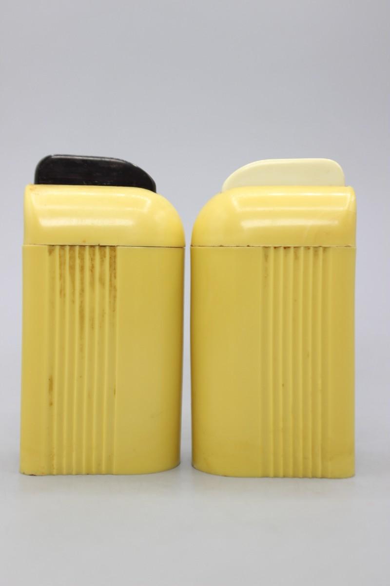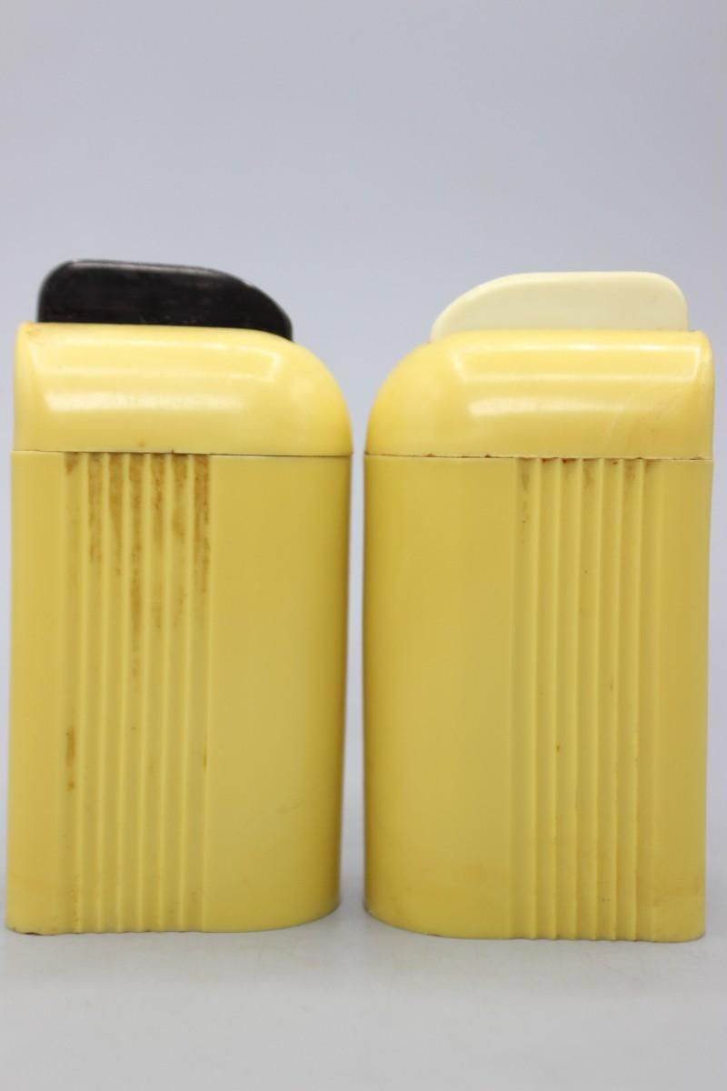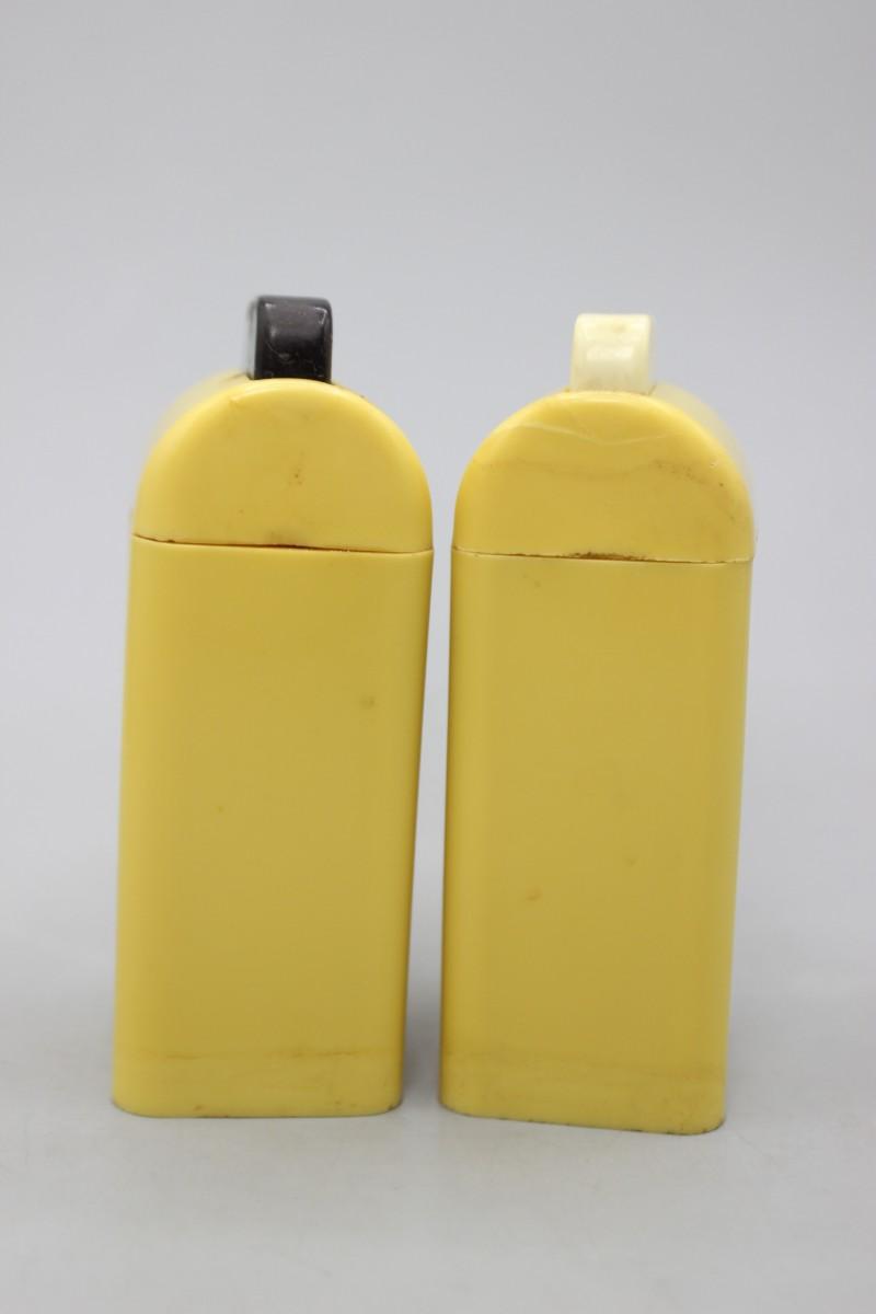 Vintage Art Deco Carvanite Mechanical Salt & Pepper Shakers