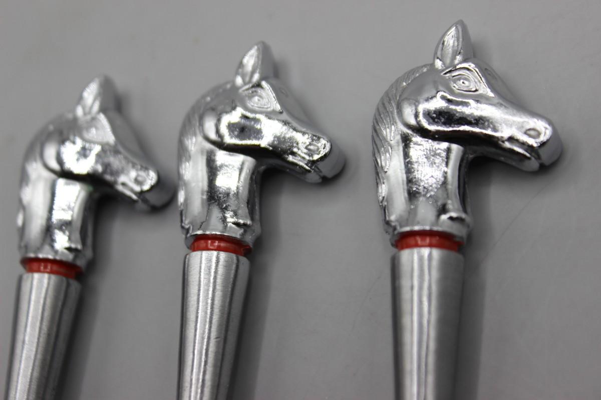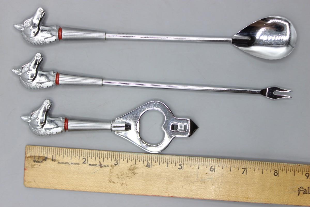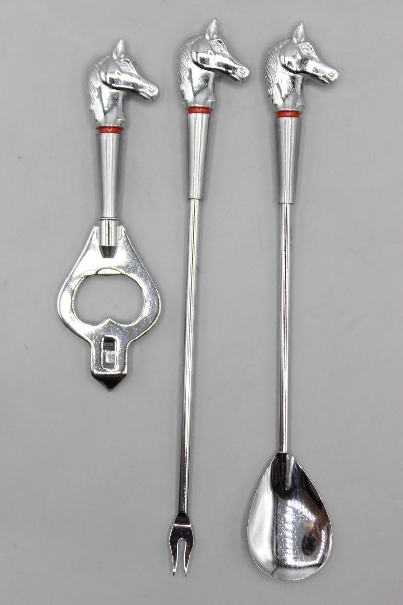 Japanese Made Horse Head Motif Cocktail Barware Utensils, Bottle Opener, Skewer, & Mixing Spoon