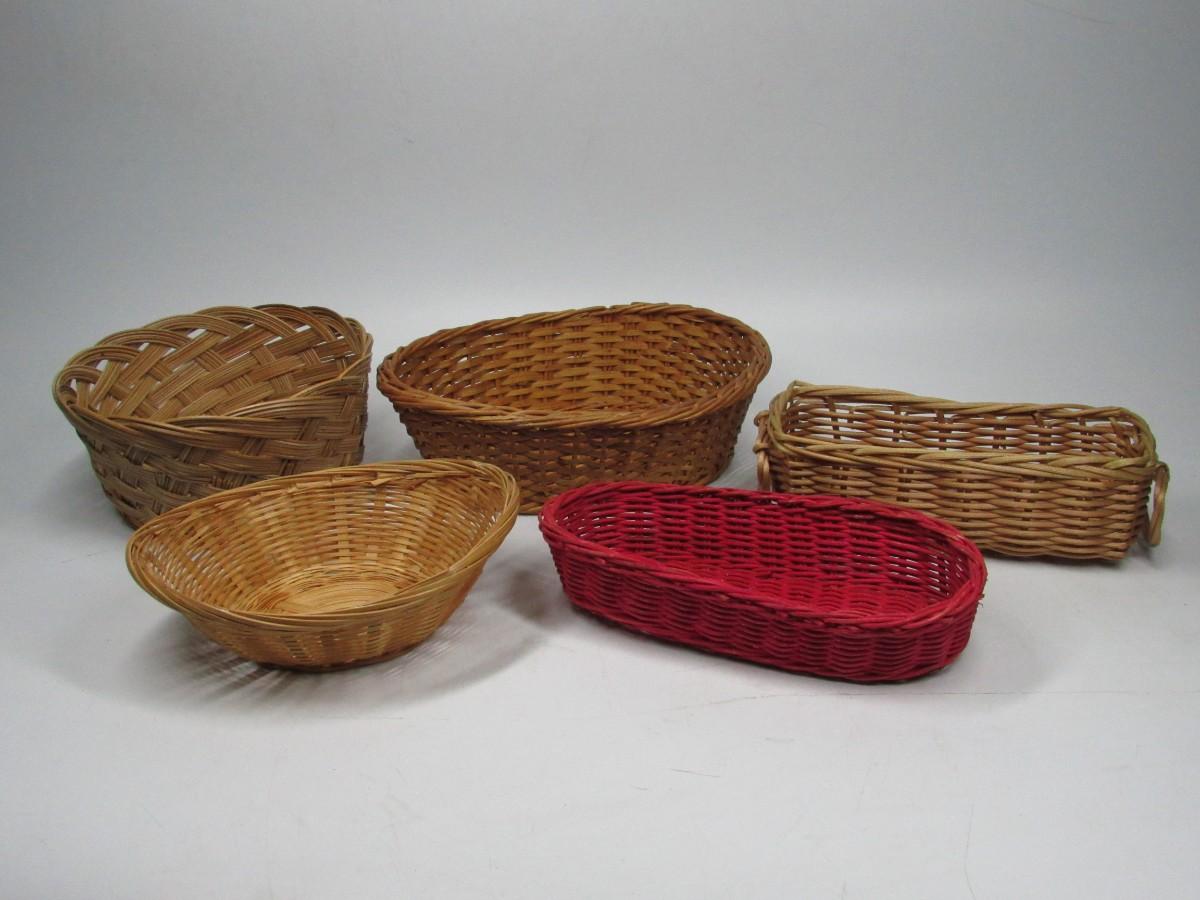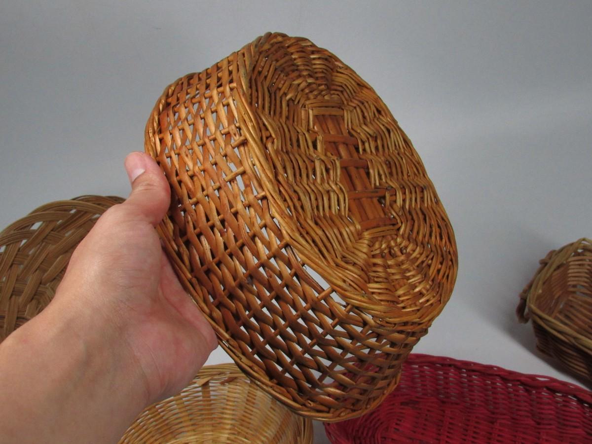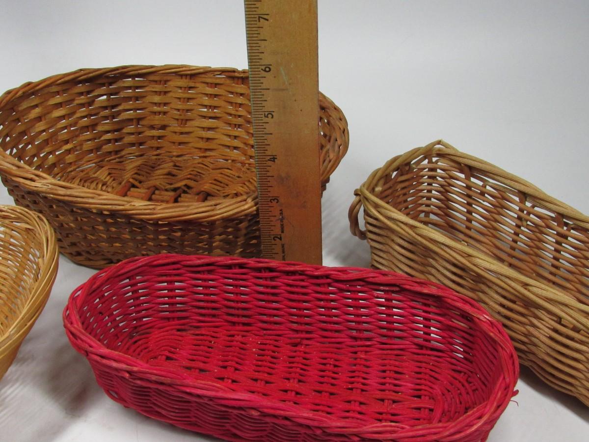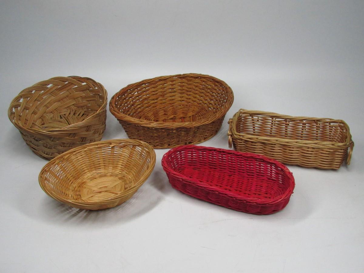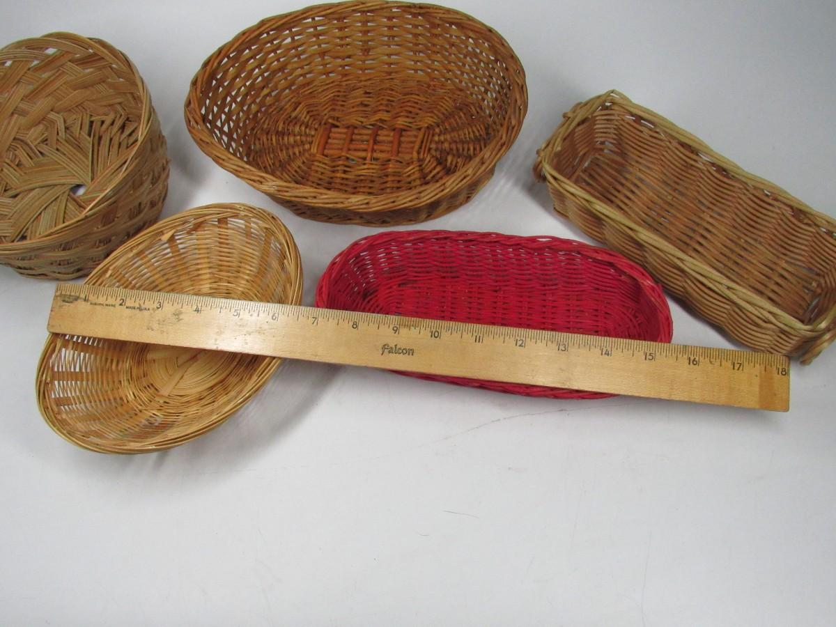 Mixed Lot of Various Woven Wicker Display Serving Organizing Baskets. Various shapes and colors. In good condition.