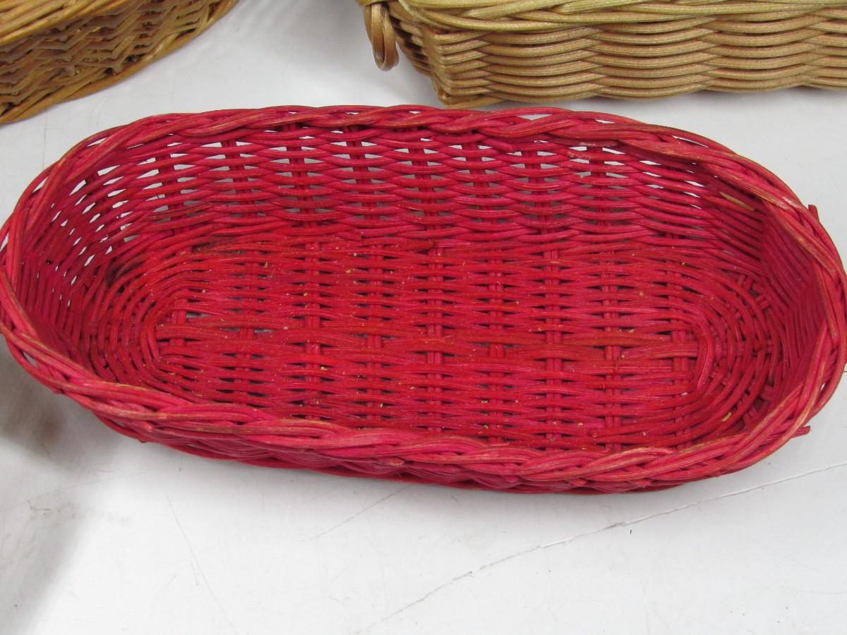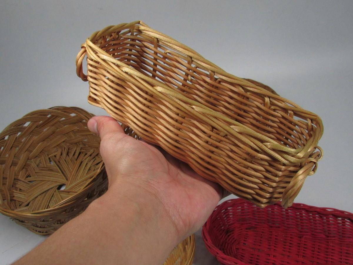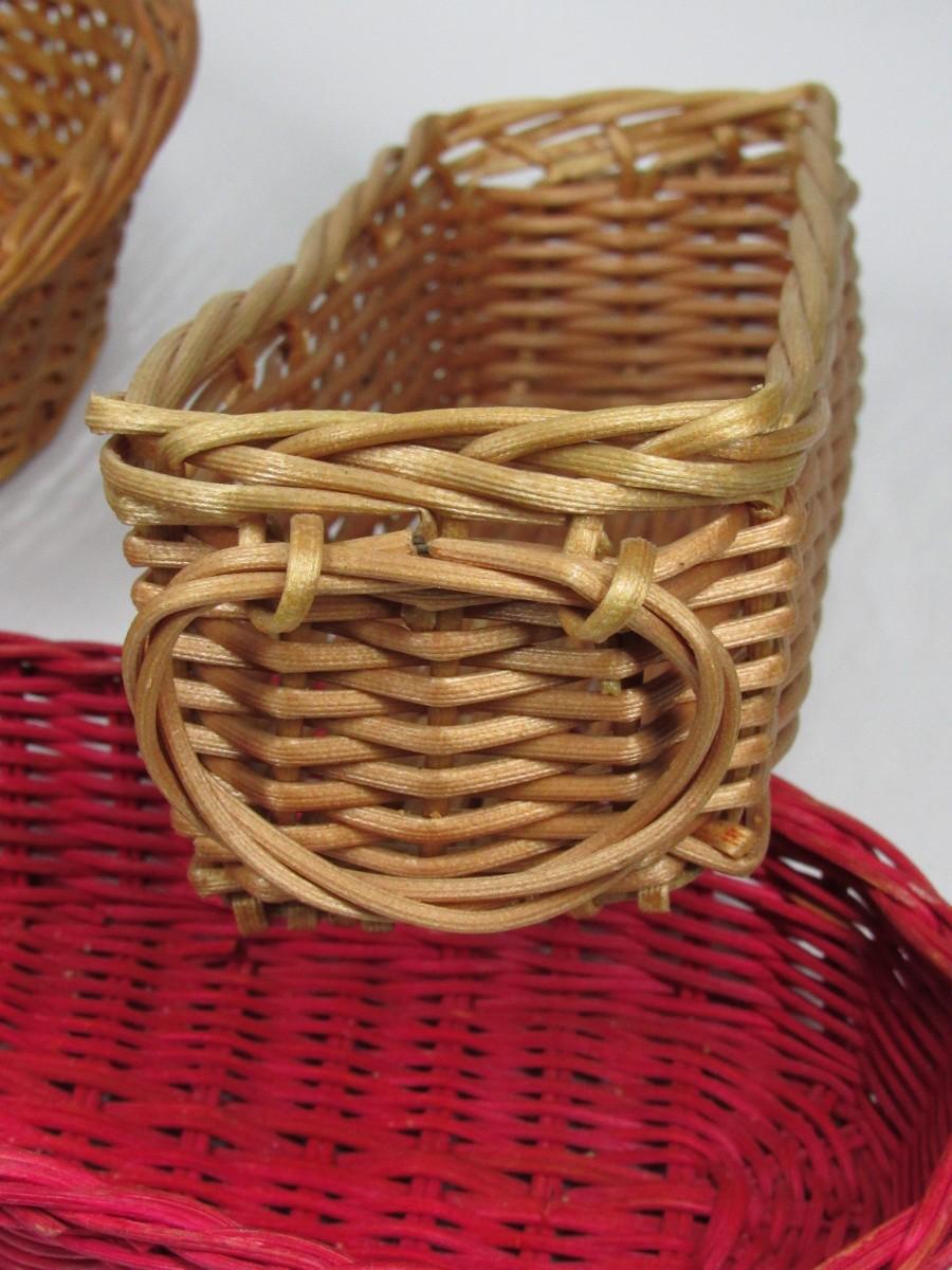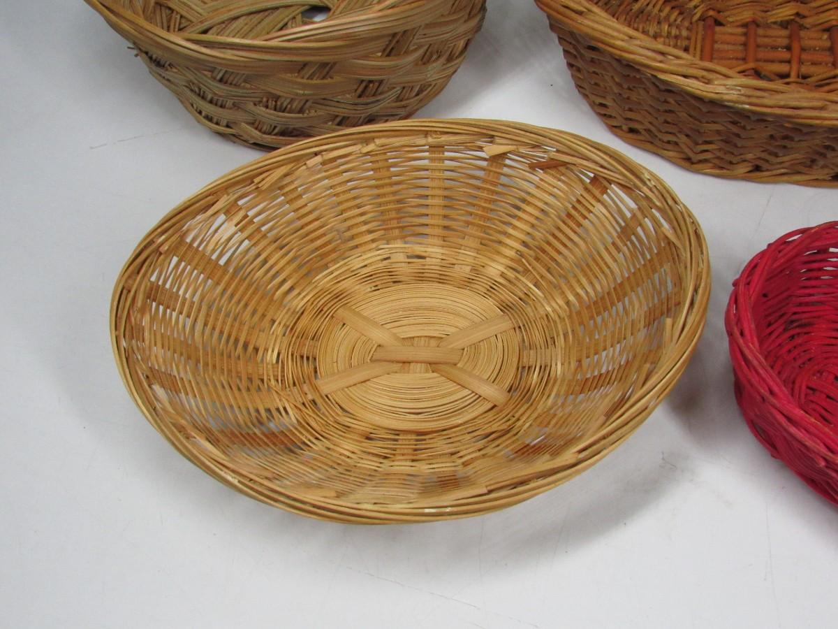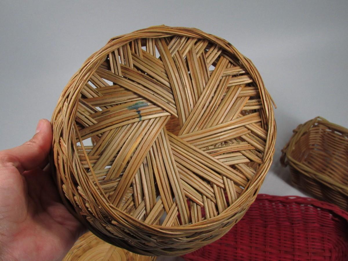Mixed Lot of Various Woven Wicker Display Serving Organizing Baskets. Various shapes and colors. In good condition.