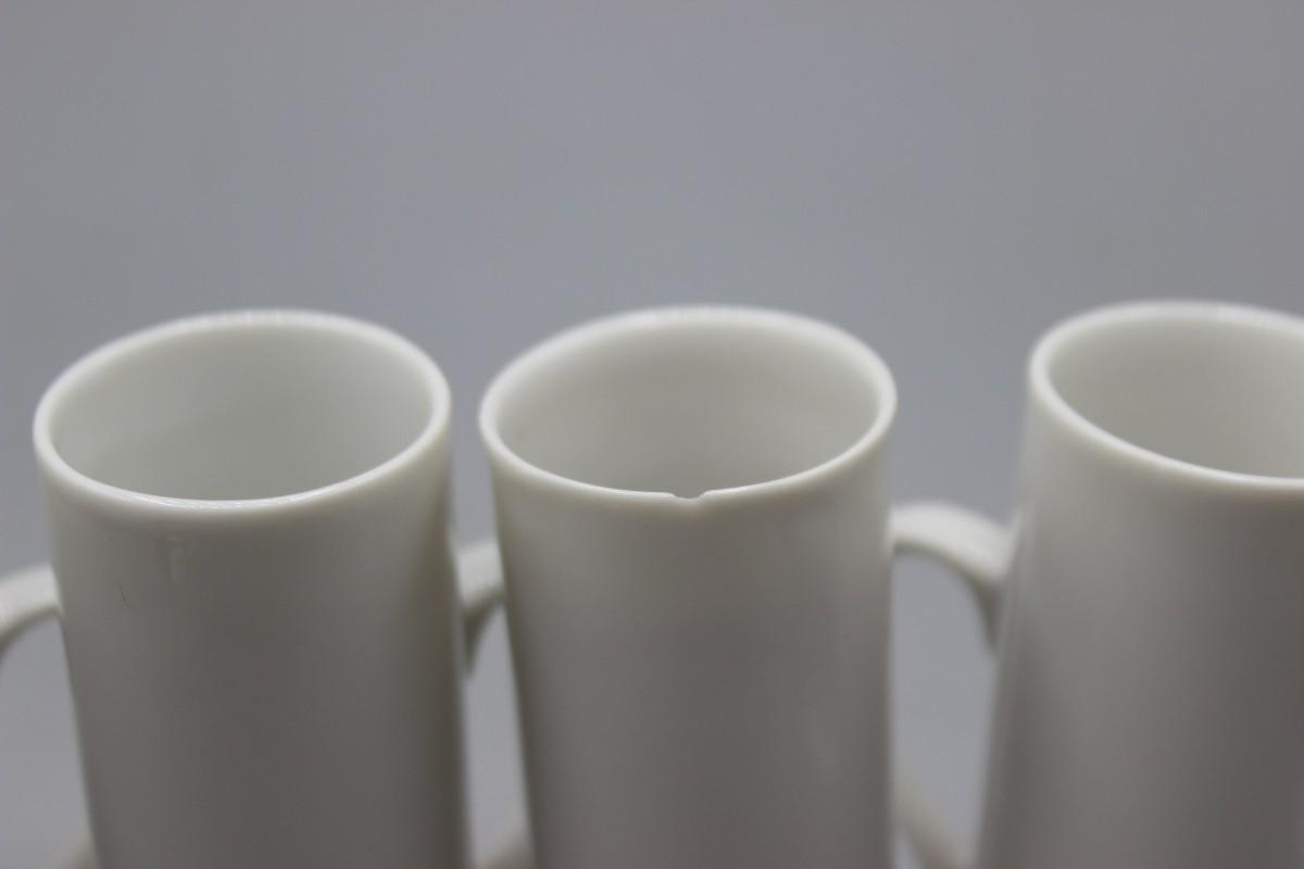 There is a light chip on the lip of one of the cups, but there is no significant damage.