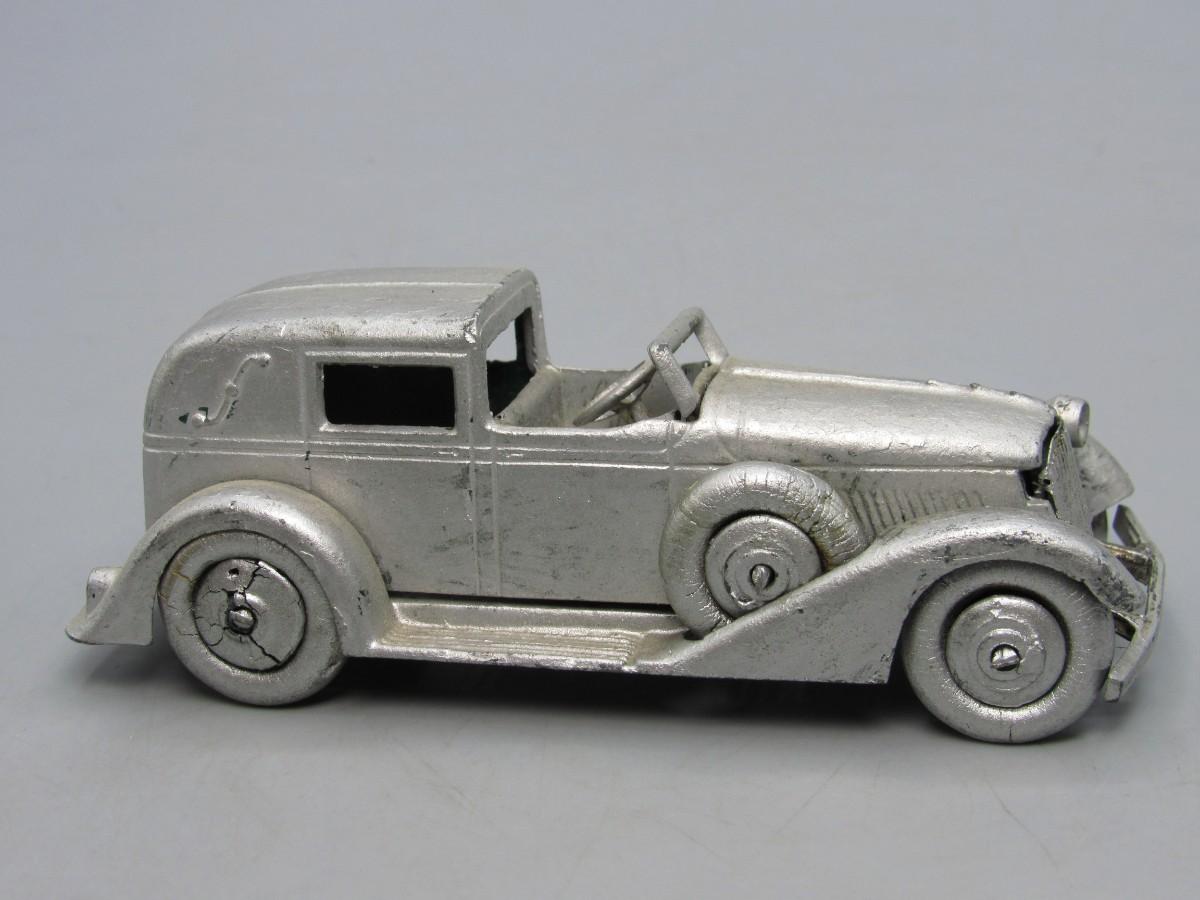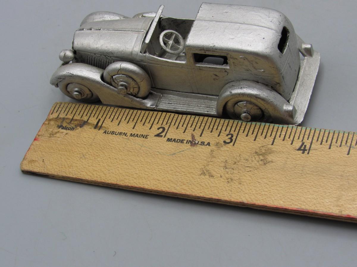 Vintage Antique Cast Metal Silver Tootsie Toy Scale Model Kids Car Automobile