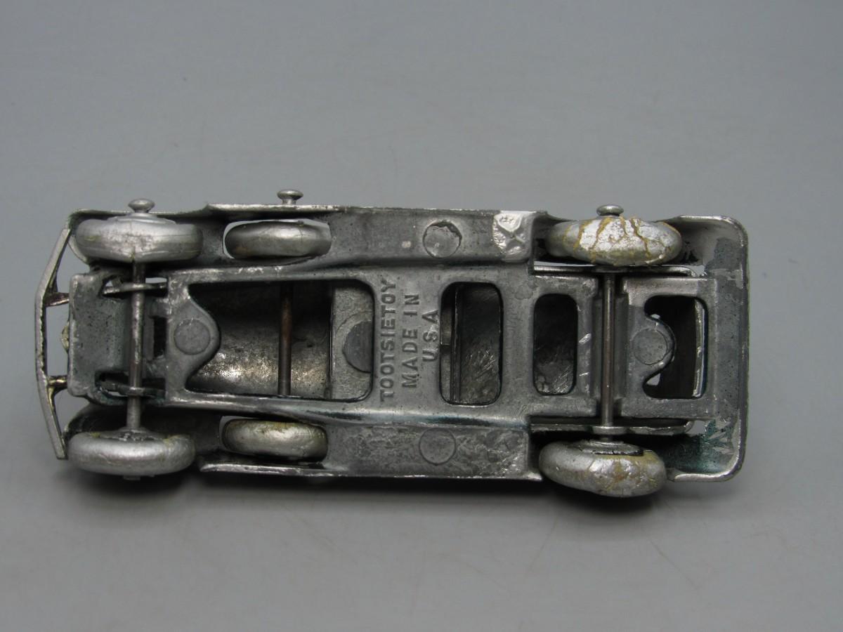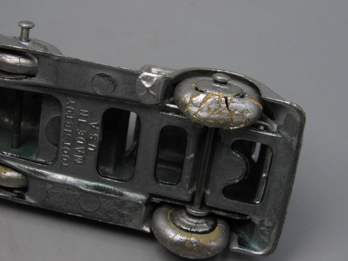 Vintage Antique Cast Metal Silver Tootsie Toy Scale Model Kids Car Automobile. In vintage condition. Displays nice. Wheels have some cracking. About 4" size.